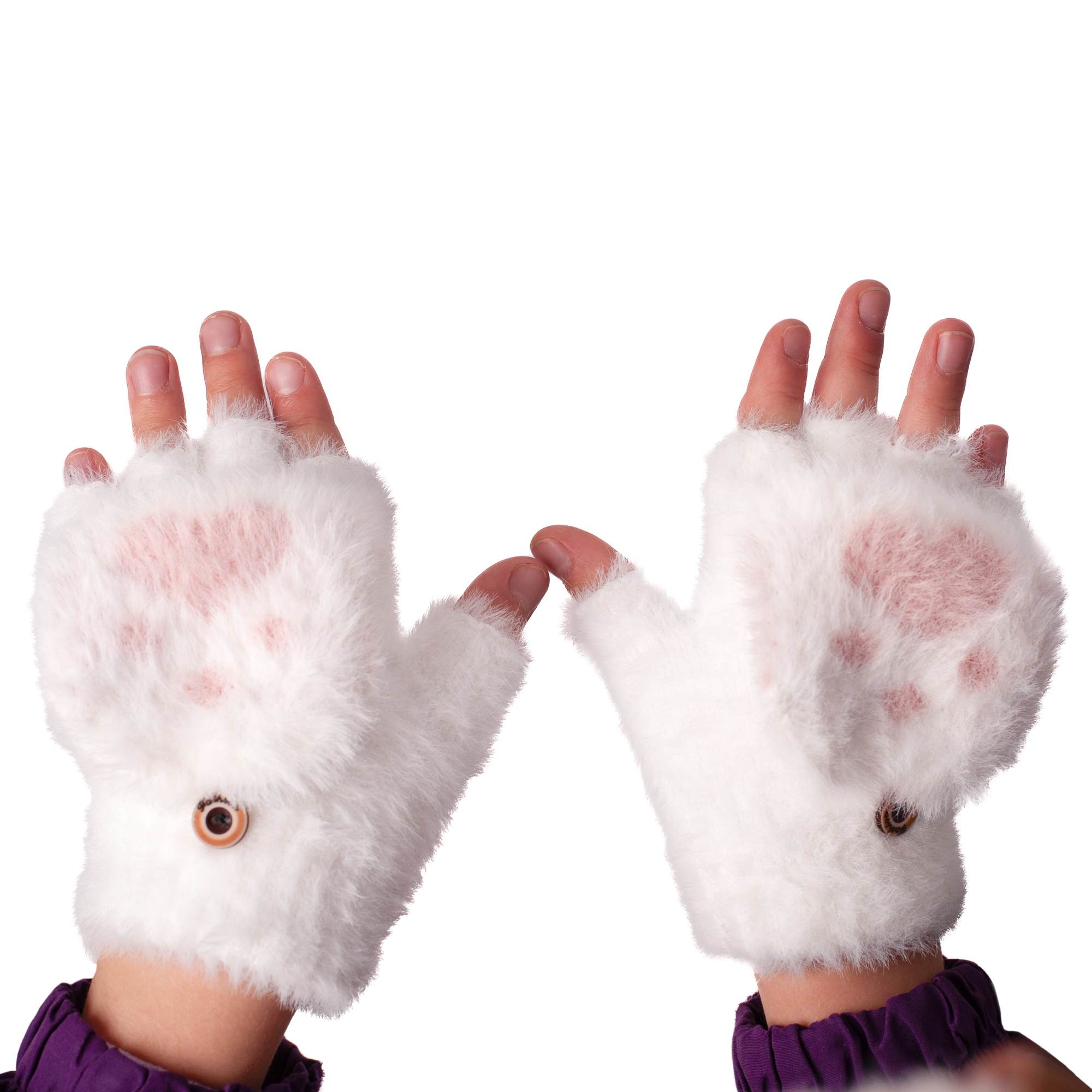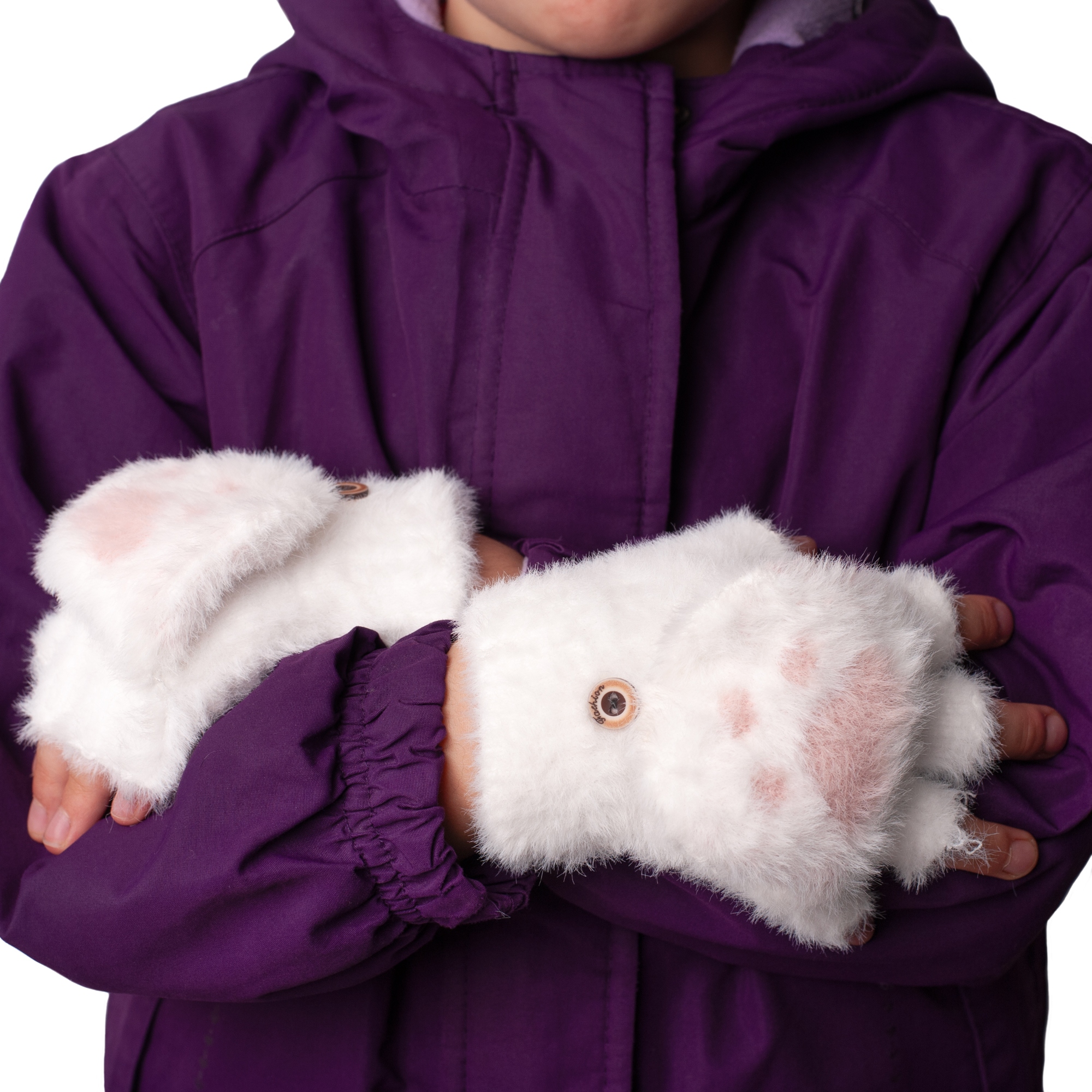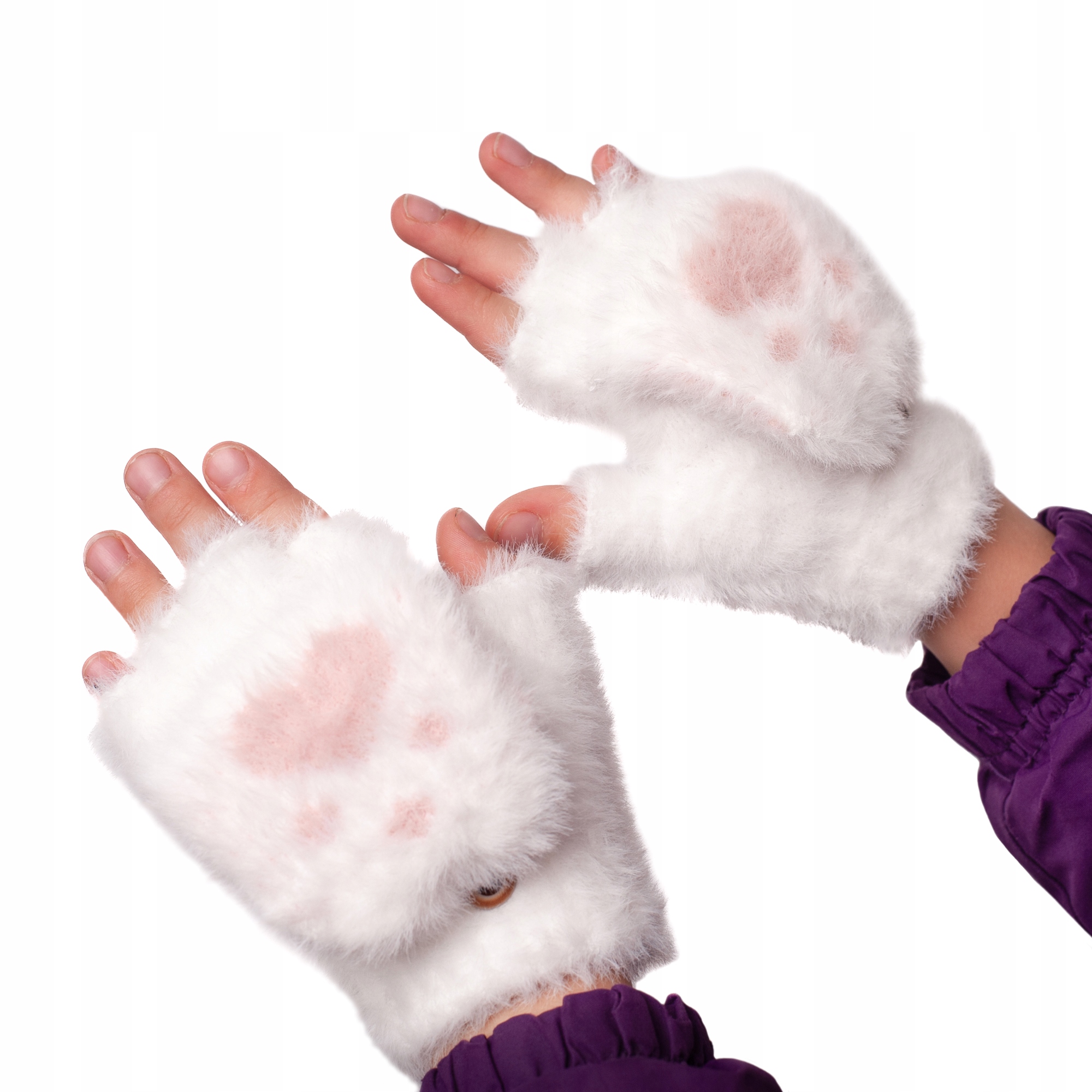 Mięciutkie puszyste rękawiczki Mitenki zamykane z łapką Białe