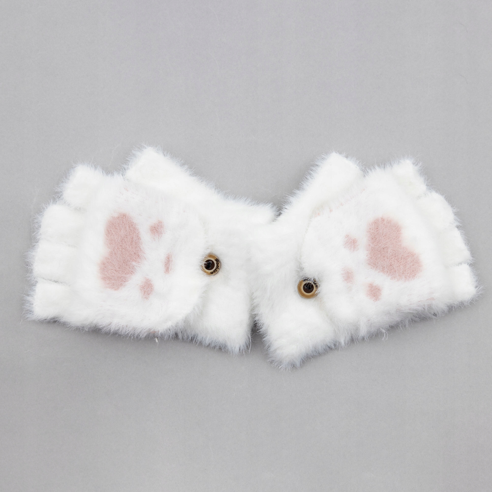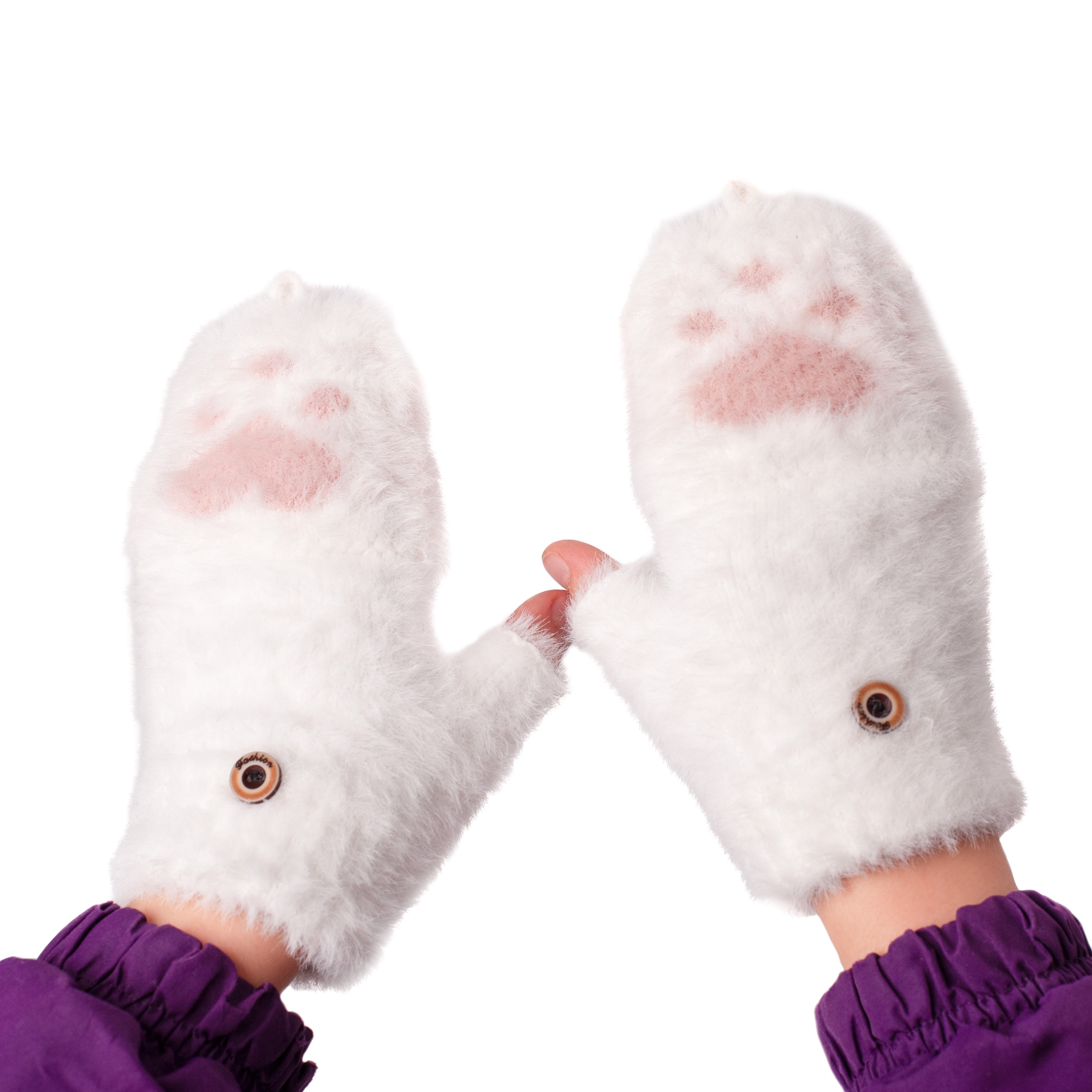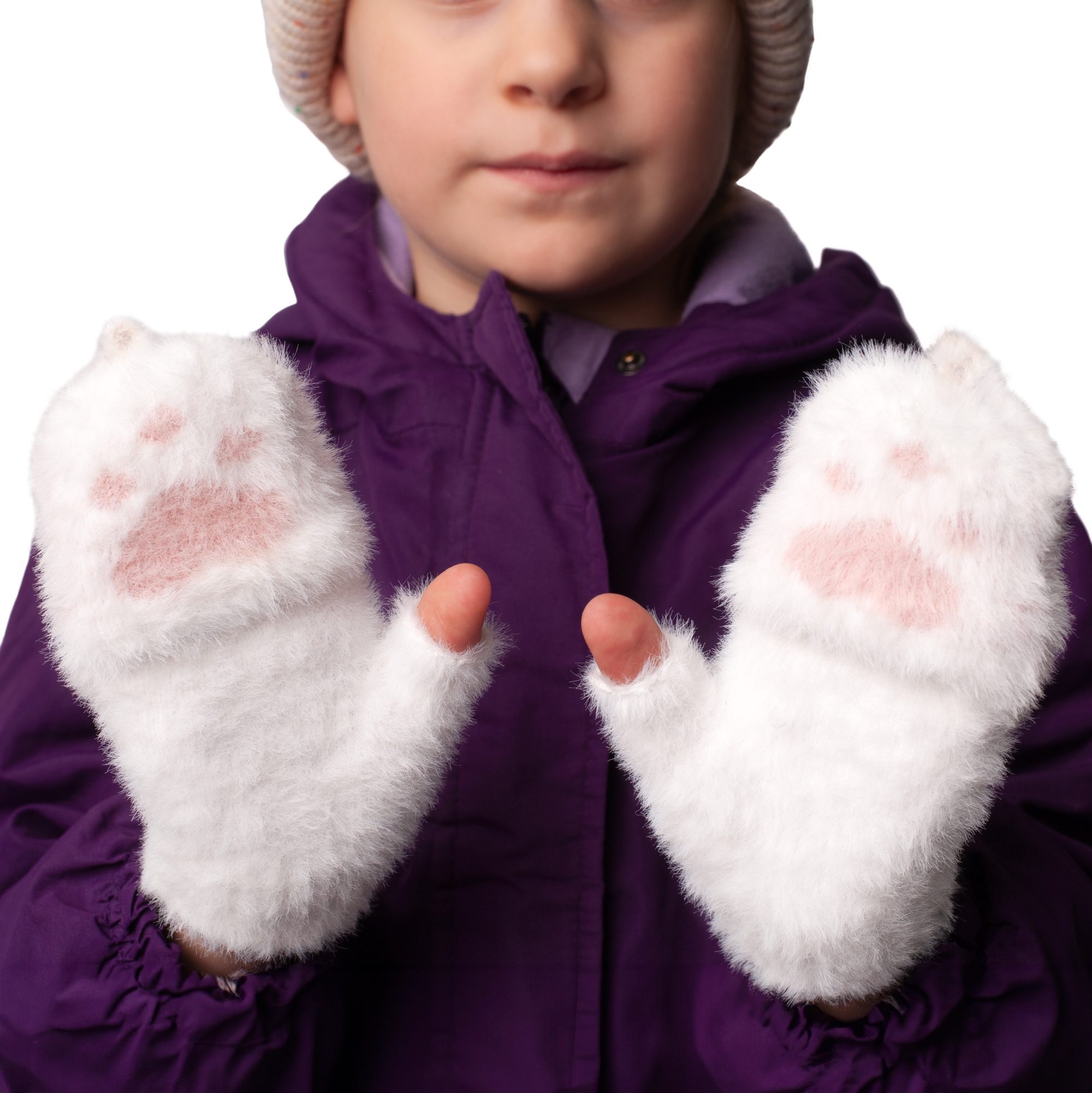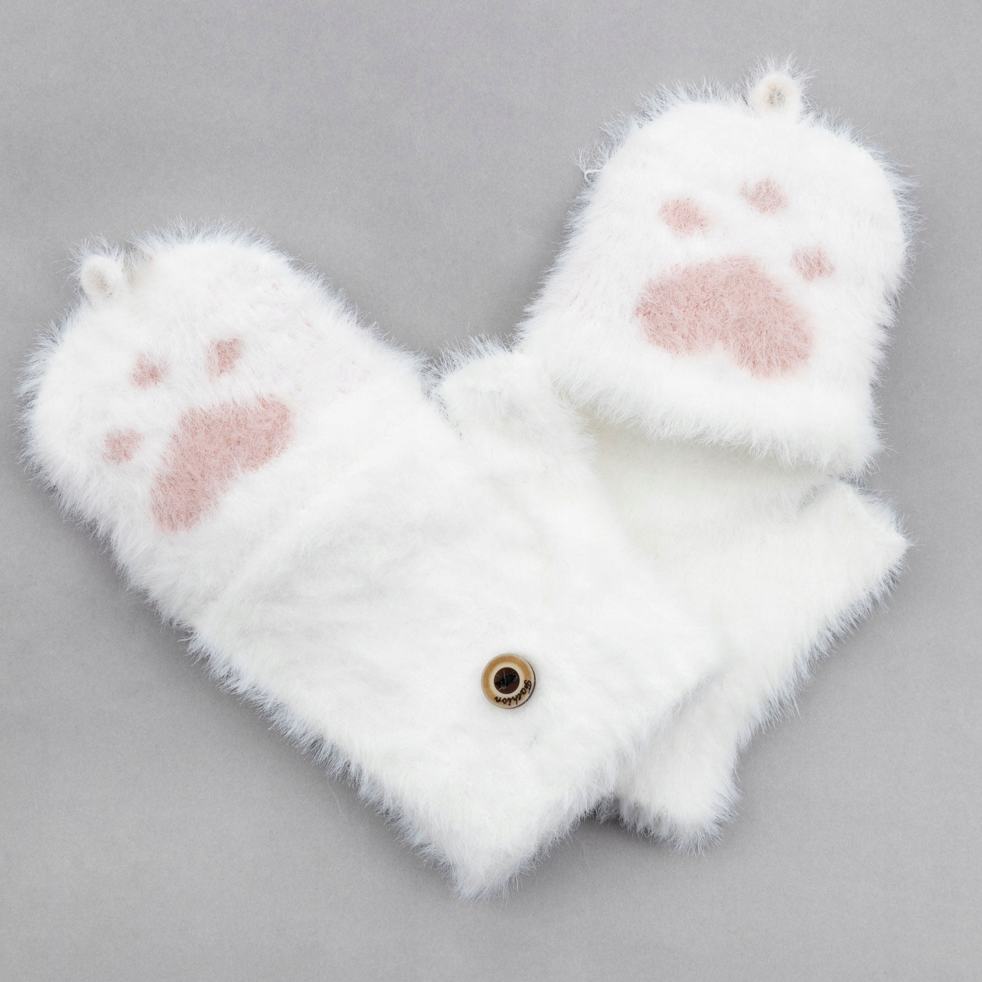 Mięciutkie puszyste rękawiczki Mitenki zamykane z łapką Białe