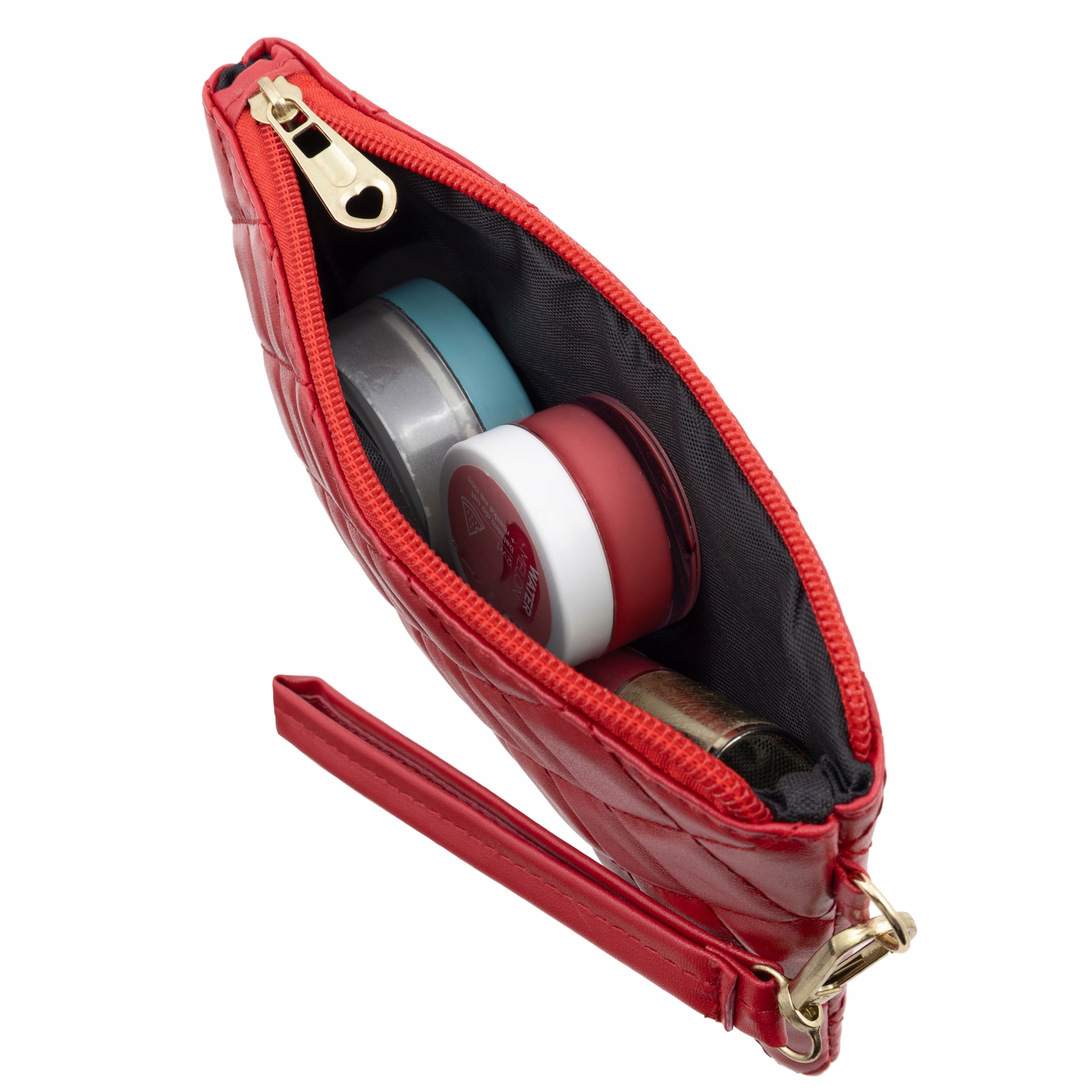 Pikowana saszetka / kosmetyczka z paskiem – czerwona