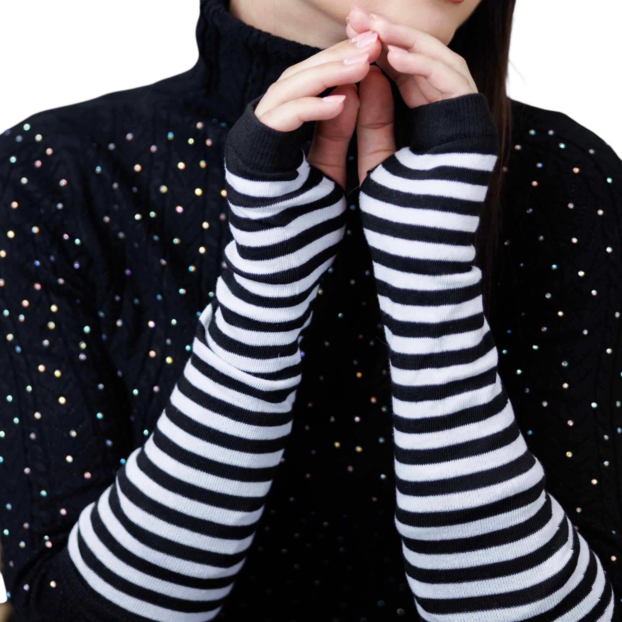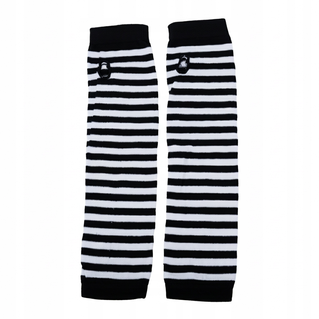 Modne rękawki damskie typu arm warmers w klasyczne czarno-białe paski. Stylowy dodatek, który świetnie uzupełnia codzienne stylizacje i nadaje im oryginalnego charakteru.