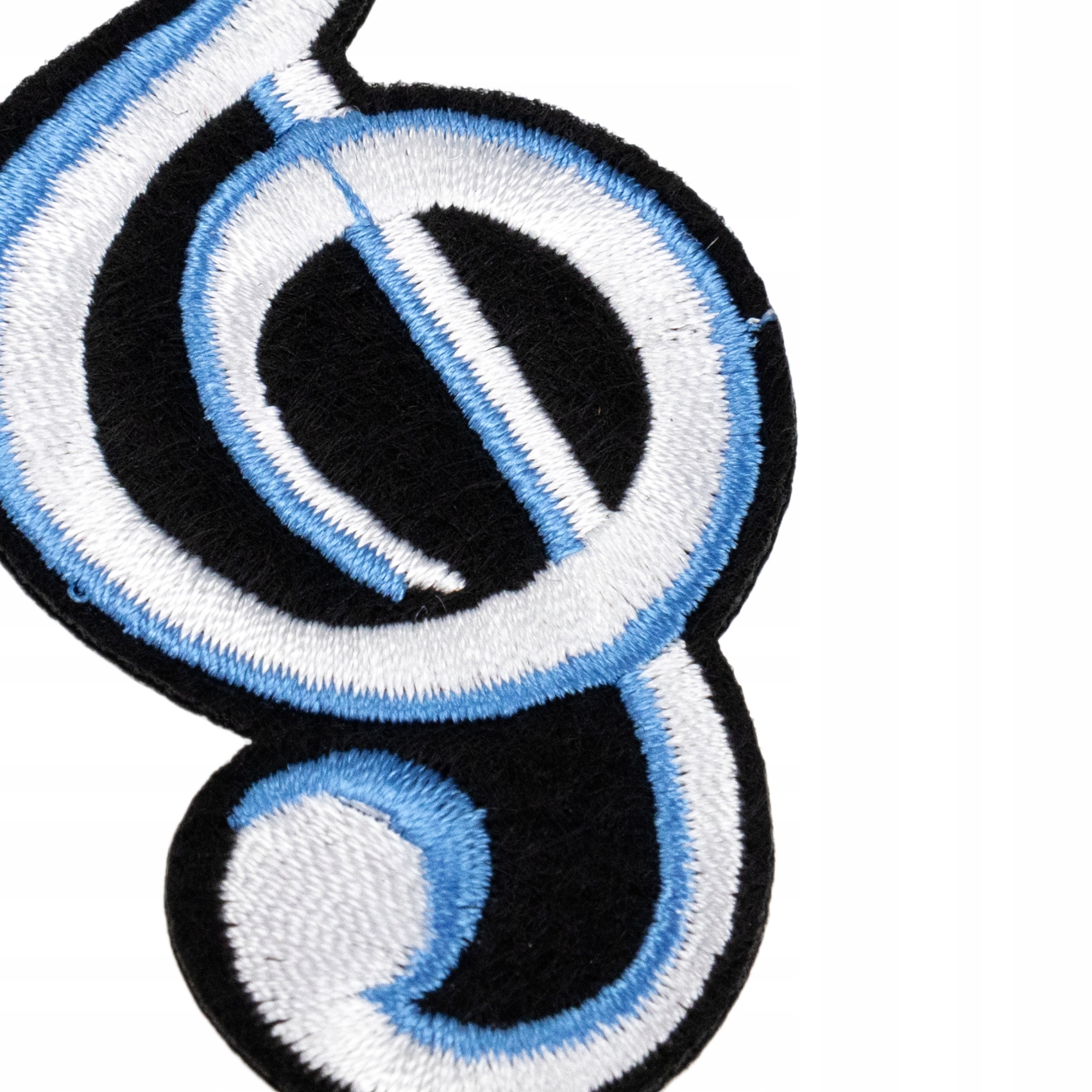 Naszywka jest bardzo starannie wykonana. Widać dokładnie wycięte krawędzie konturu i precyzyjny haft maszynowy.