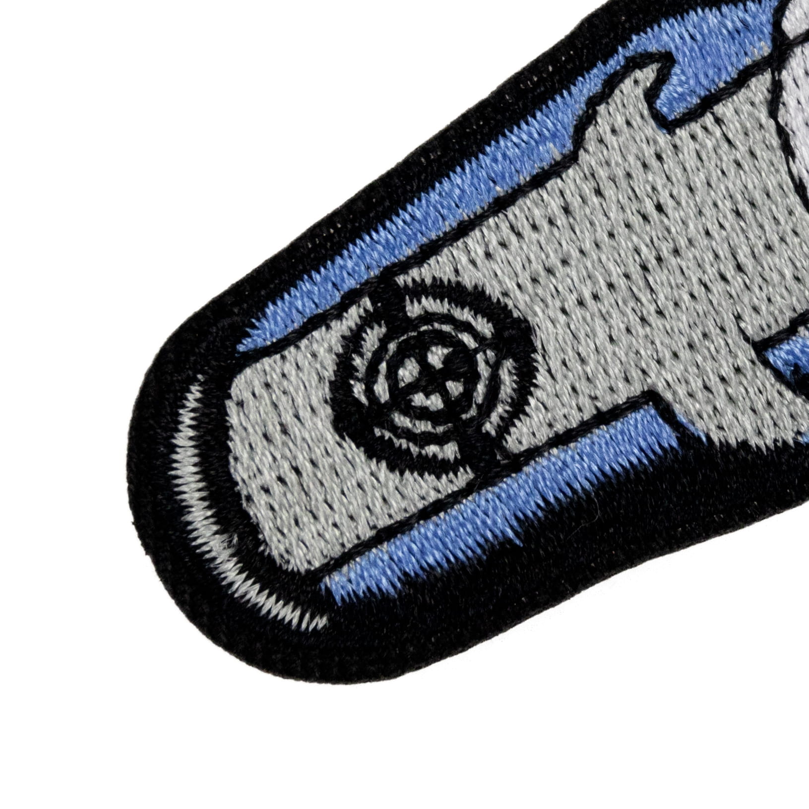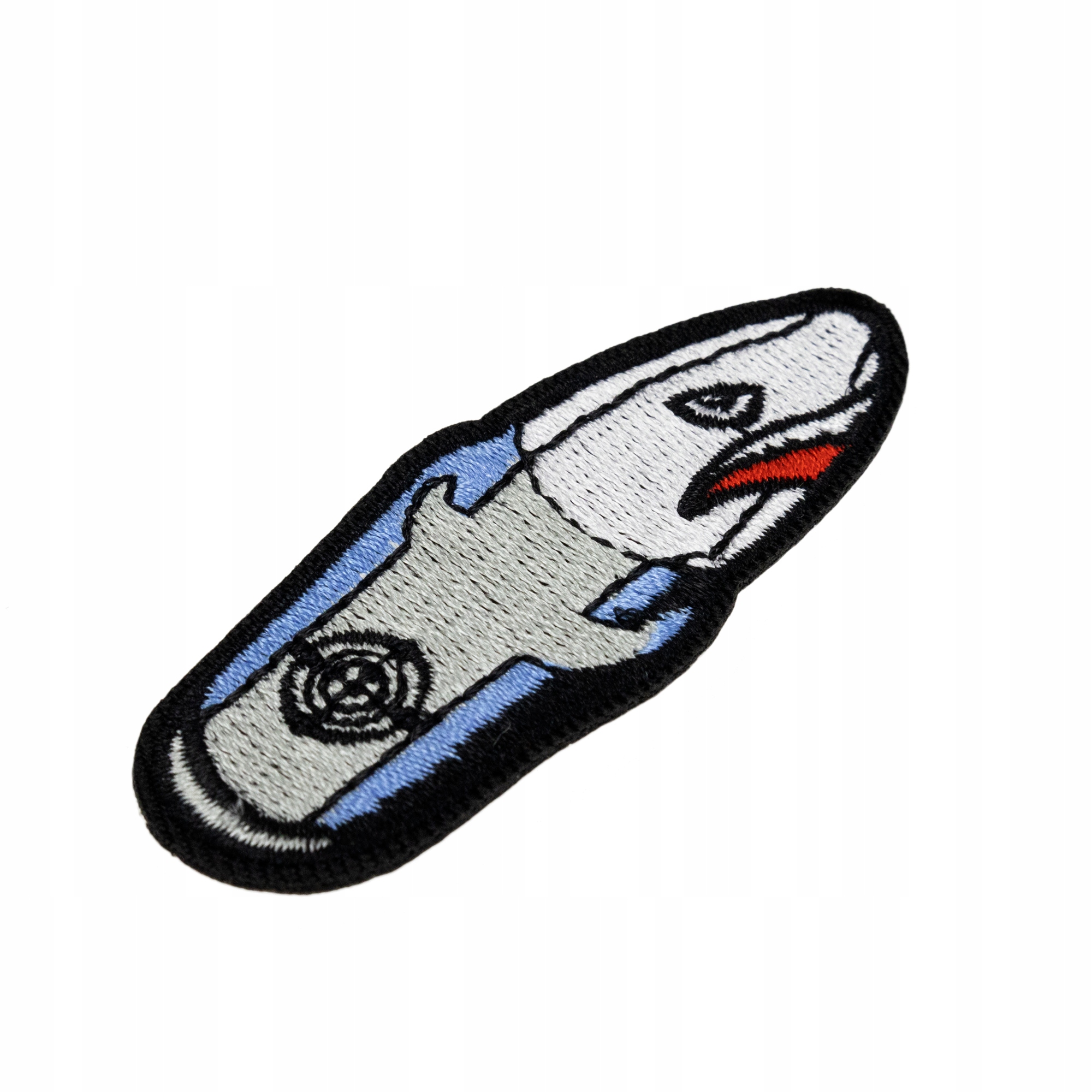 Naszywka jest bardzo starannie wykonana. Widać dokładnie wycięte krawędzie konturu i precyzyjny haft maszynowy.