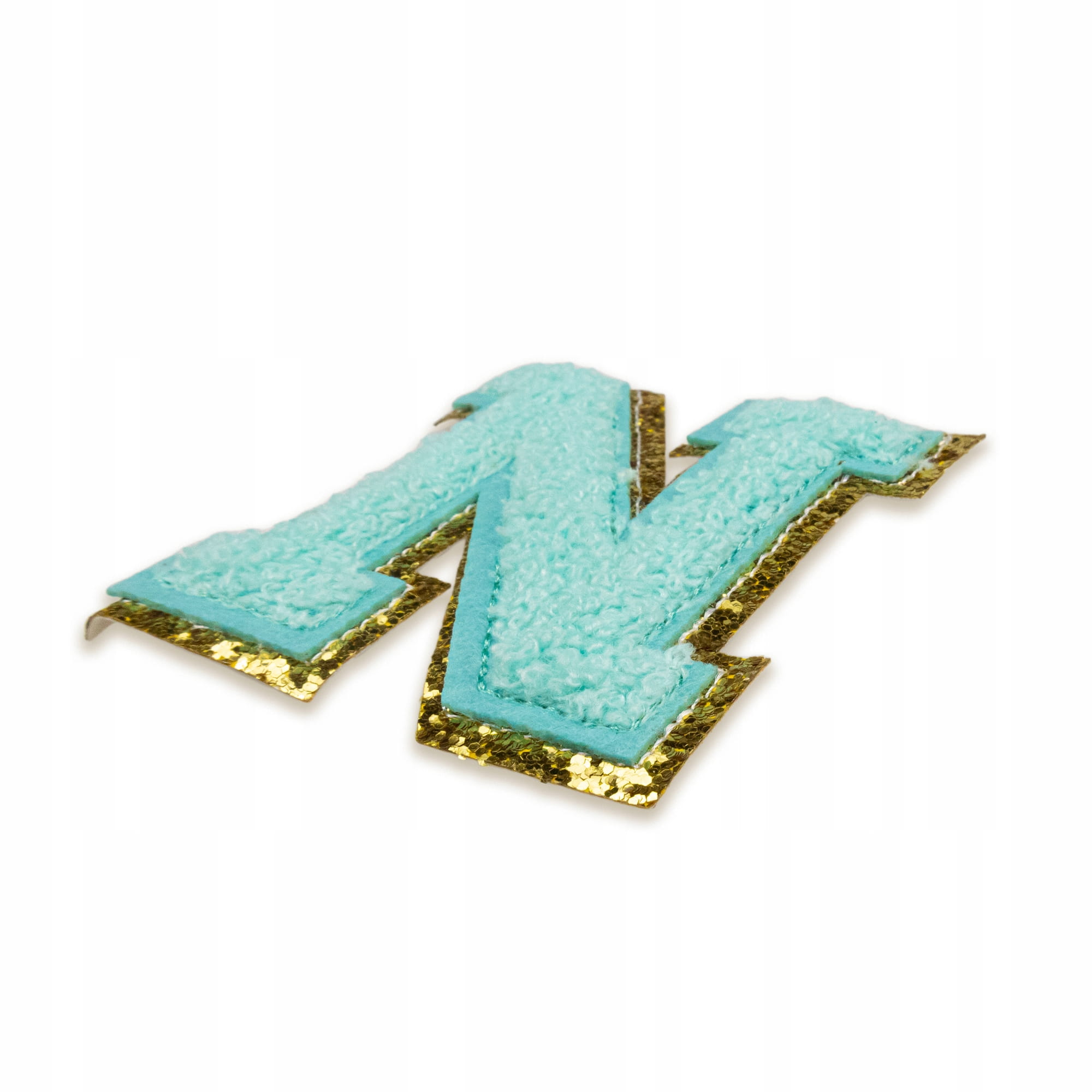 NASZYWKA Font LITERA N cyjanowa brokat błękitna