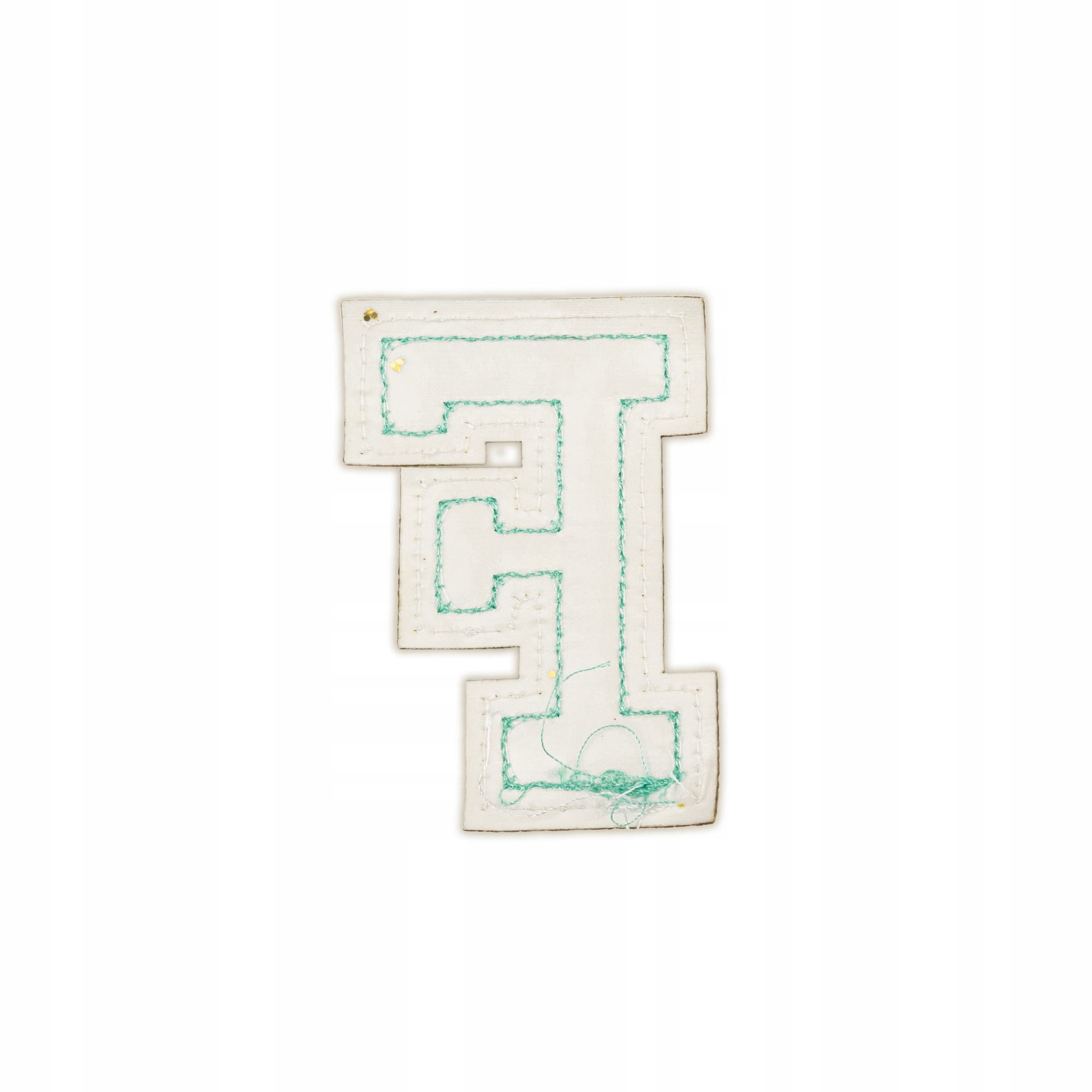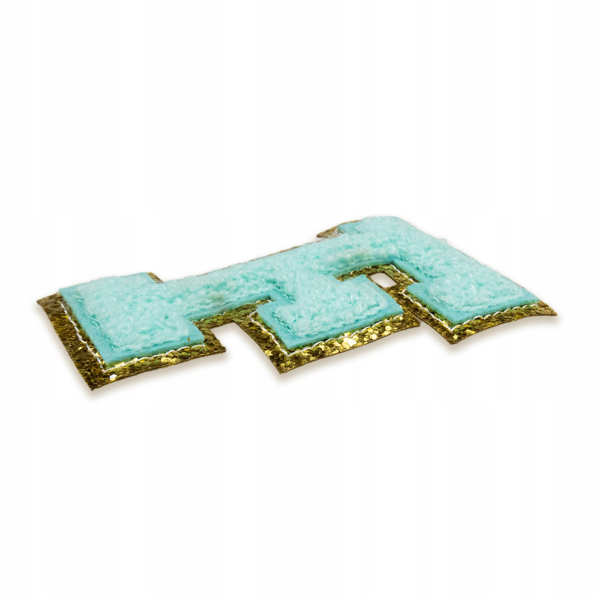 NASZYWKA LITERA F brokat niebieska cyjan Napis