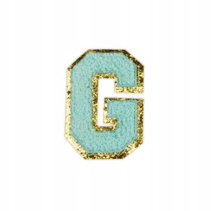 Piękna cyjanowa naszywka z literą G, zdobiona brokatem