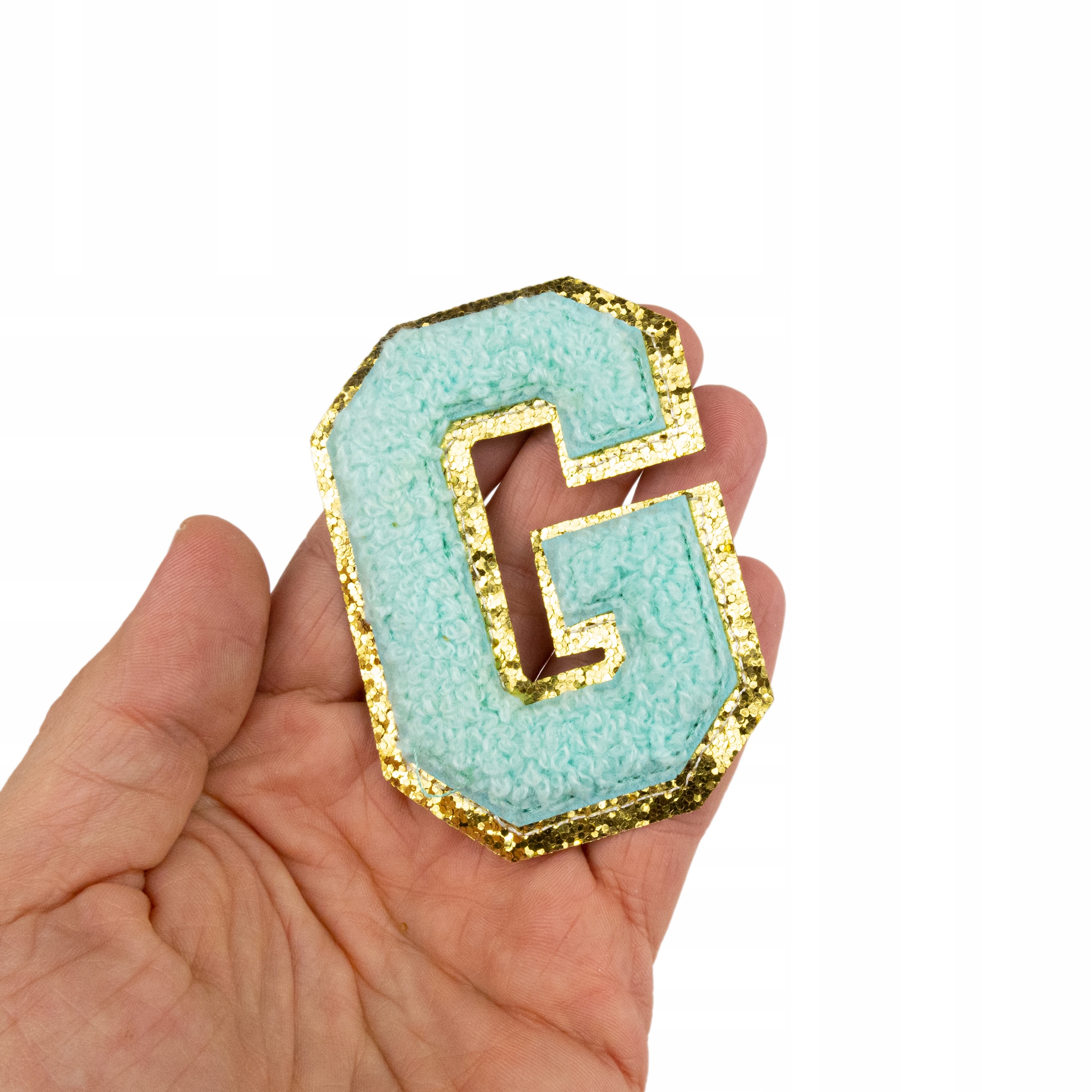 NASZYWKA LITERA G cyjanowa brokat niebieska Napis