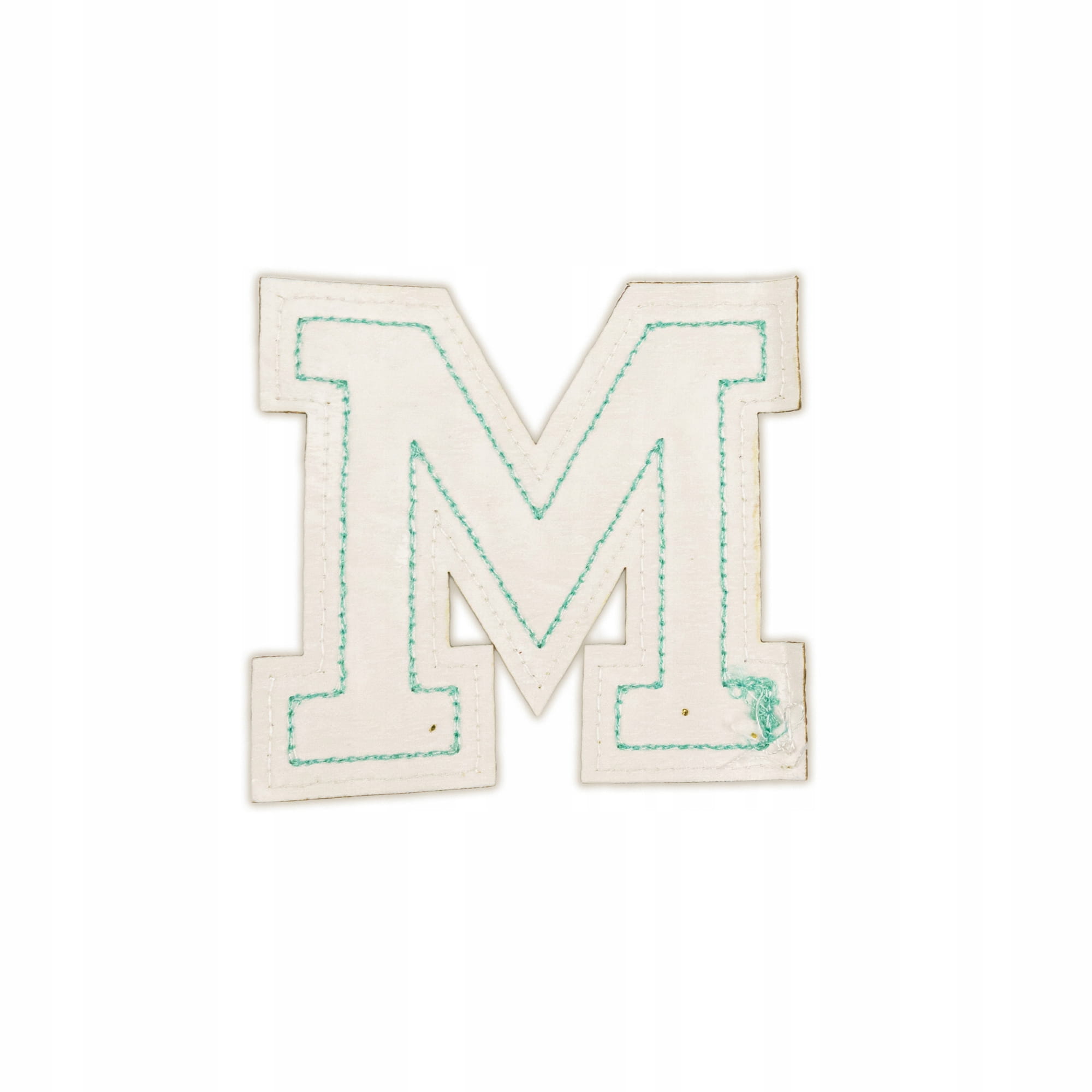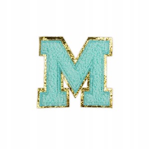 Piękna cyjanowa naszywka z literą M, zdobiona brokatem