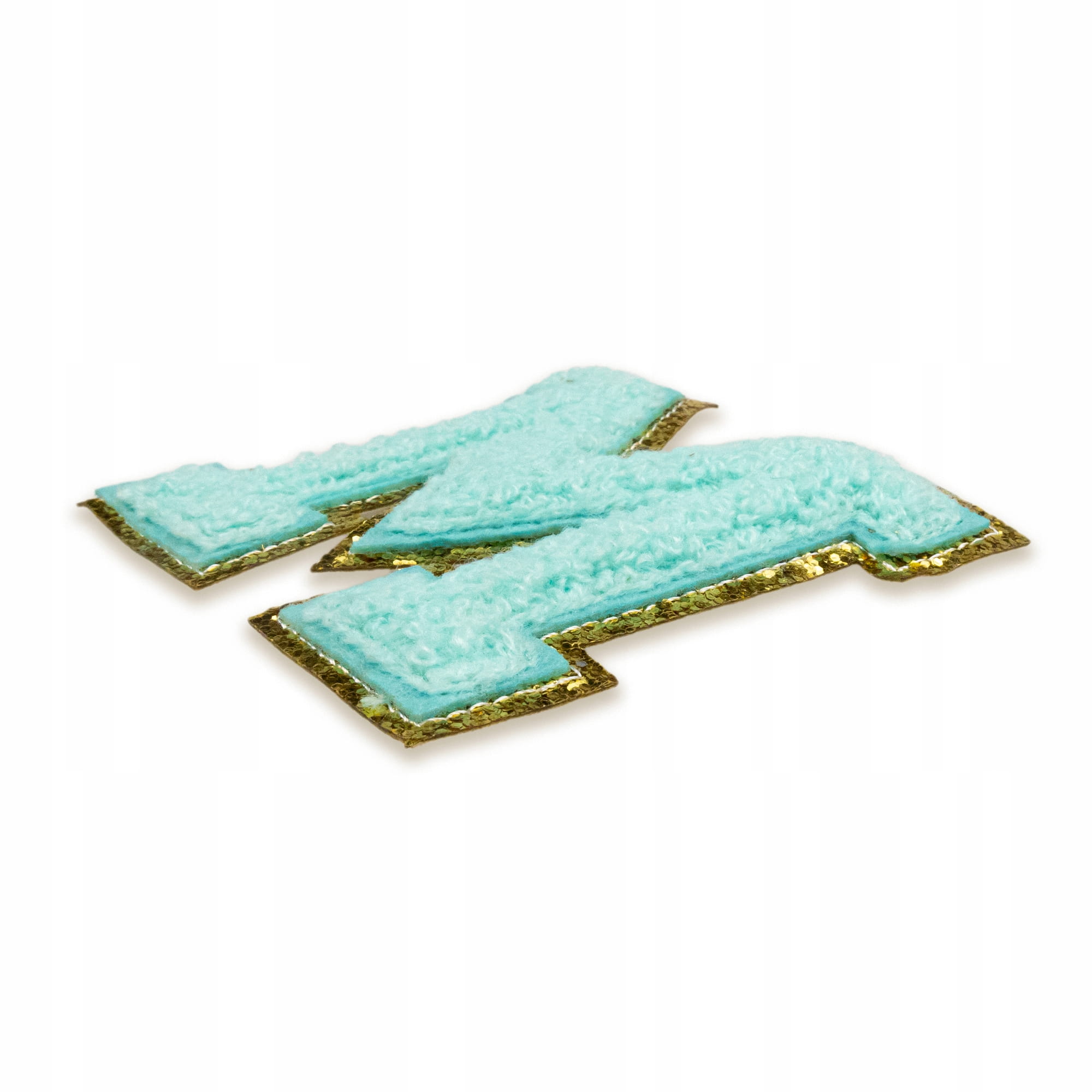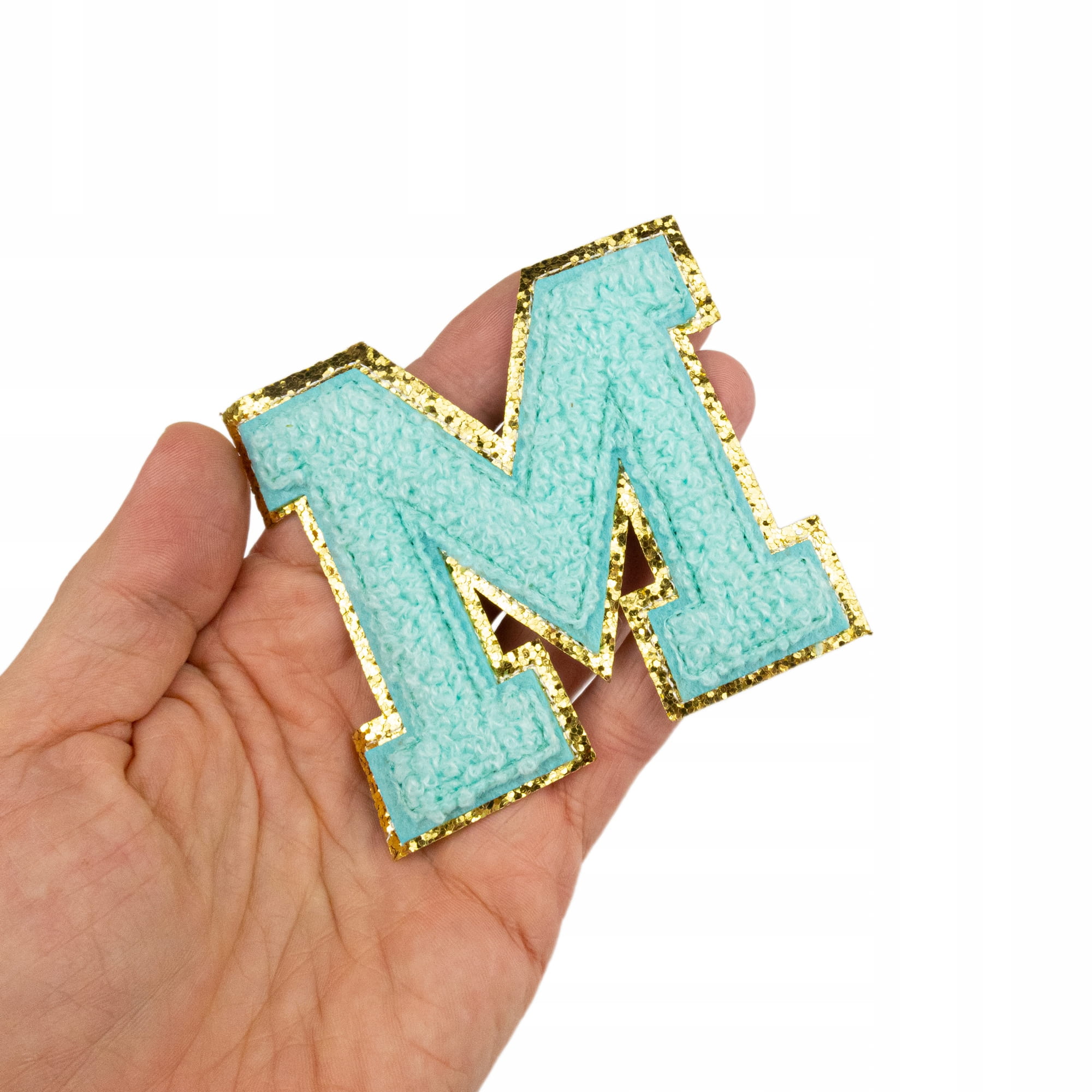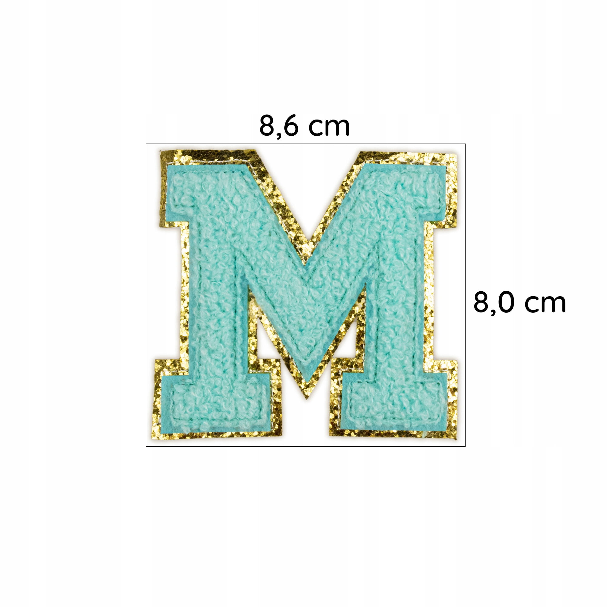 NASZYWKA LITERA M cyjanowa brokat błękitna Font