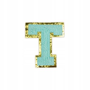 Piękna cyjanowa naszywka z literą T, zdobiona brokatem