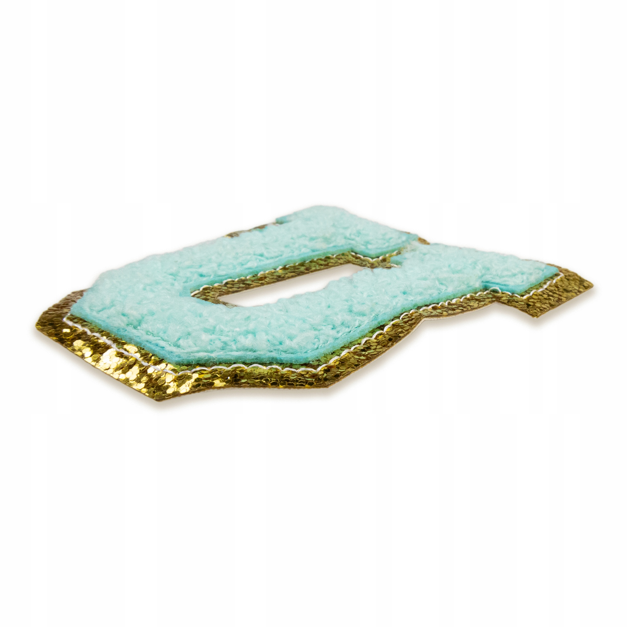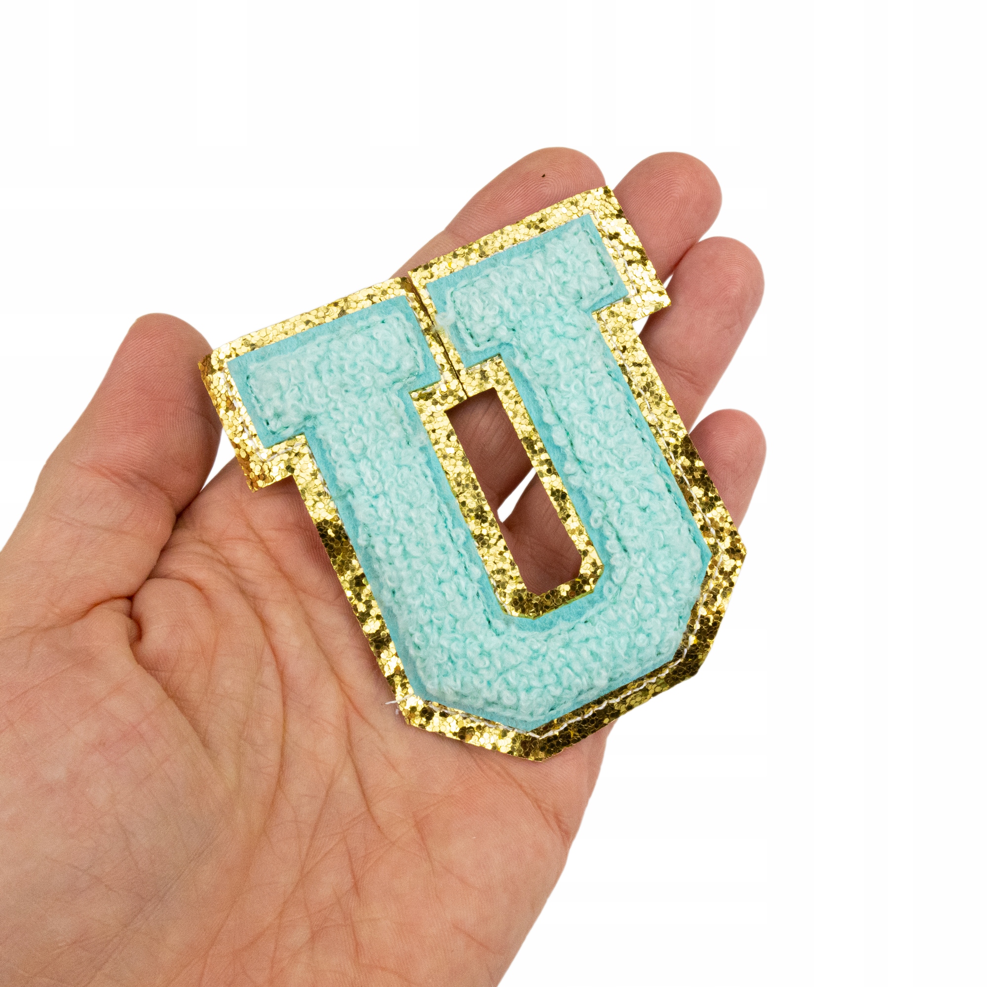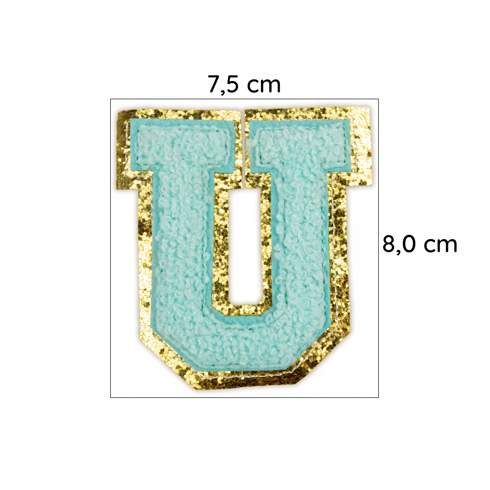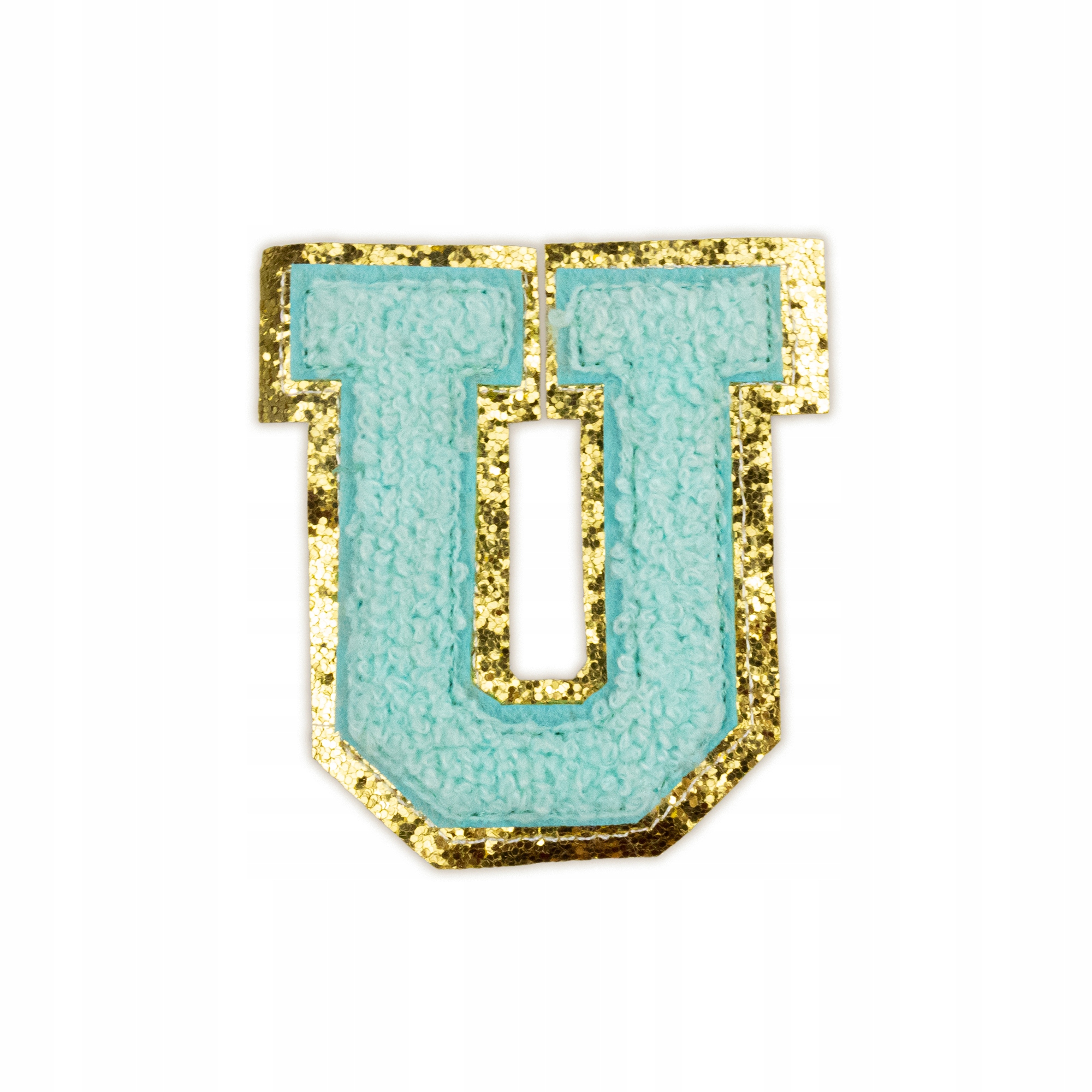NASZYWKA LITERA U duża aplikacja Font cyjan brokat