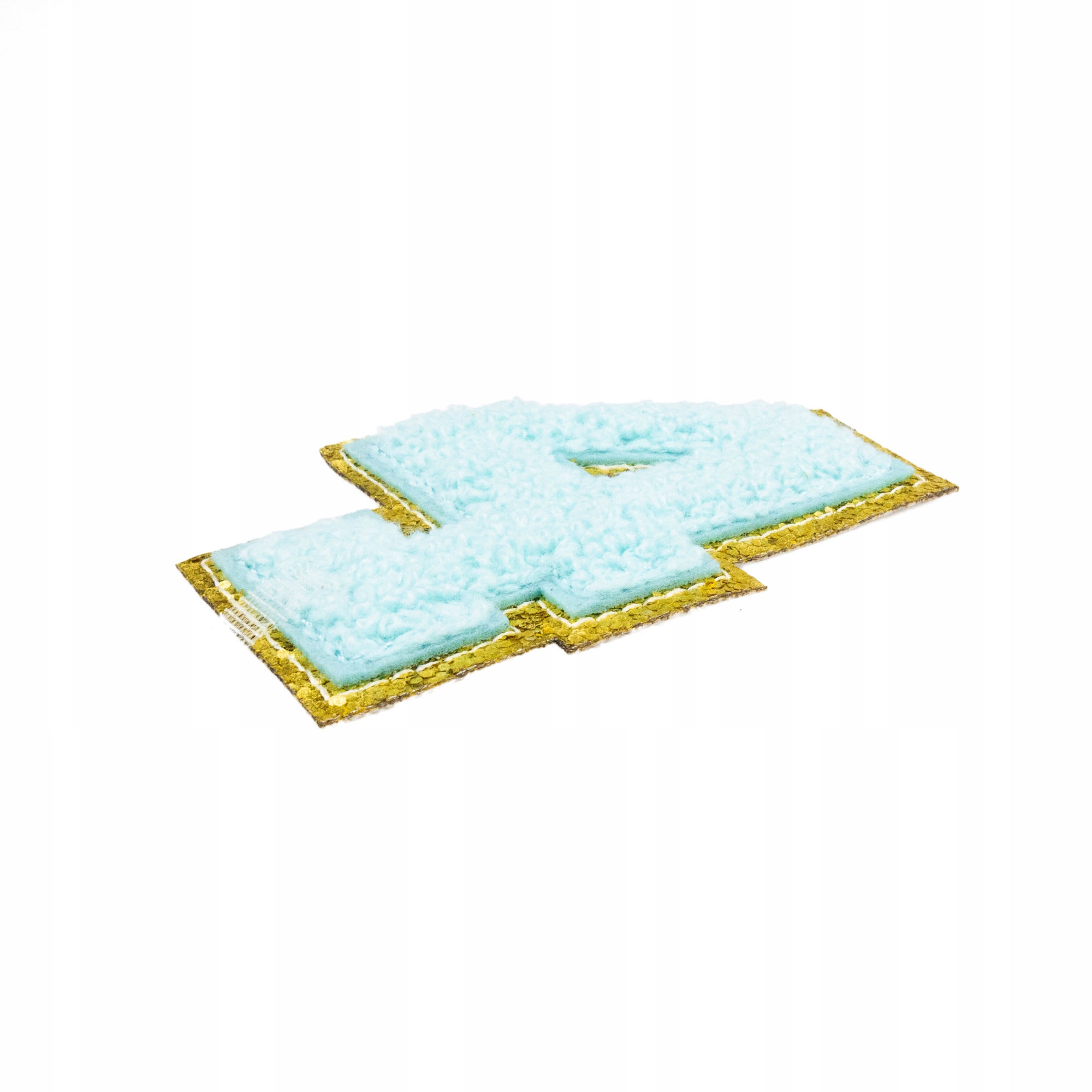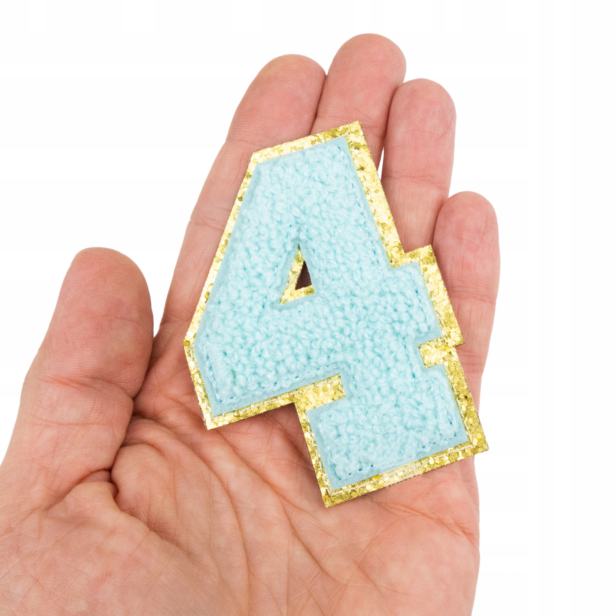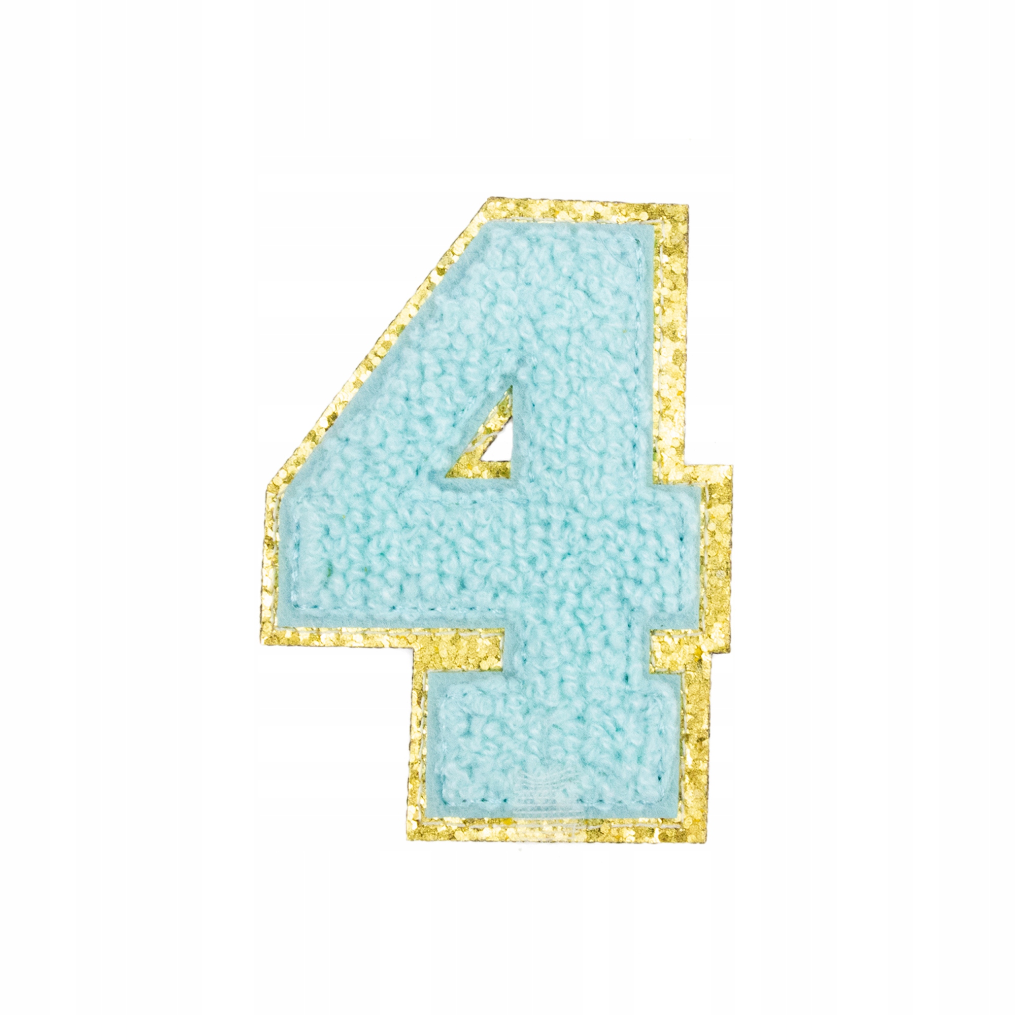 Piękna cyjanowa naszywka z cyfrą 4, zdobiona brokatem