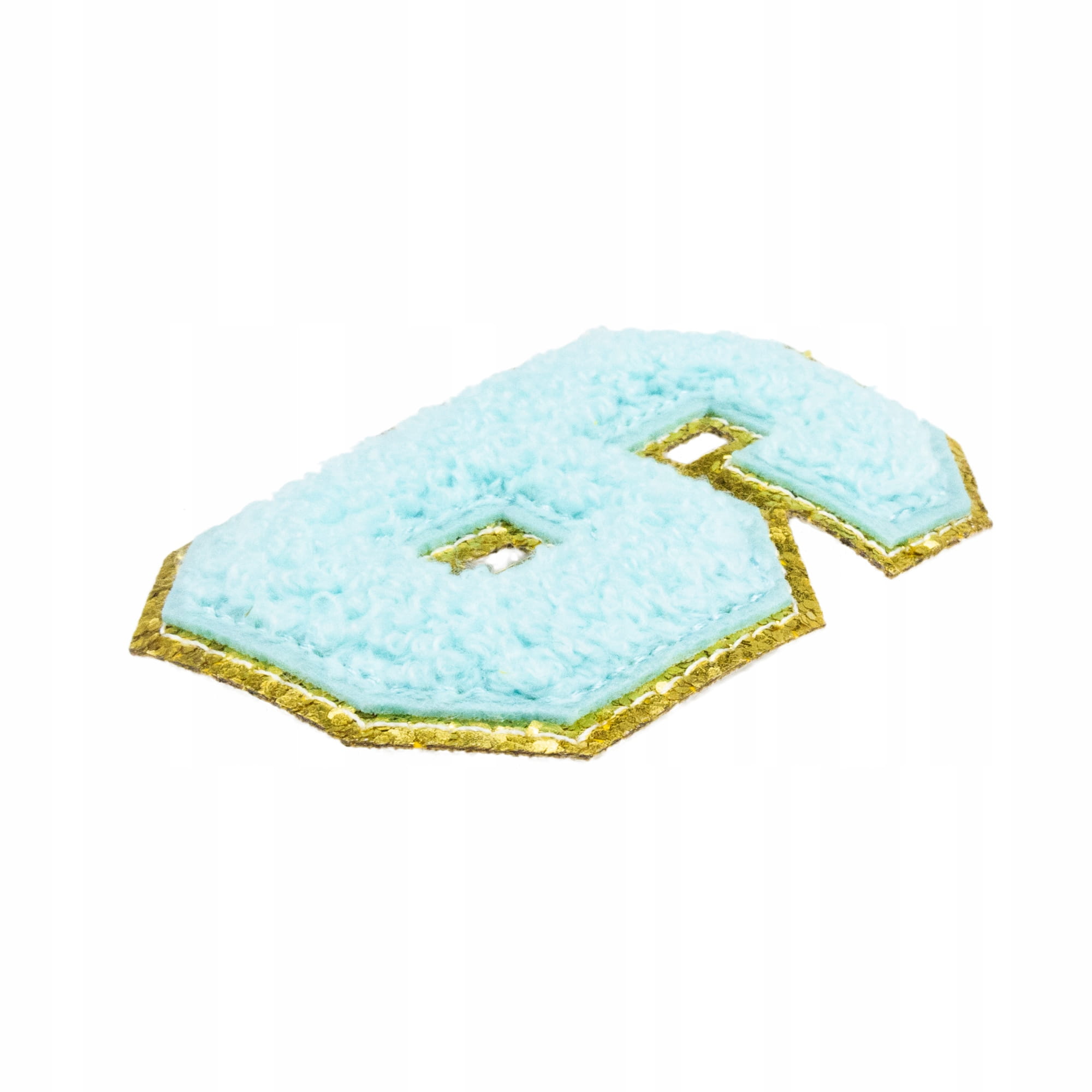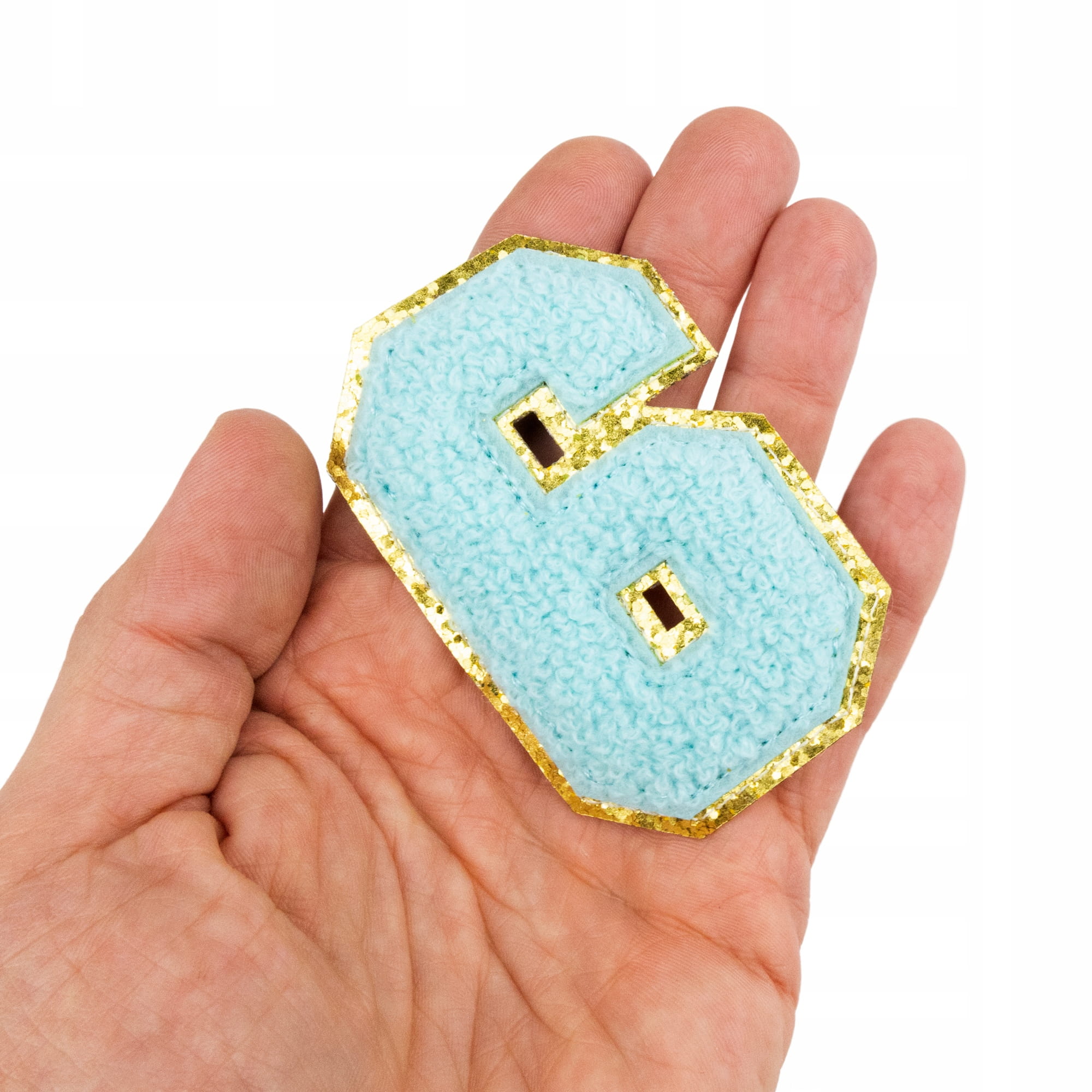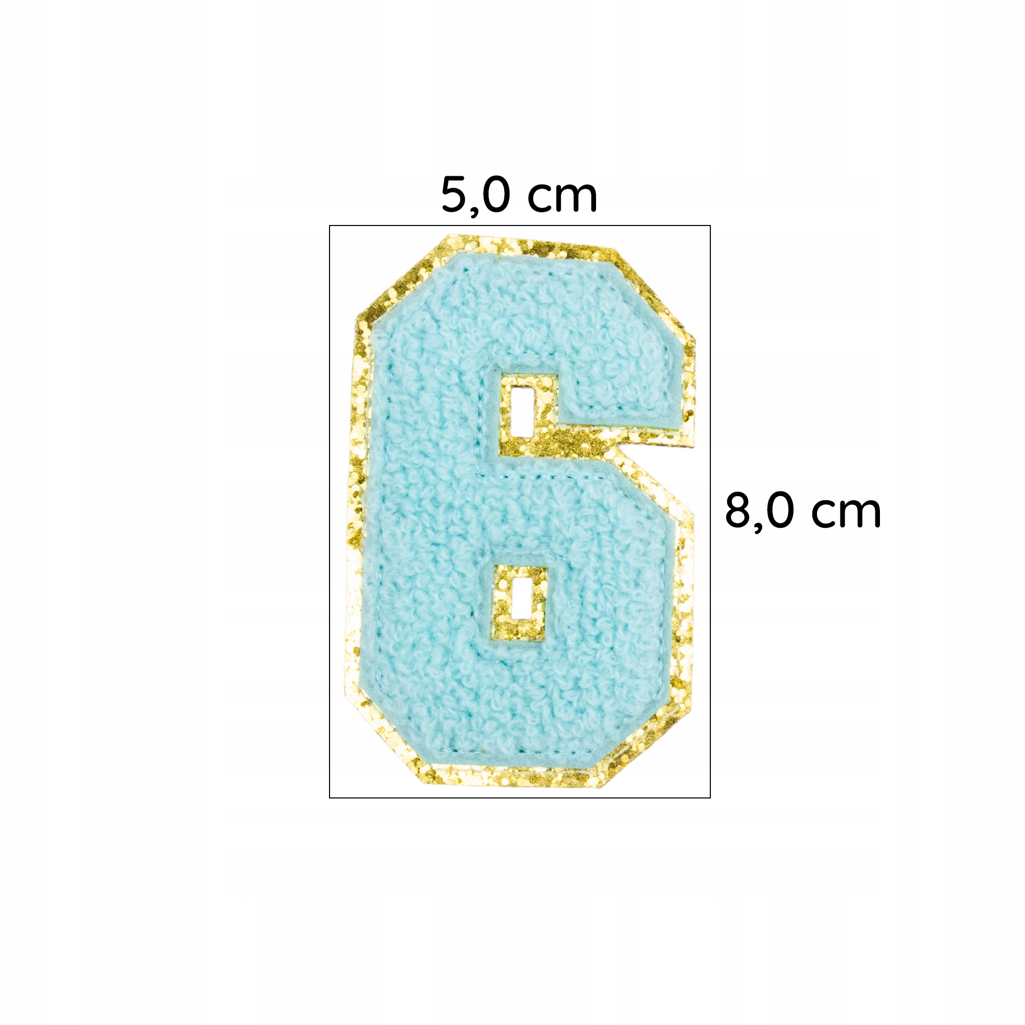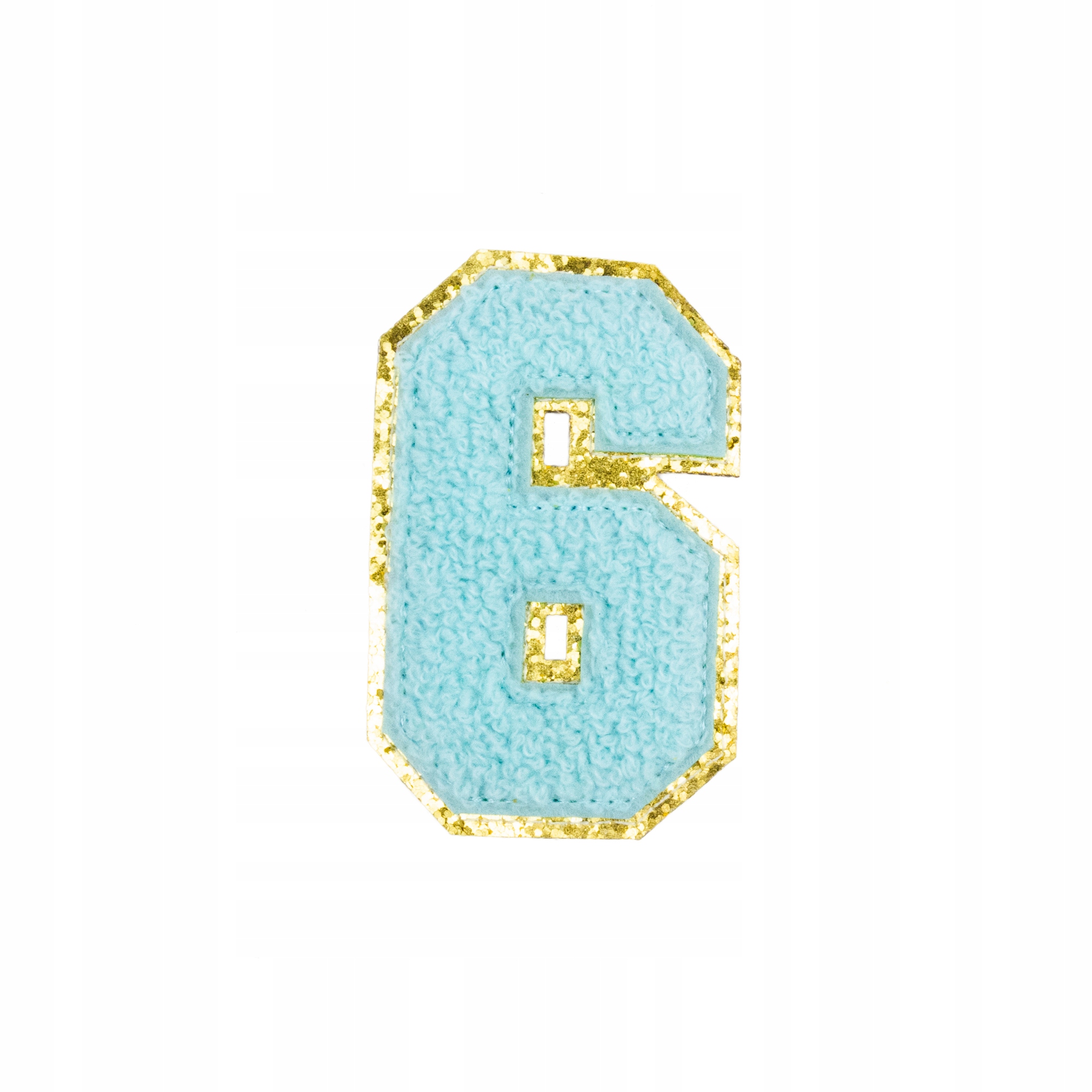 Piękna cyjanowa naszywka z cyfrą 6, zdobiona brokatem