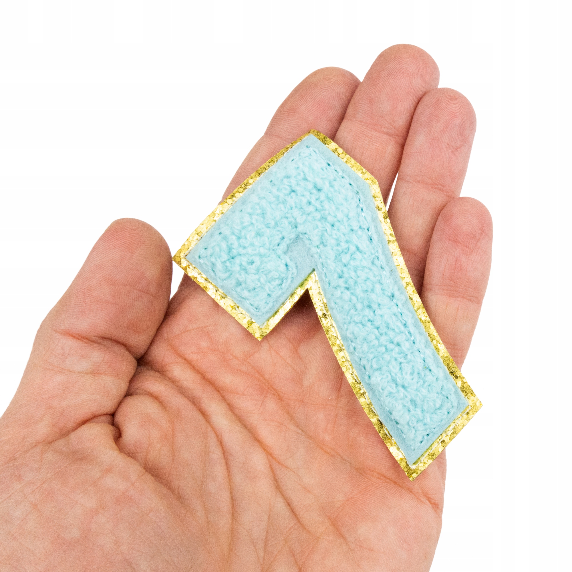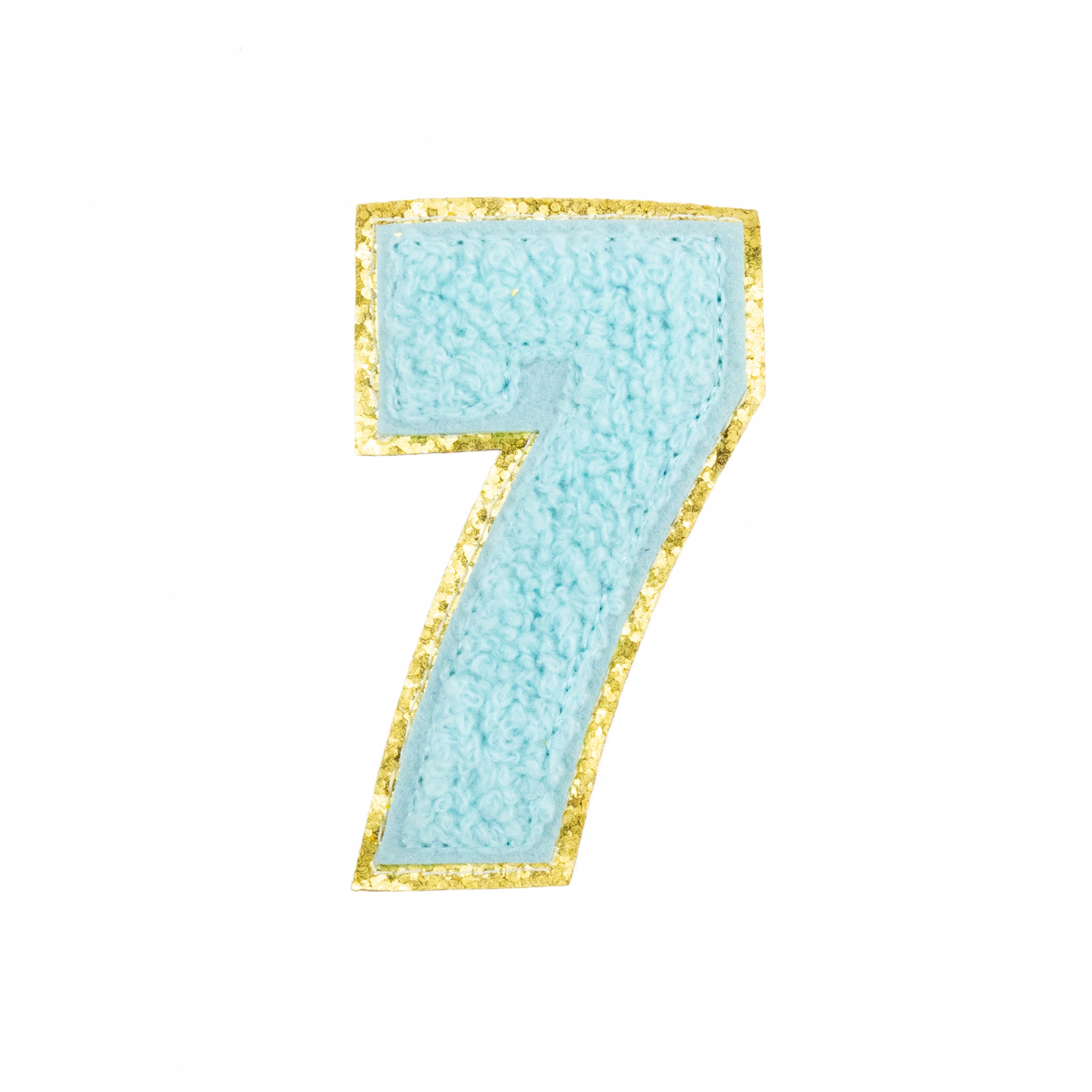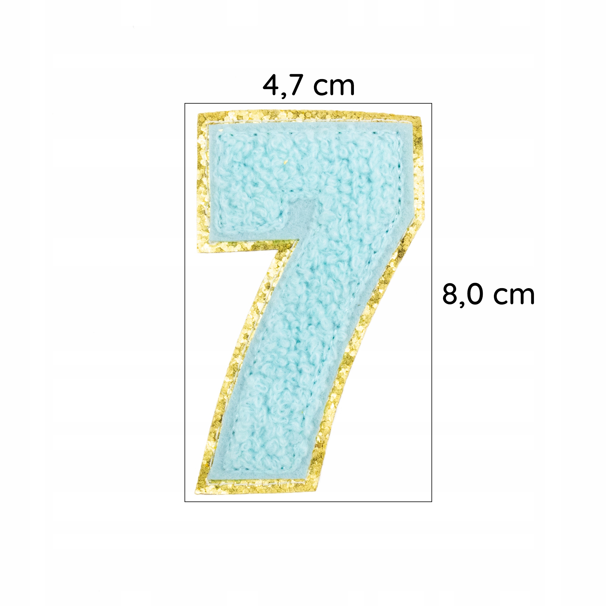 Piękna cyjanowa naszywka z cyfrą 7, zdobiona brokatem