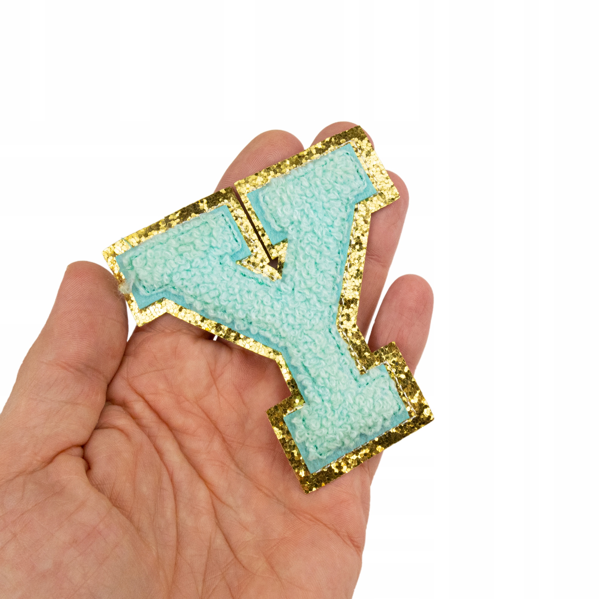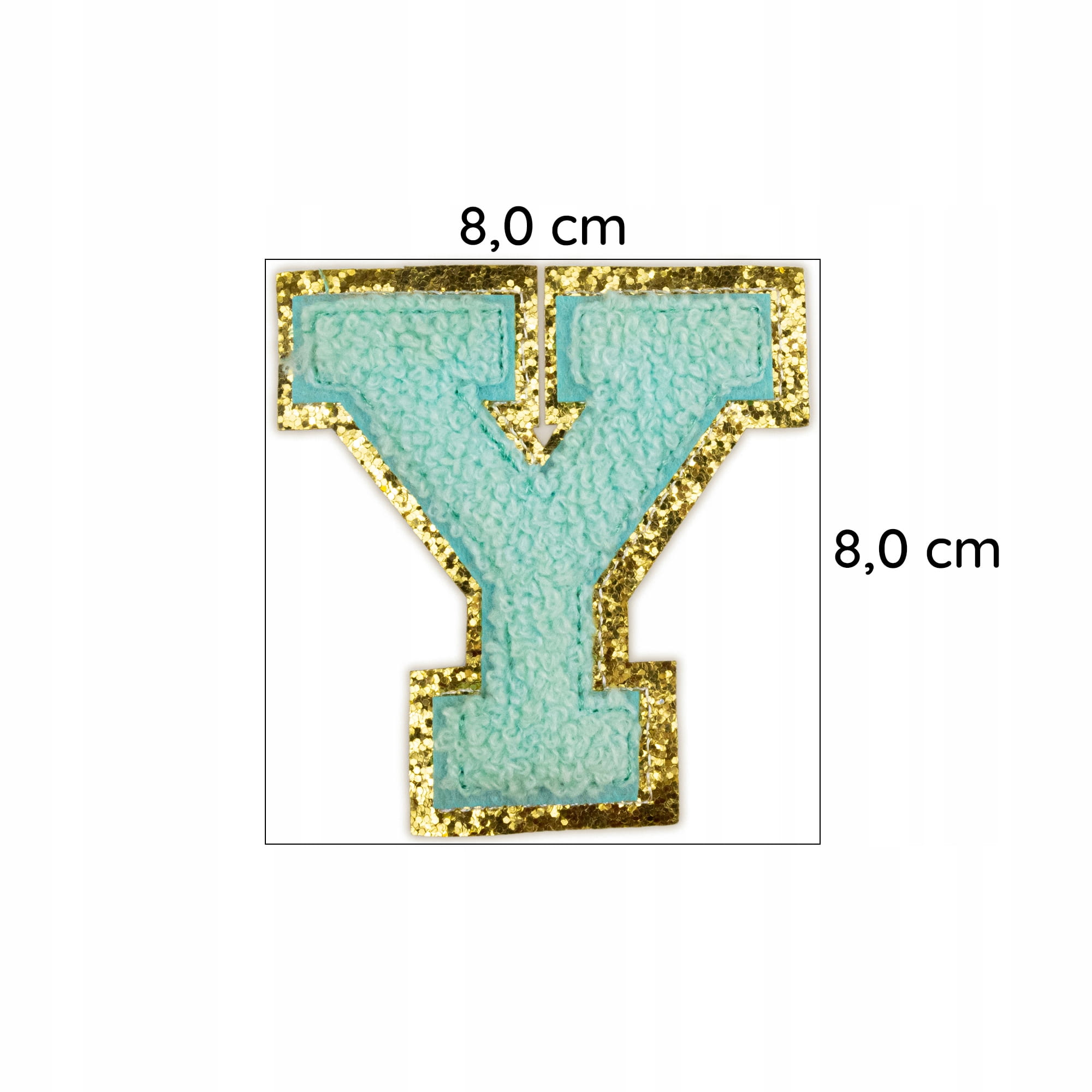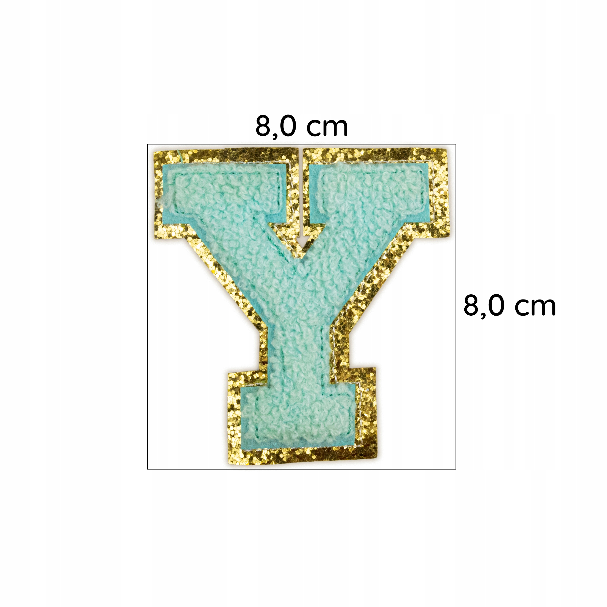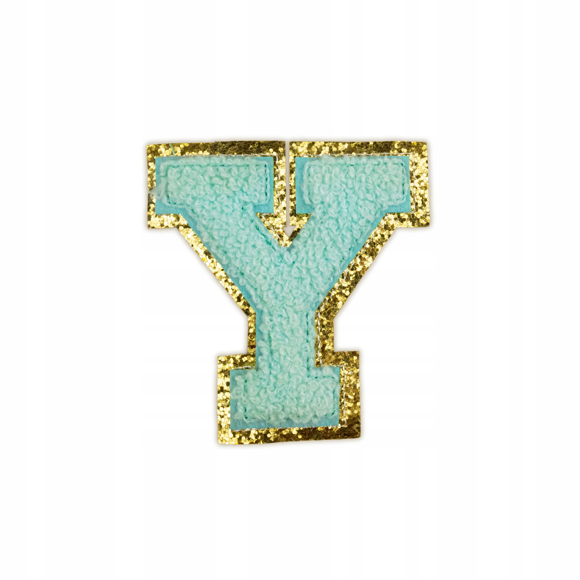 Piękna cyjanowa naszywka z literą Y, zdobiona brokatem