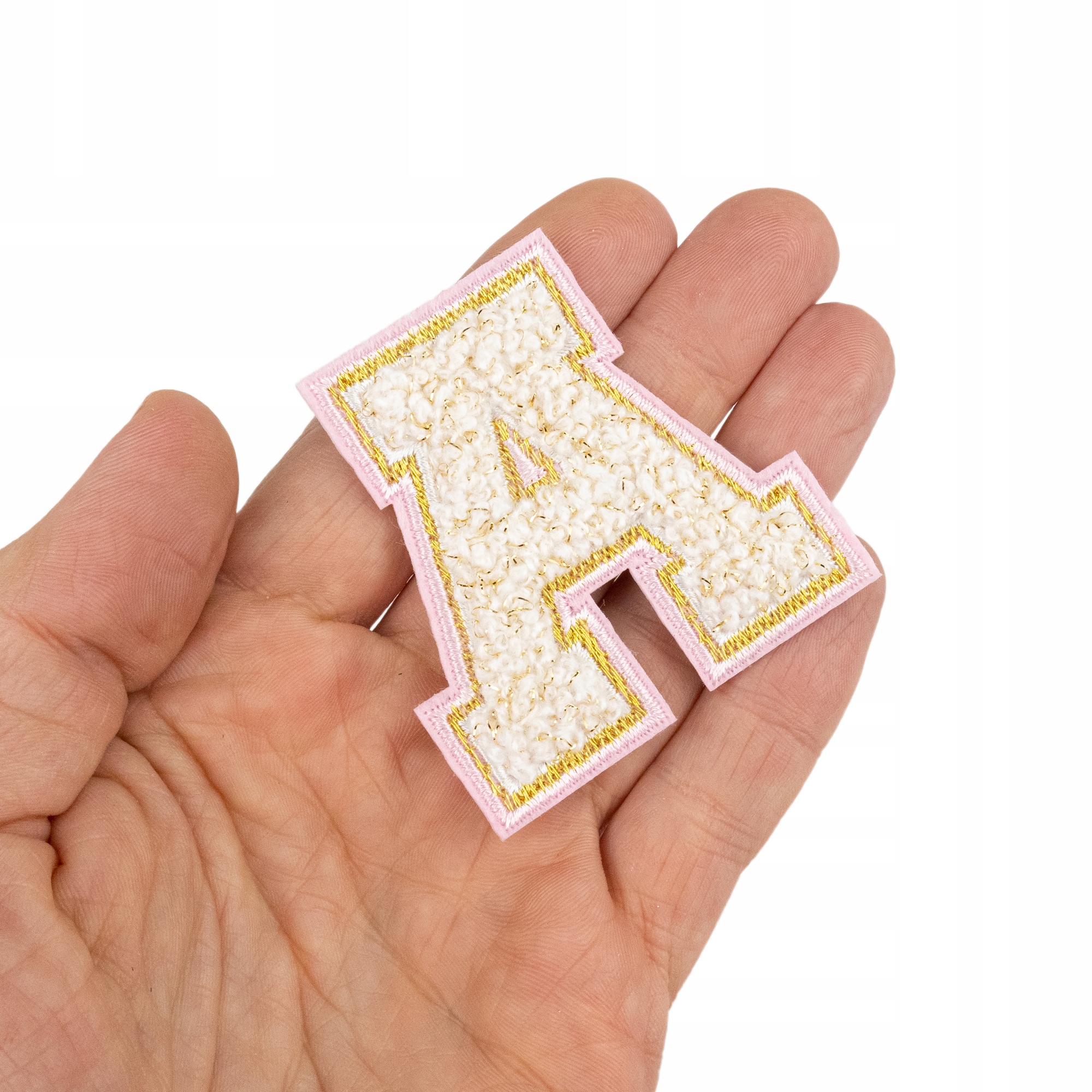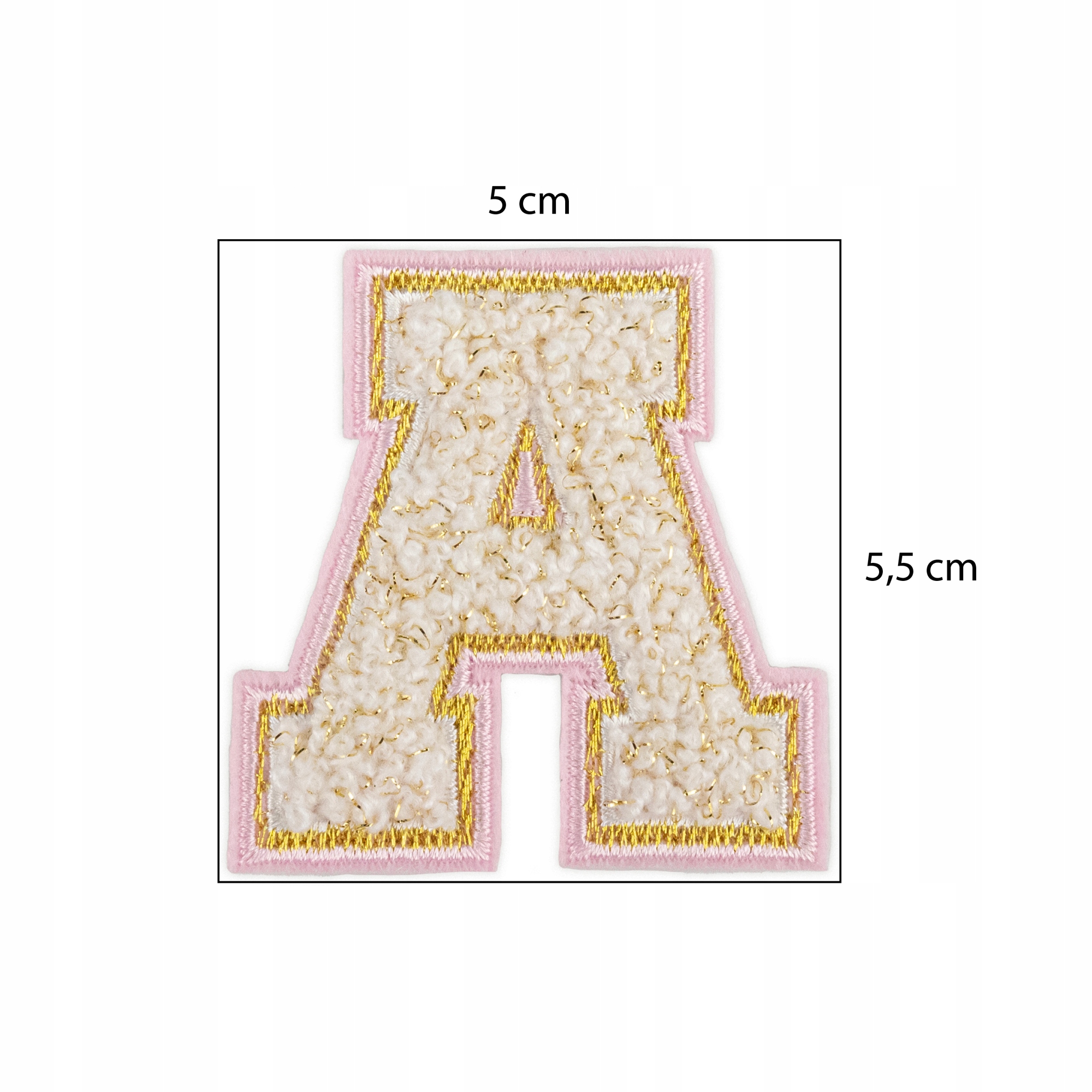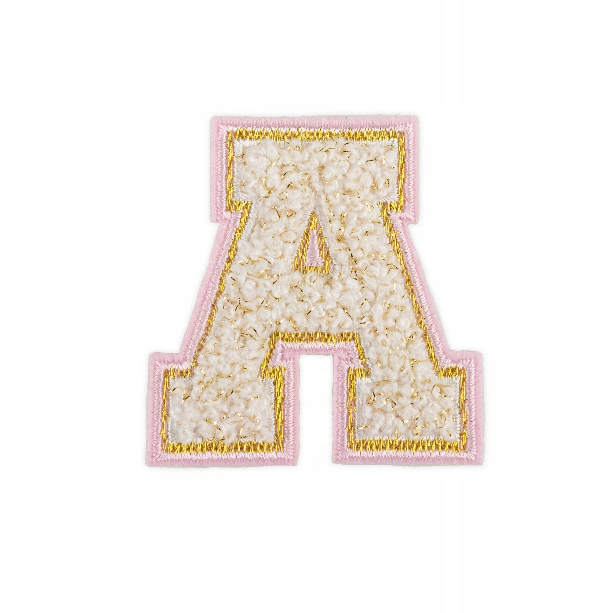 Piękna naszywka z białą literą A ze złotymi i różowymi konturami