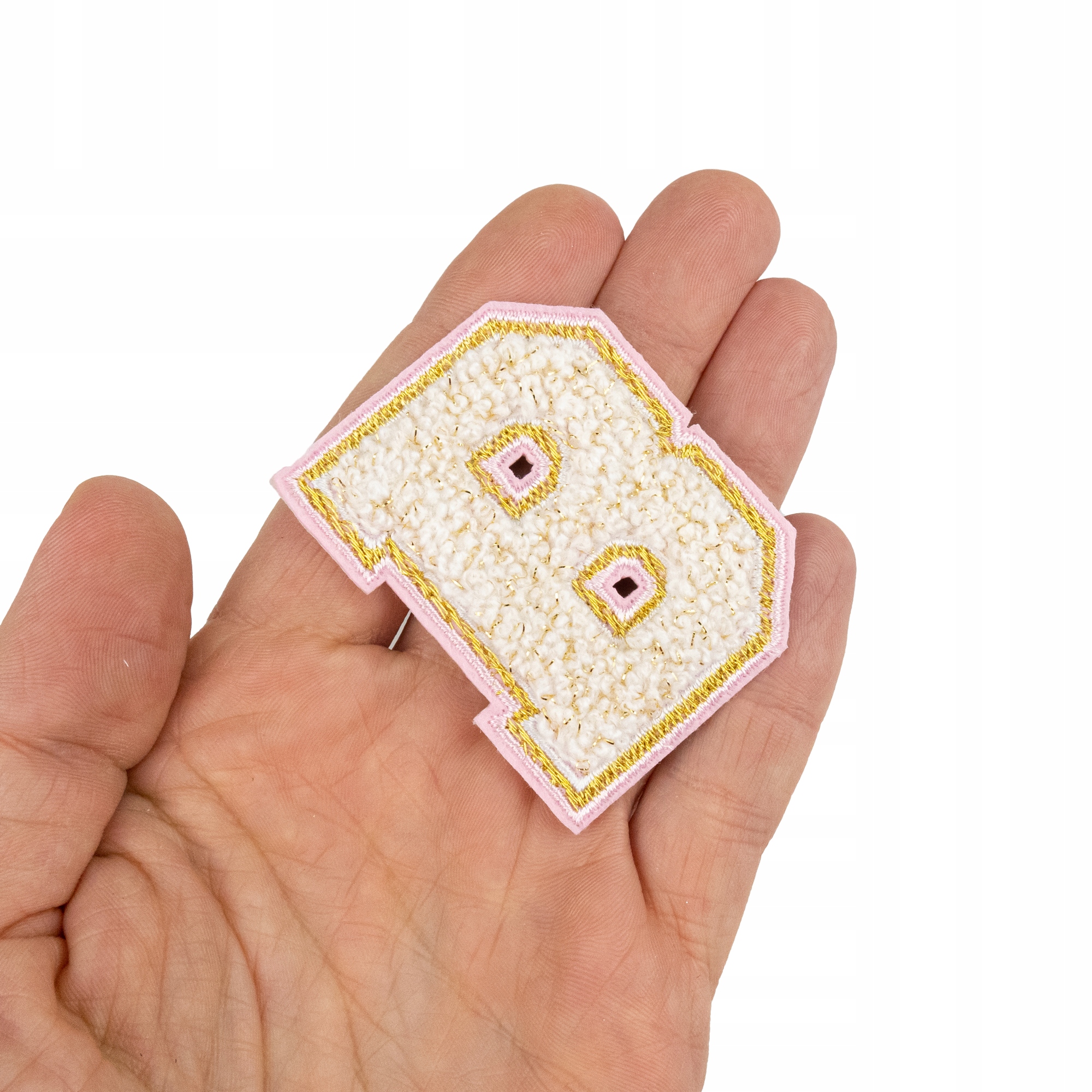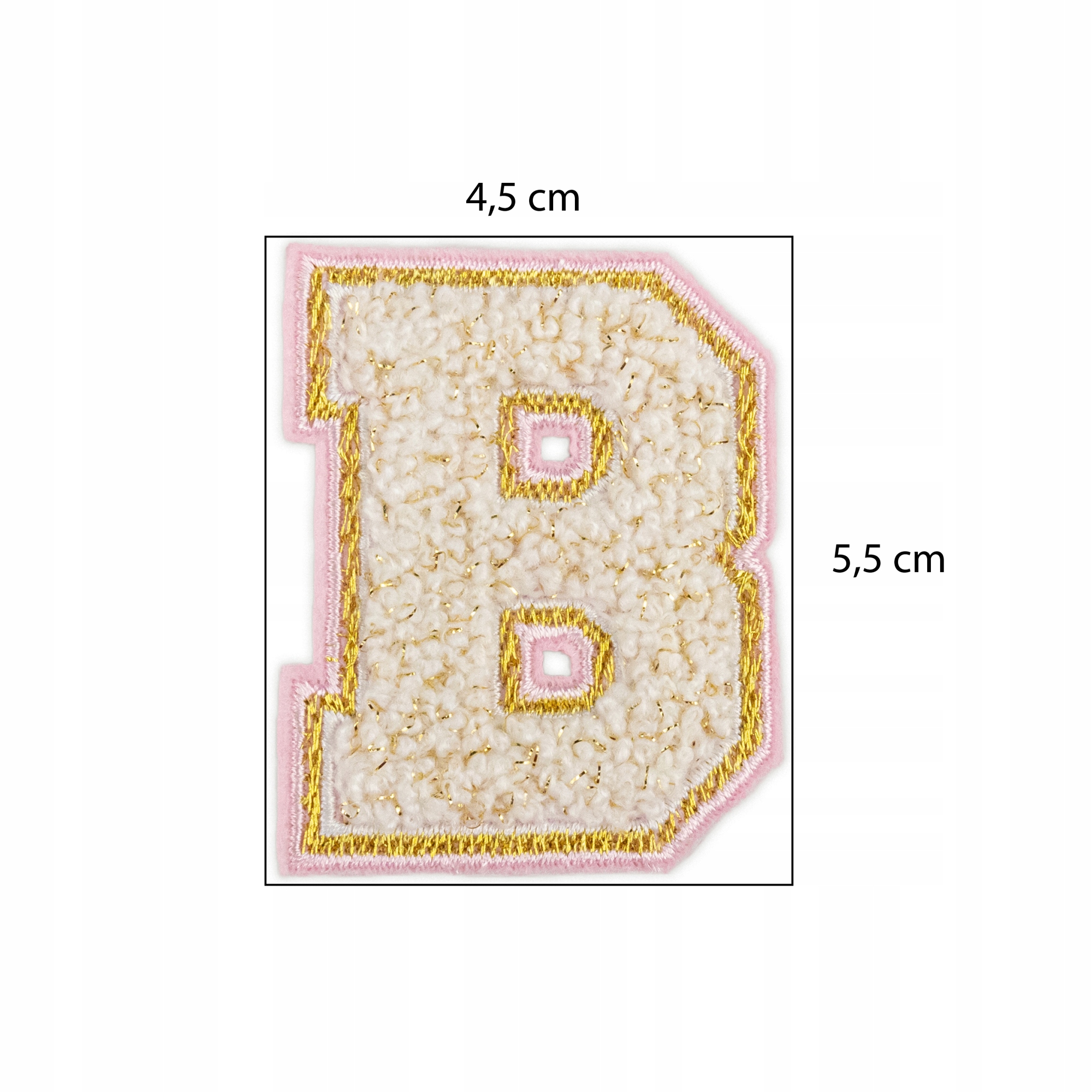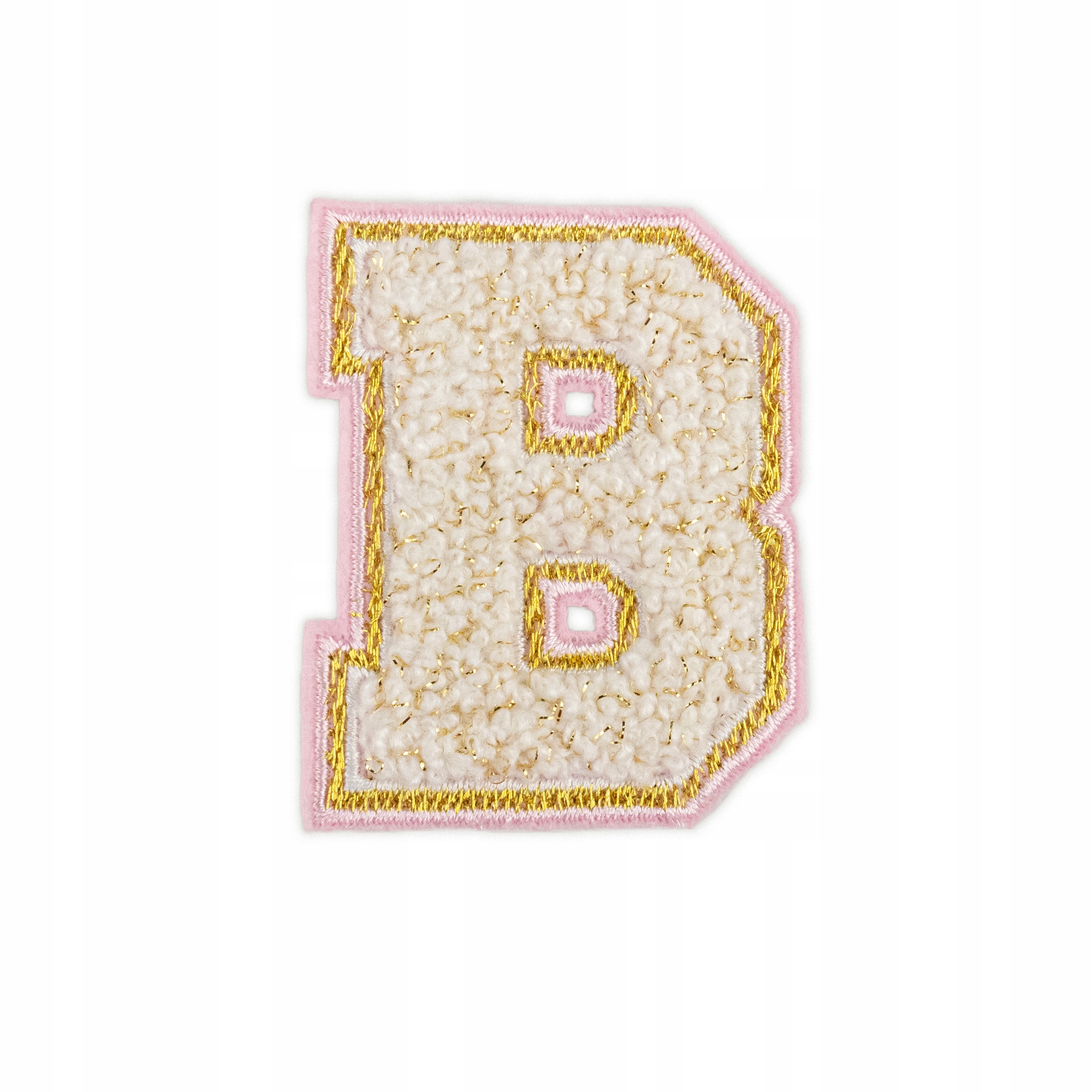 Piękna naszywka z białą literą B ze złotymi i różowymi konturami