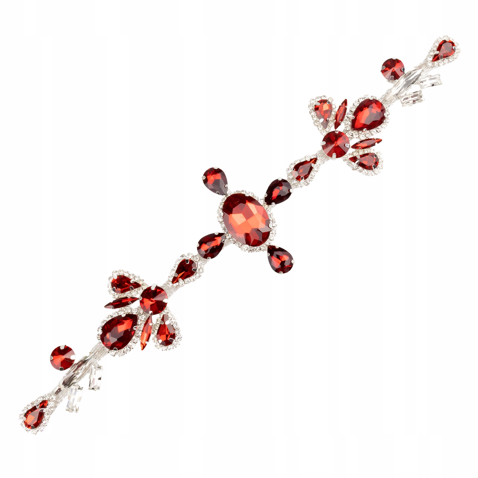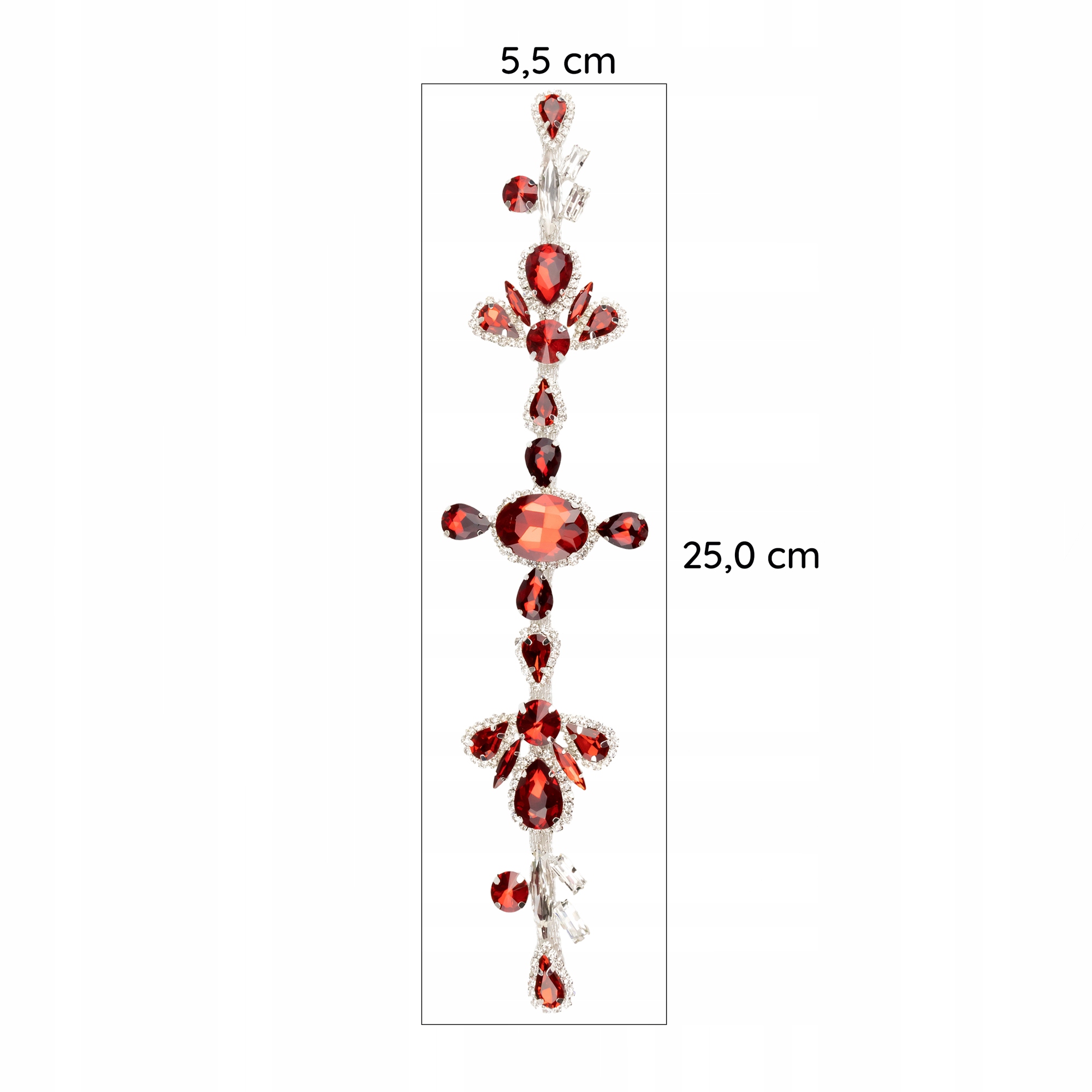 NASZYWKA ozdobny łańcuszek czerwone cyrkonie pasek