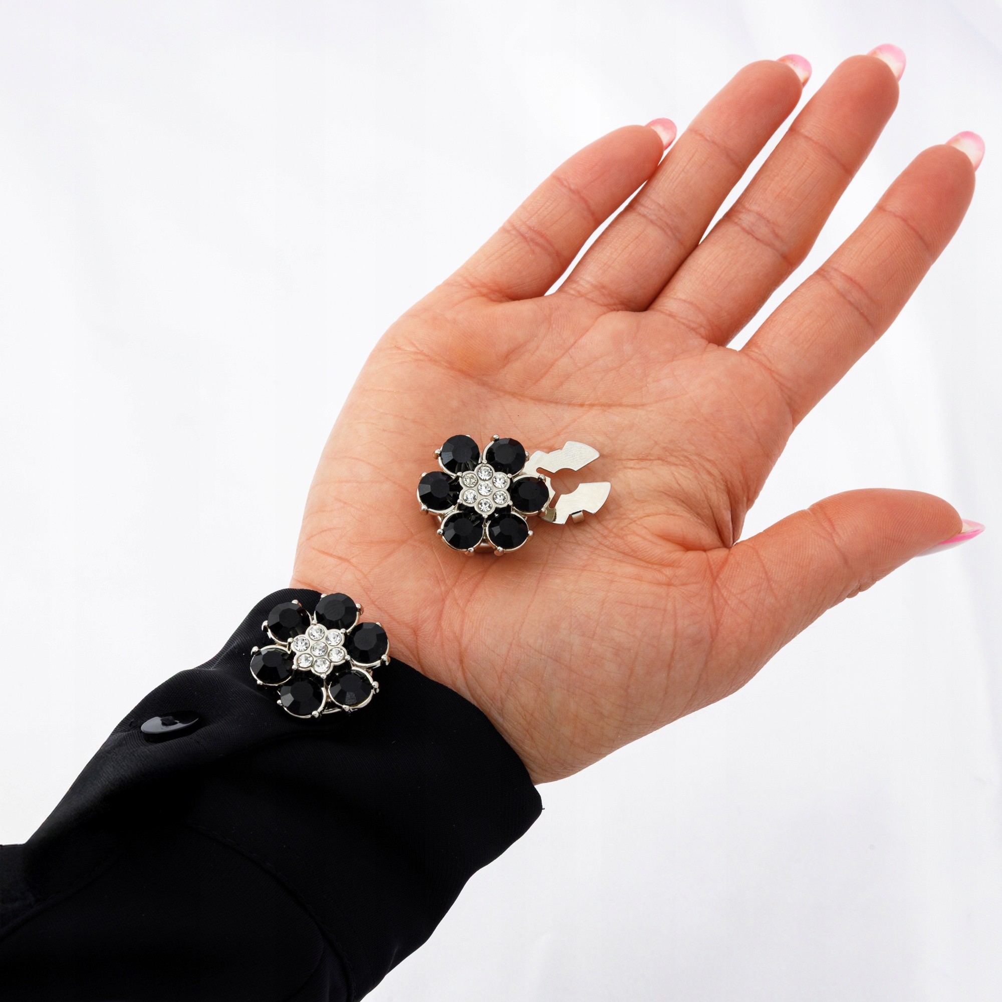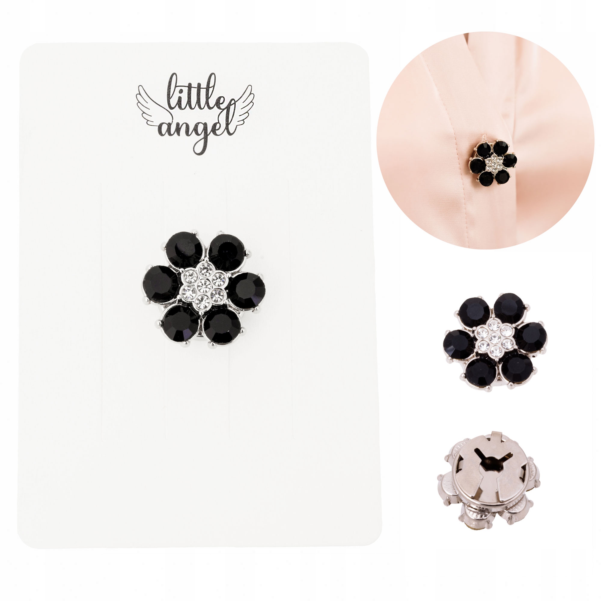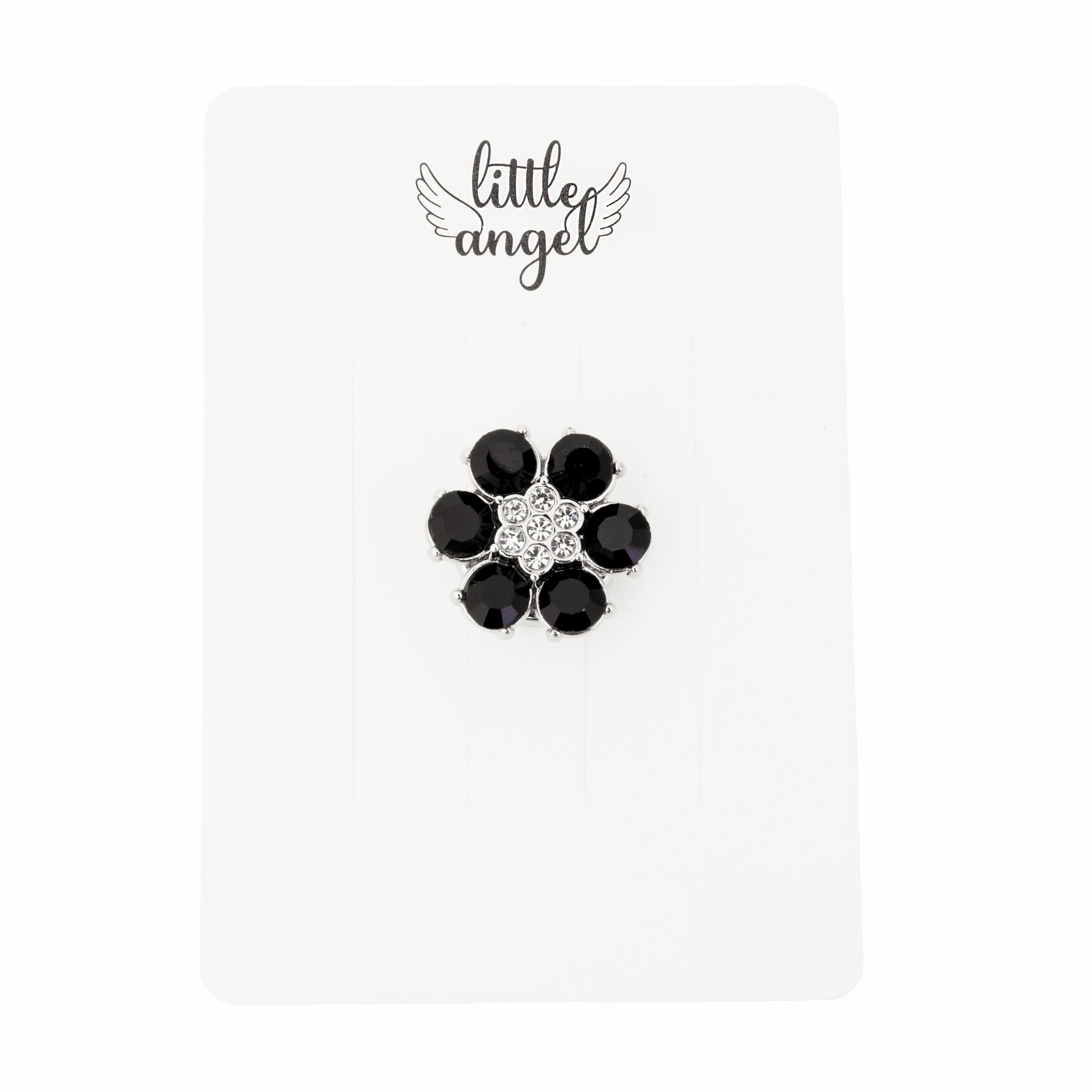 Ozdobna nakładka na guzik Little Angel w kształcie kwiatu z czarnymi kryształkami i błyszczącymi cyrkoniami to elegancki sposób, by dodać ubraniom wyjątkowego charakteru – bez szycia, klejenia i przypinania.
