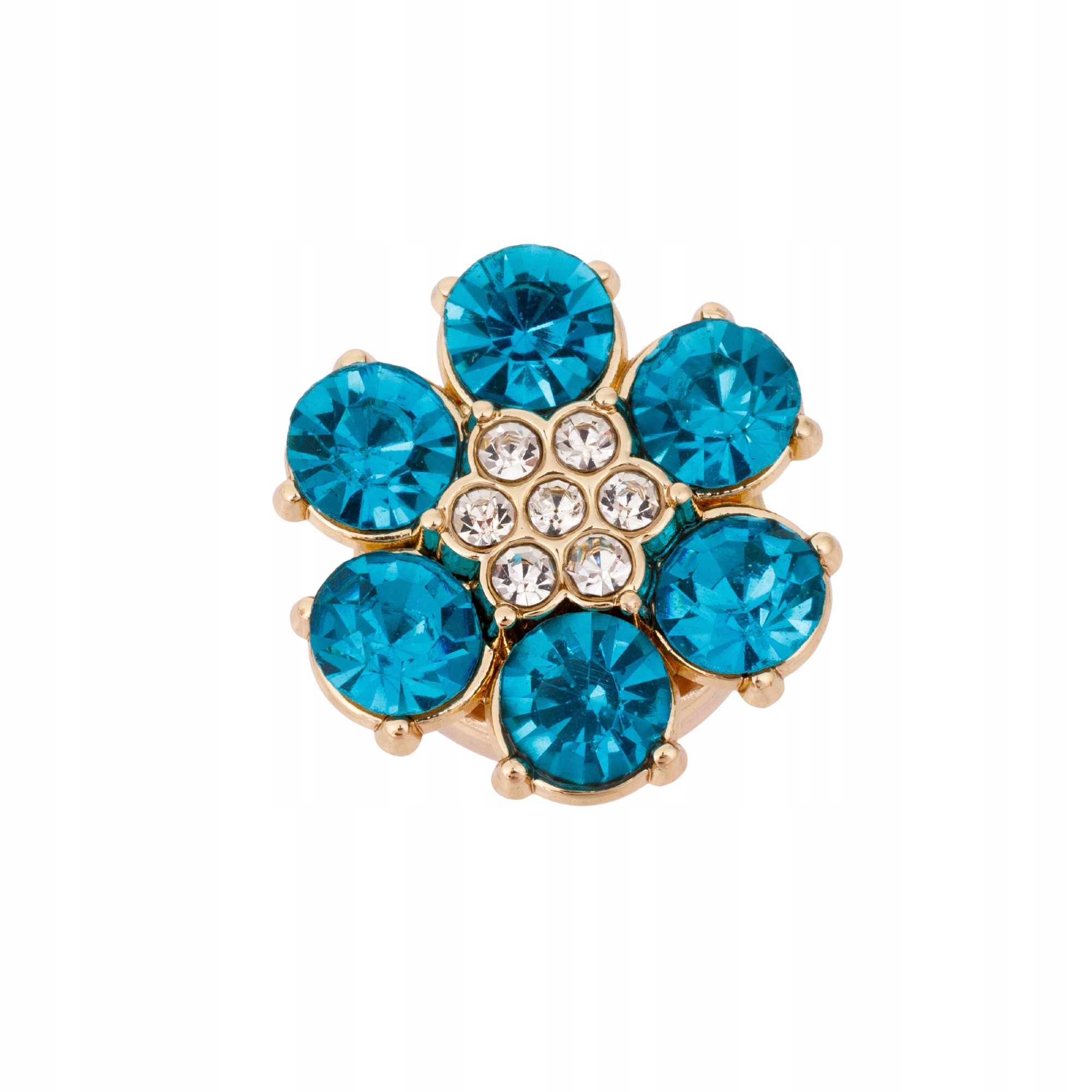 Nakładka na guzik kwiat z niebieskimi kryształkami i cyrkoniami ozdoba