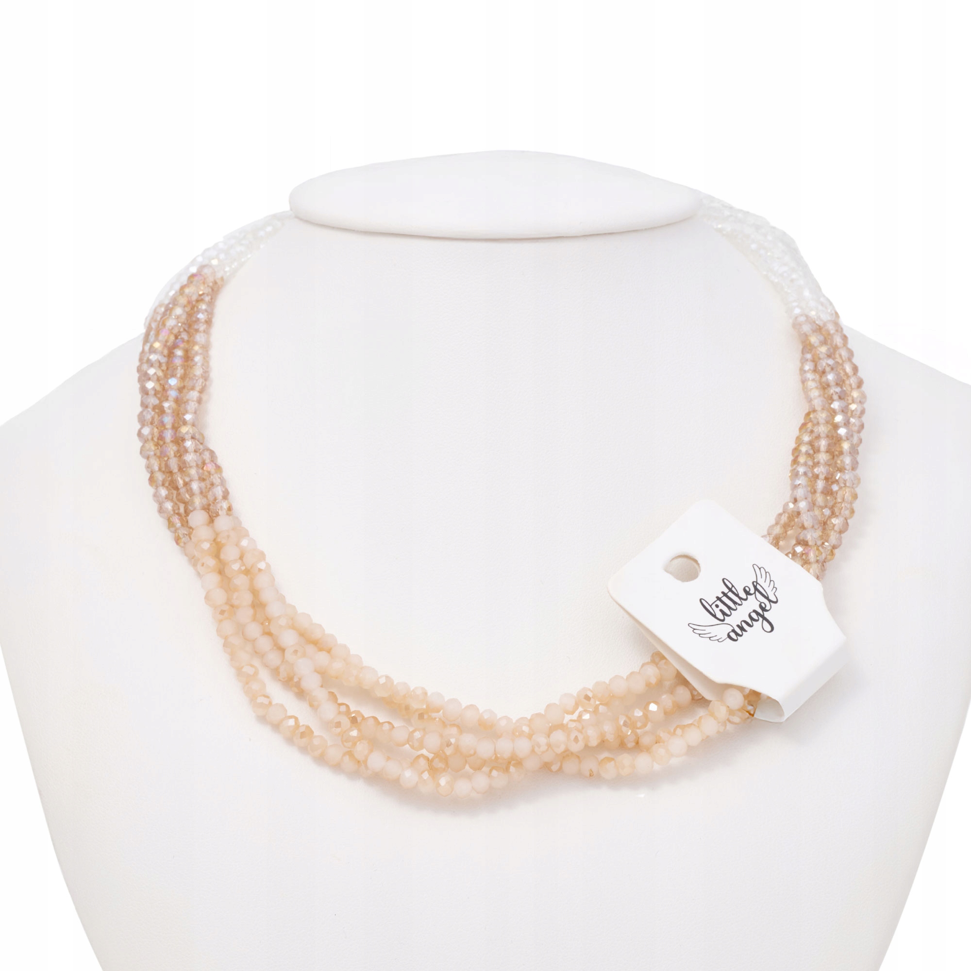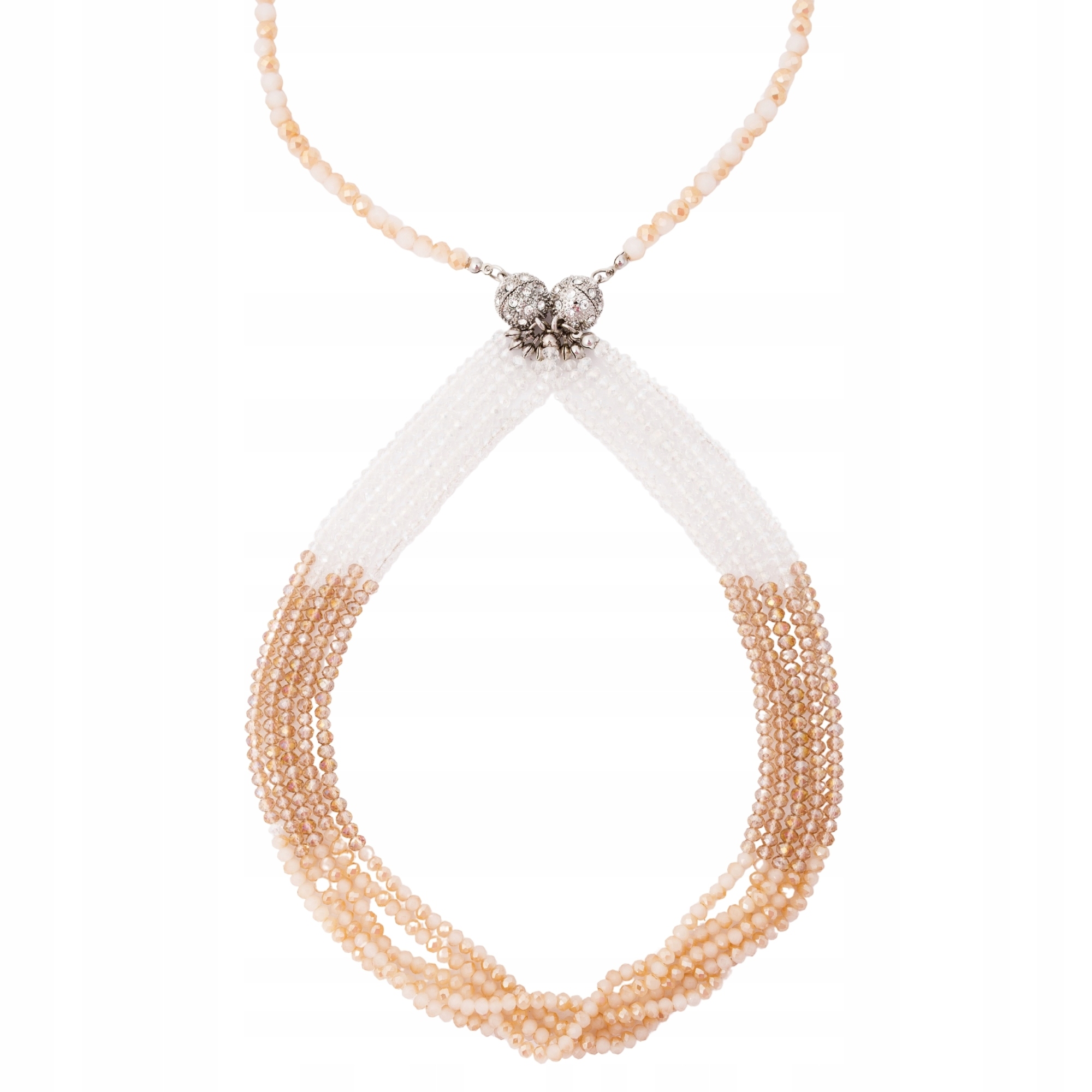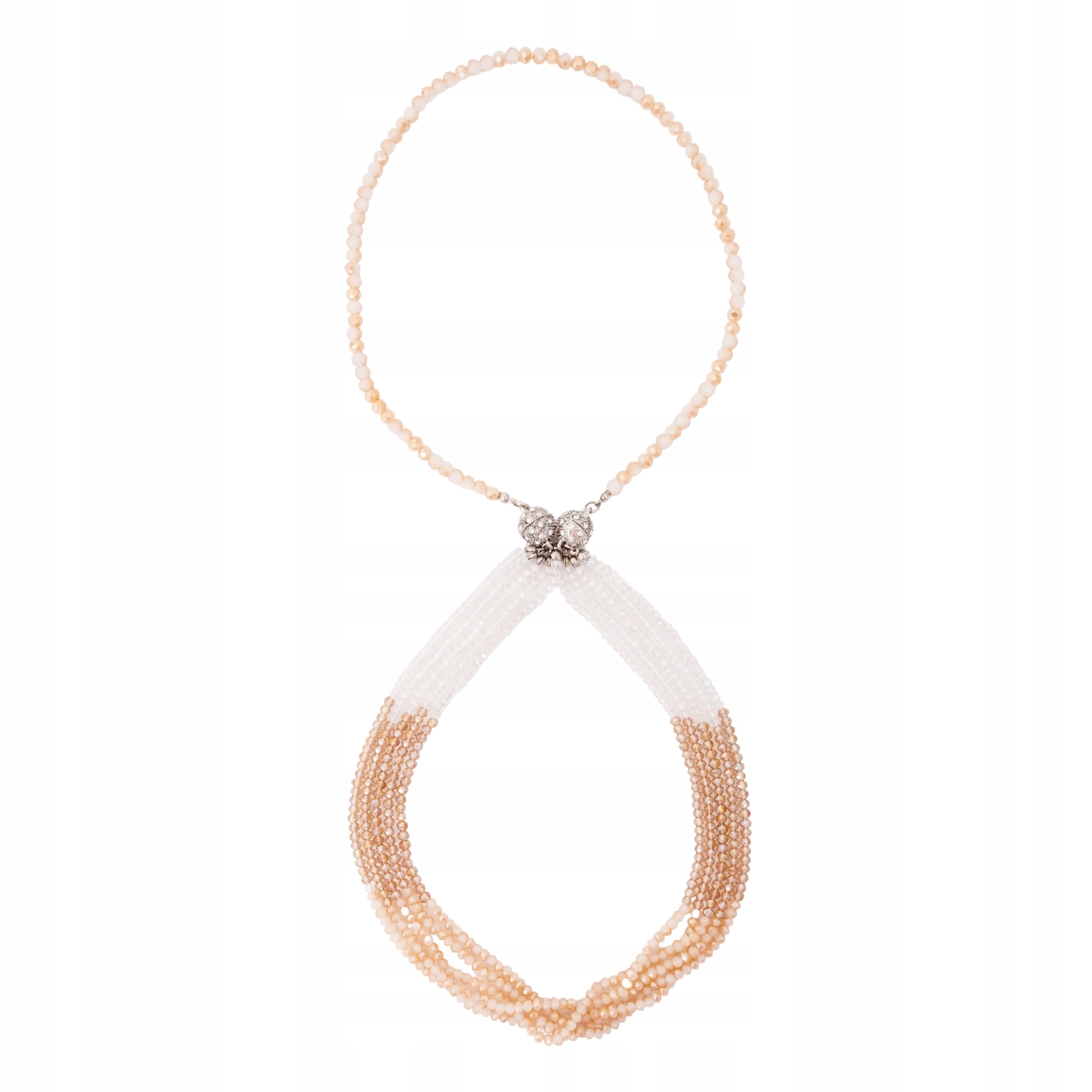 Naszyjnik 2w1 z koralików biało-szampański noś razem lub osobno