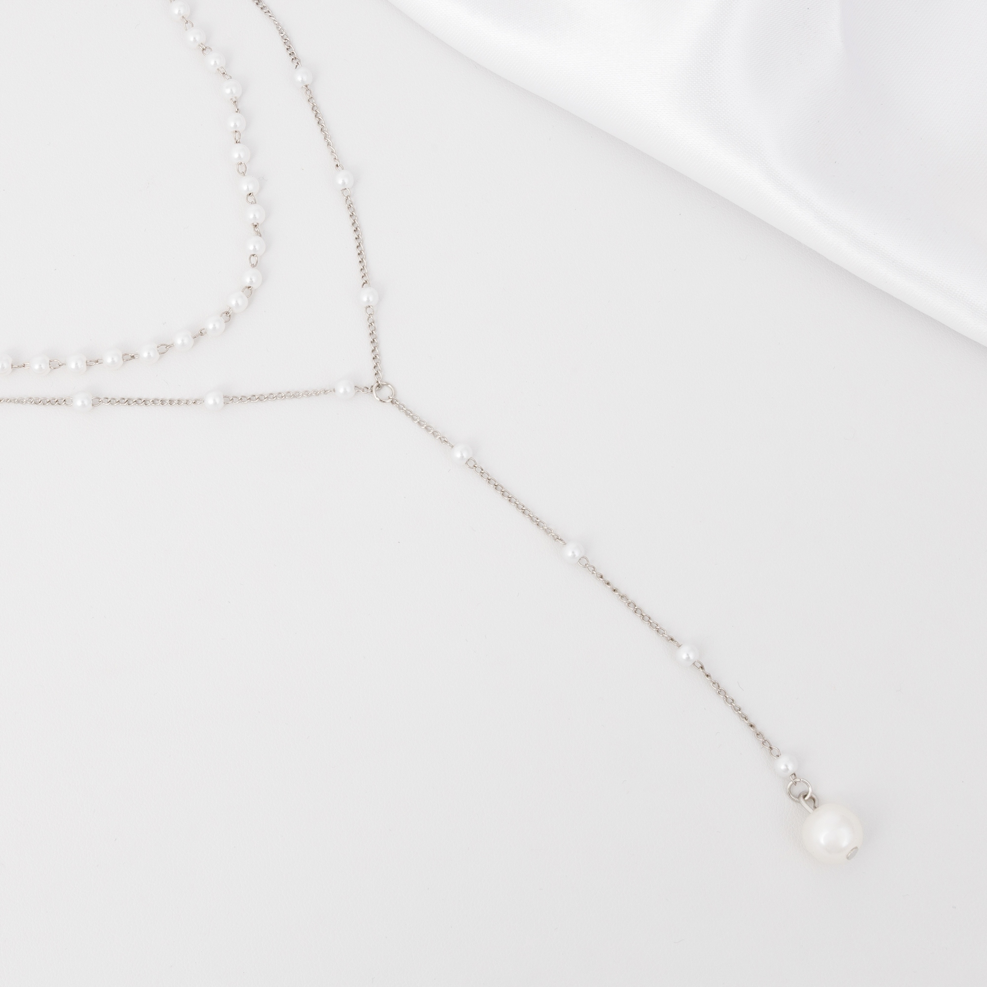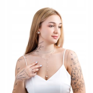 Subtelny i kobiecy naszyjnik marki Little Angel, który doda blasku każdej stylizacji. Model składa się z dwóch delikatnych warstw – krótszej, przypominającej elegancki choker z drobnymi perełkami, oraz dłuższej, zakończonej zawieszką w formie pojedynczej perły. Całość oparta jest na cienkim srebrnym łańcuszku, co nadaje biżuterii lekkości i nowoczesnego charakteru.