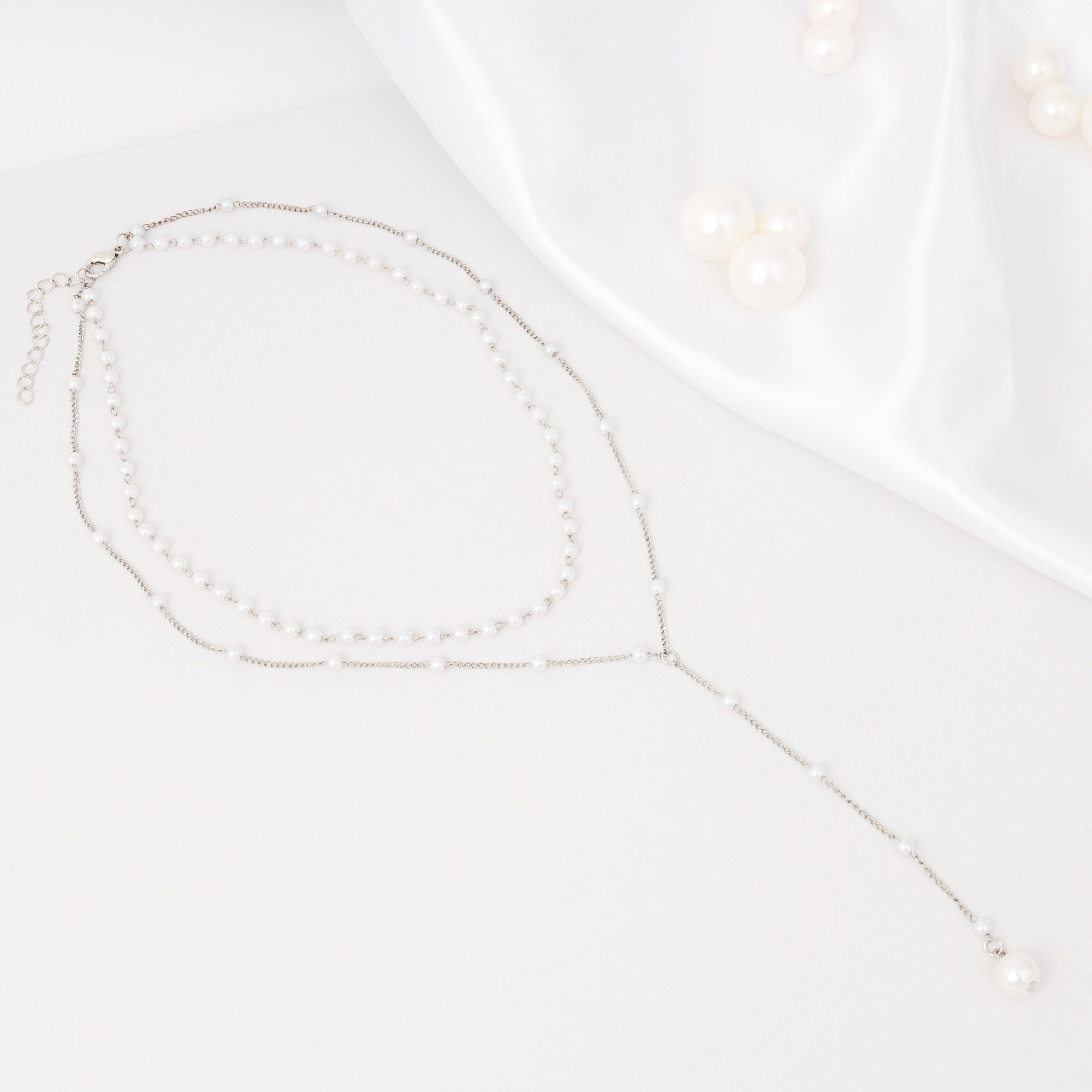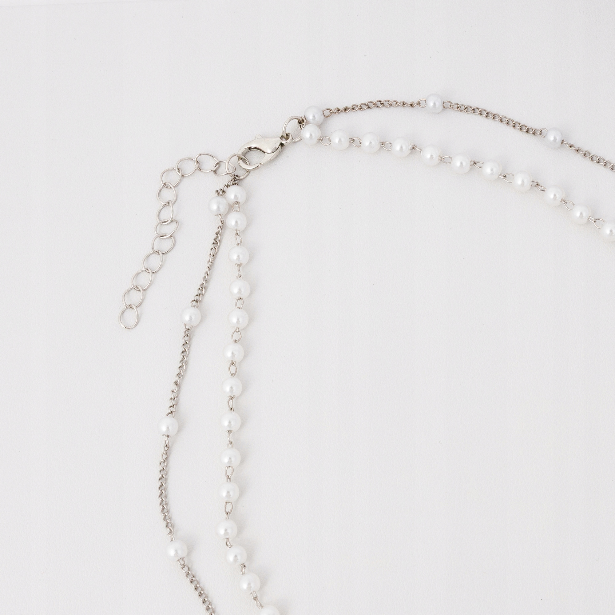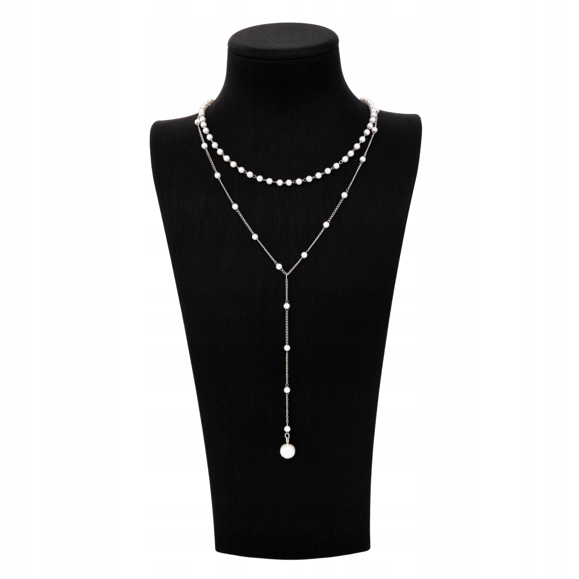 Naszyjnik damski srebrny łańcuszek z perełkami podwójny elegancki choker