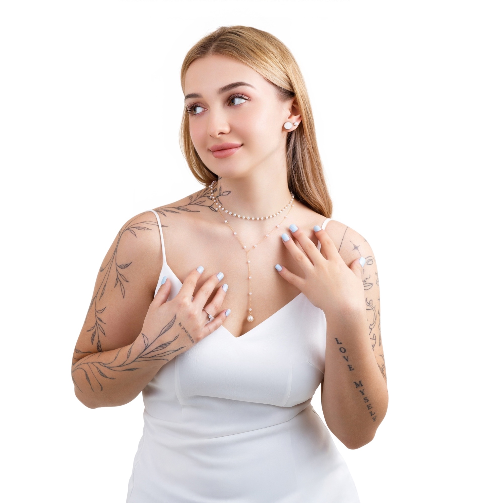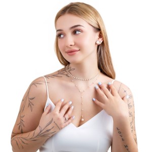 Subtelny i kobiecy naszyjnik marki Little Angel, który doda blasku każdej stylizacji. Model składa się z dwóch delikatnych warstw – krótszej, przypominającej elegancki choker z drobnymi perełkami, oraz dłuższej, zakończonej zawieszką w formie pojedynczej perły. Całość oparta jest na cienkim złotym łańcuszku, co nadaje biżuterii lekkości i nowoczesnego charakteru.