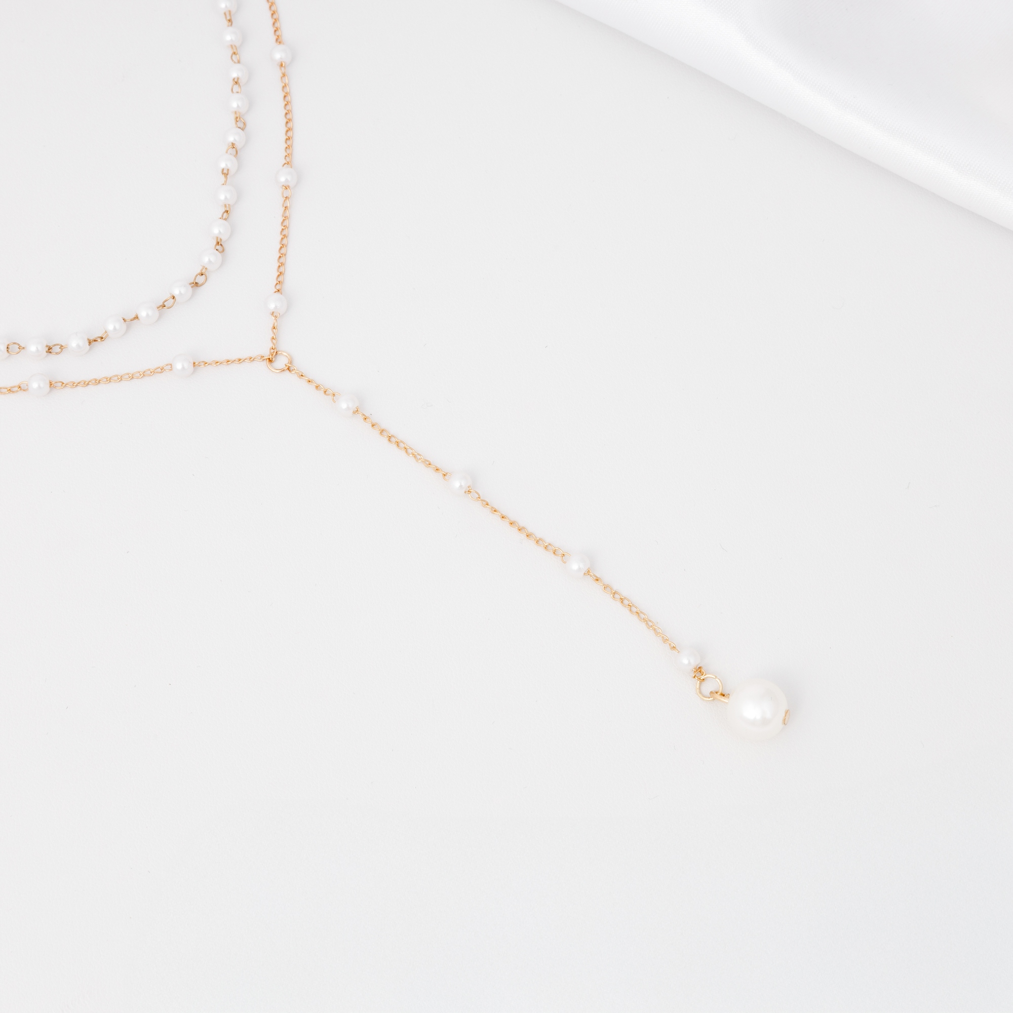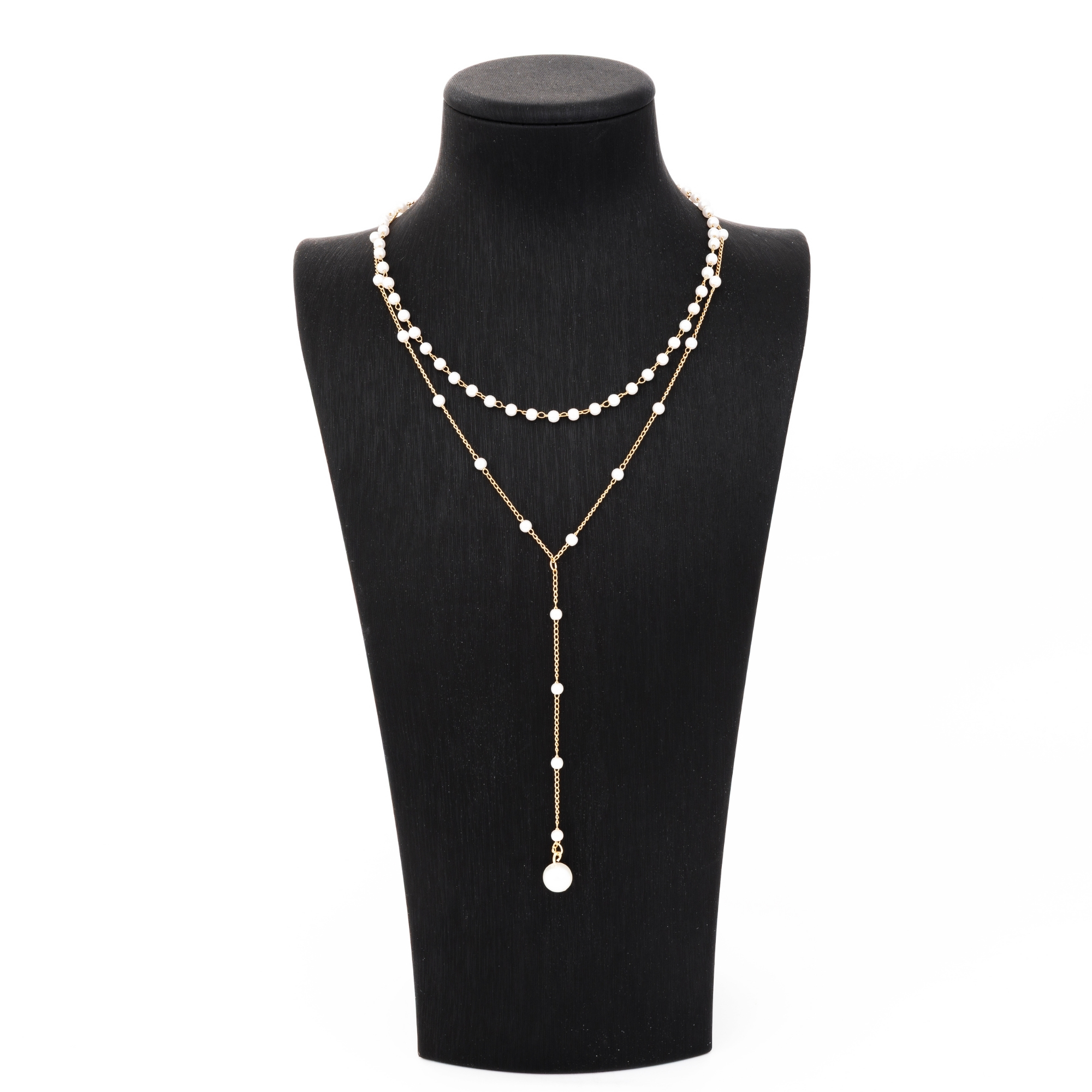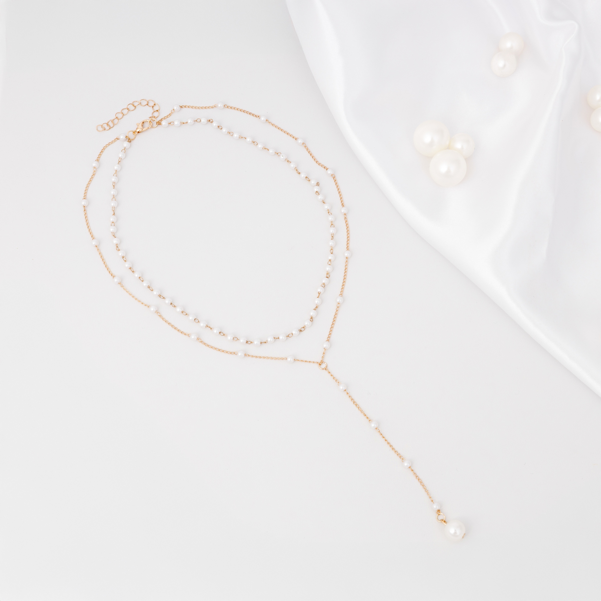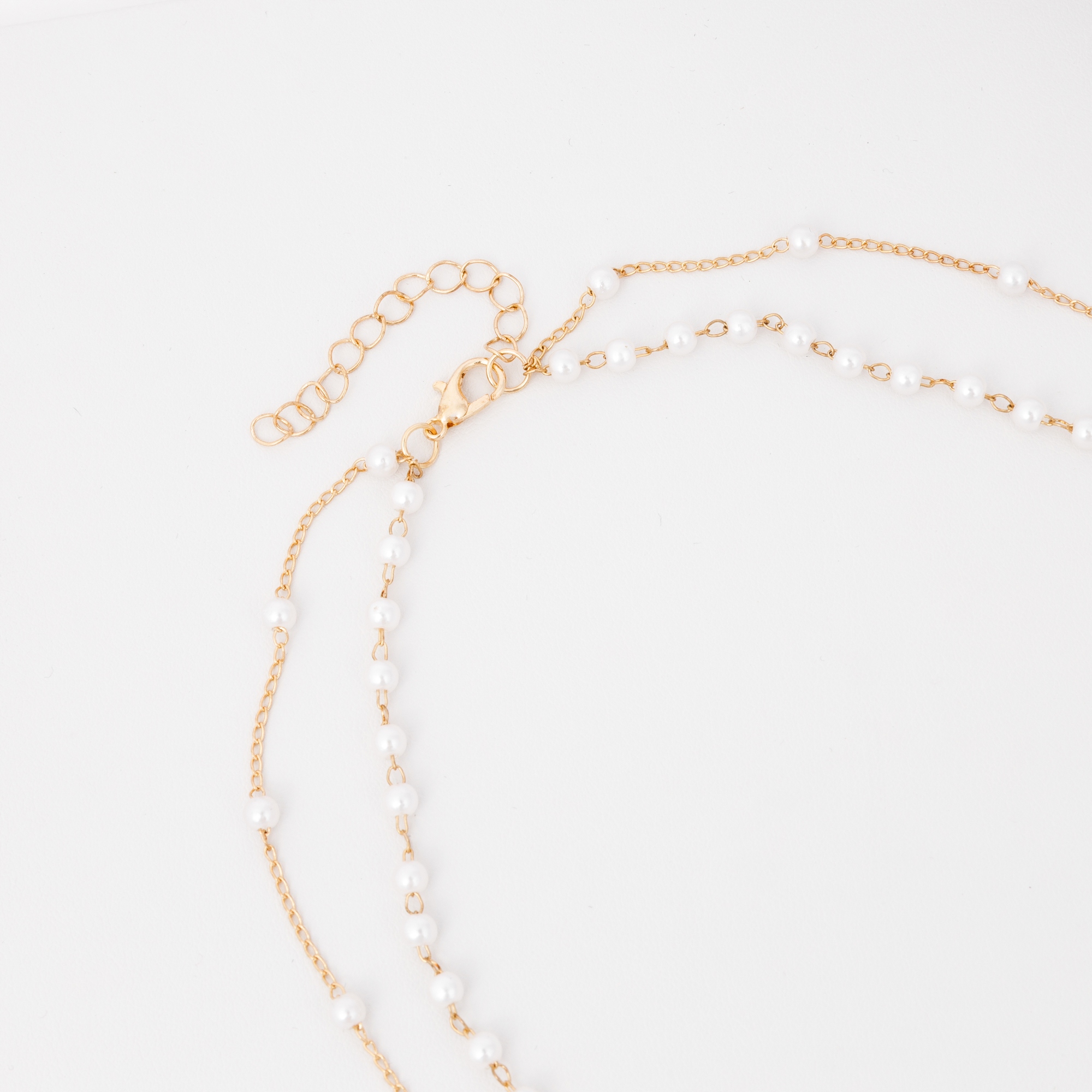 Naszyjnik damski złoty łańcuszek z perełkami podwójny elegancki choker