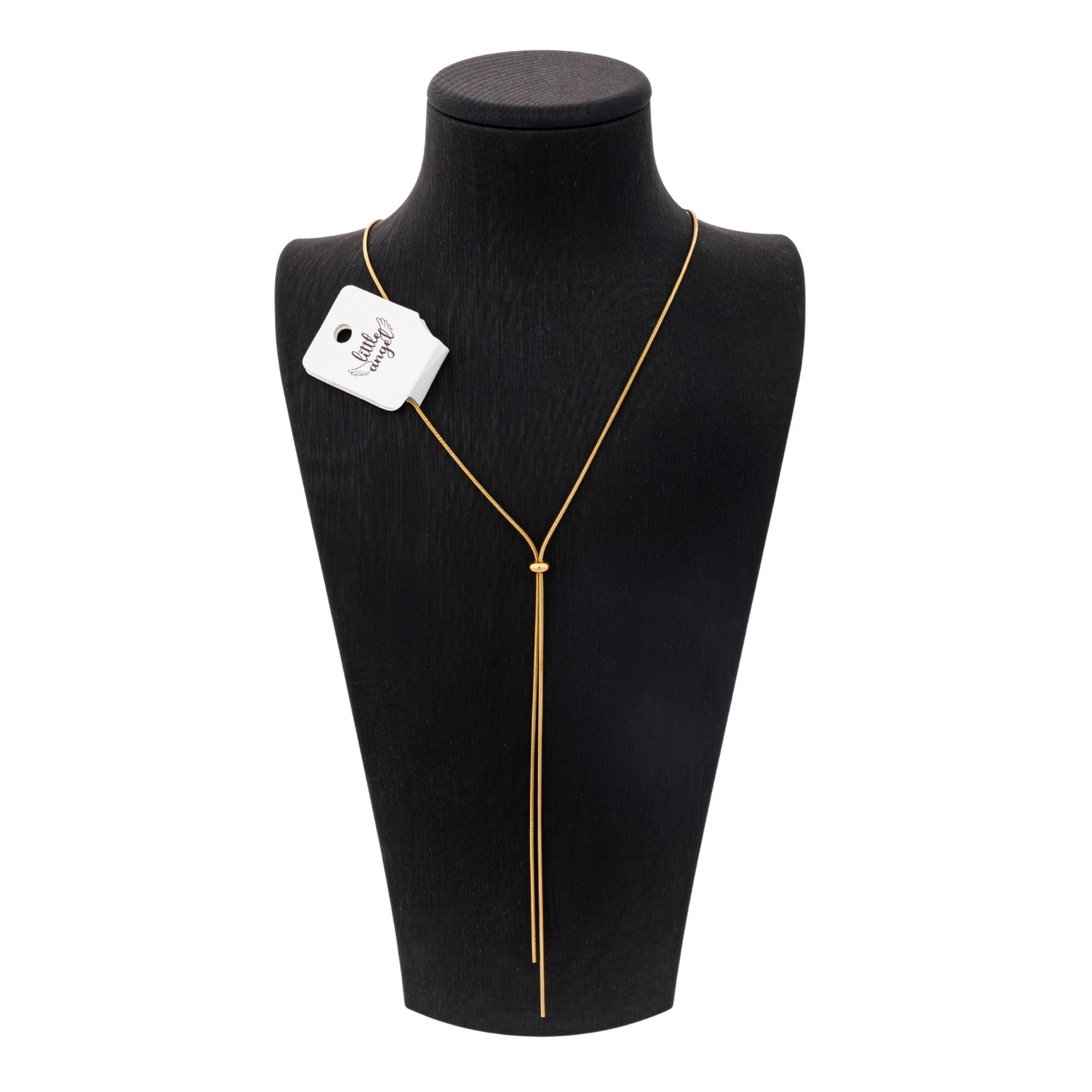 Ten delikatny model w kolorze złota zachwyca prostą formą i eleganckim designem. Regulowana długość pozwala dopasować go do każdej stylizacji – zarówno do codziennych koszul i sukienek, jak i wieczorowych kreacji.