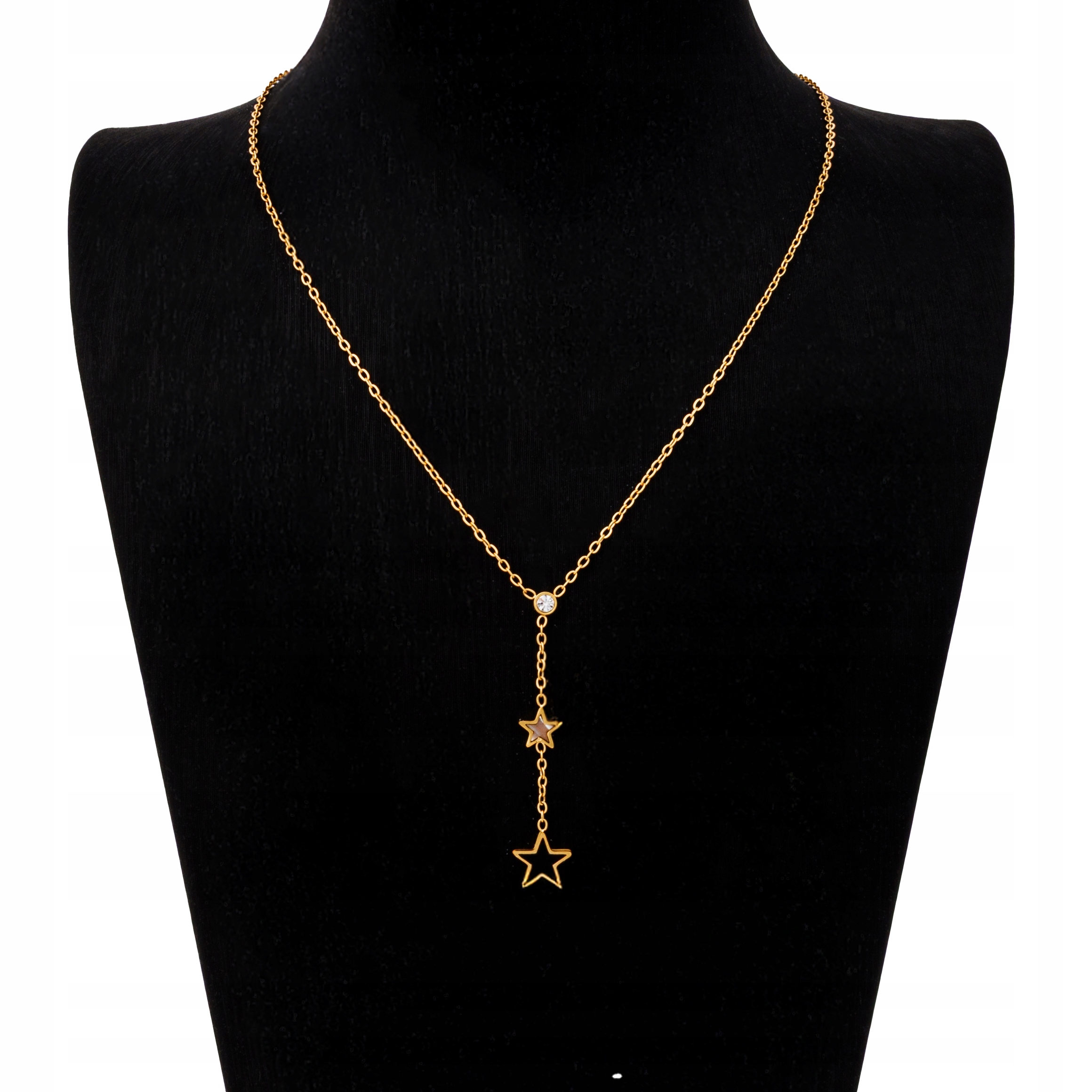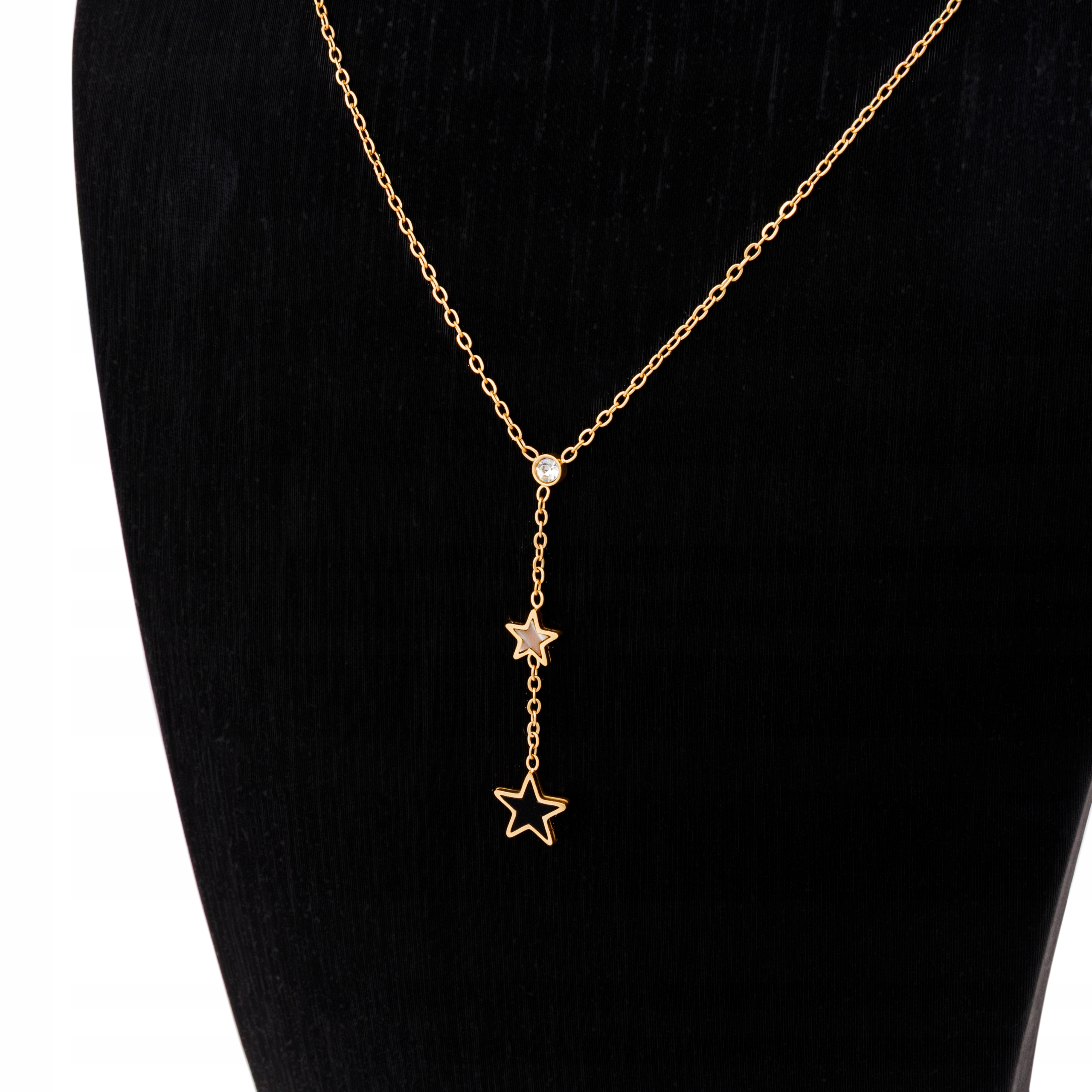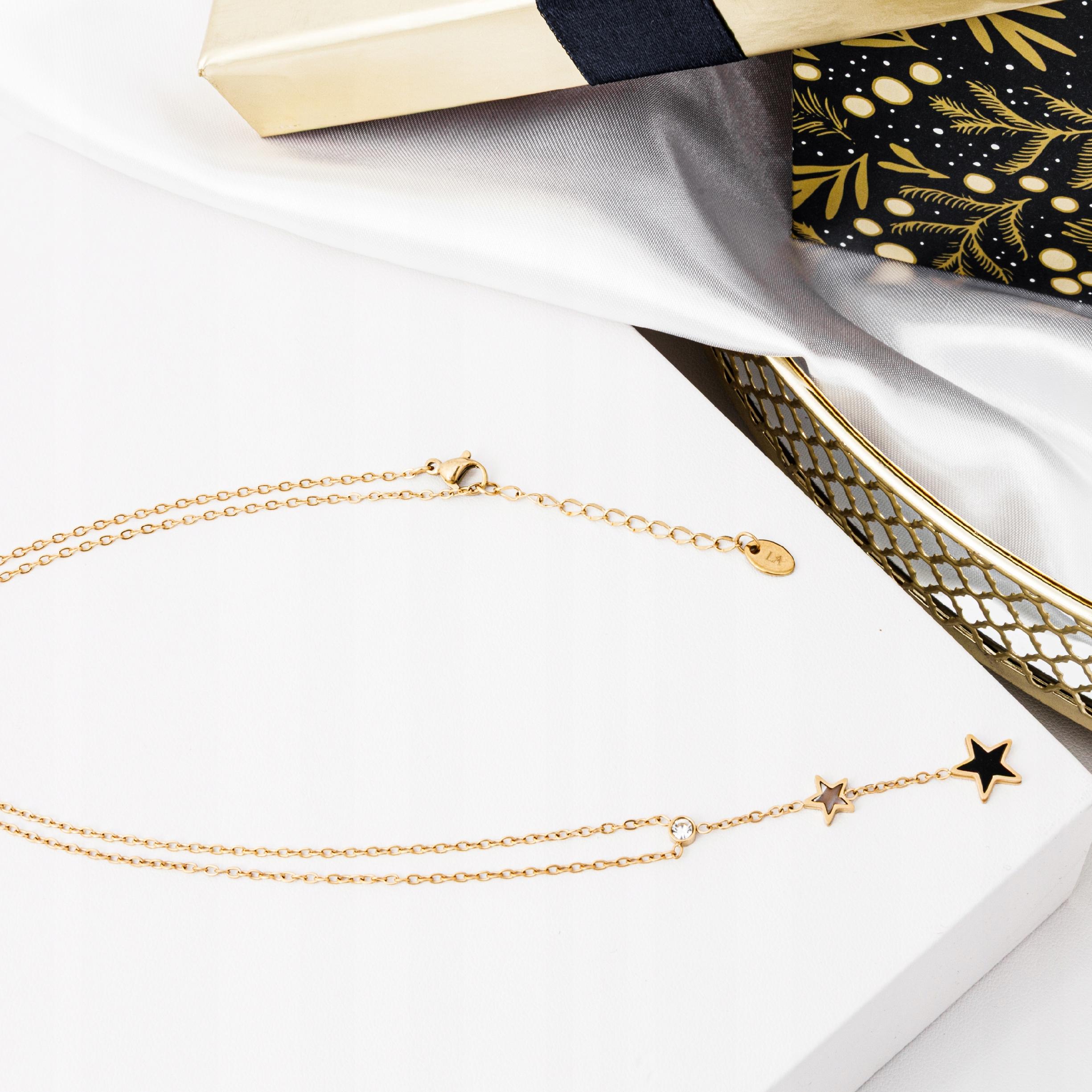Dodaj blasku swojej stylizacji! Ten elegancki naszyjnik wykonany ze stali szlachetnej w złotym kolorze to wyjątkowy dodatek, który podkreśli Twoją kobiecość. Subtelny motyw gwiazdek sprawia, że biżuteria jest delikatna, a jednocześnie przyciągająca wzrok.