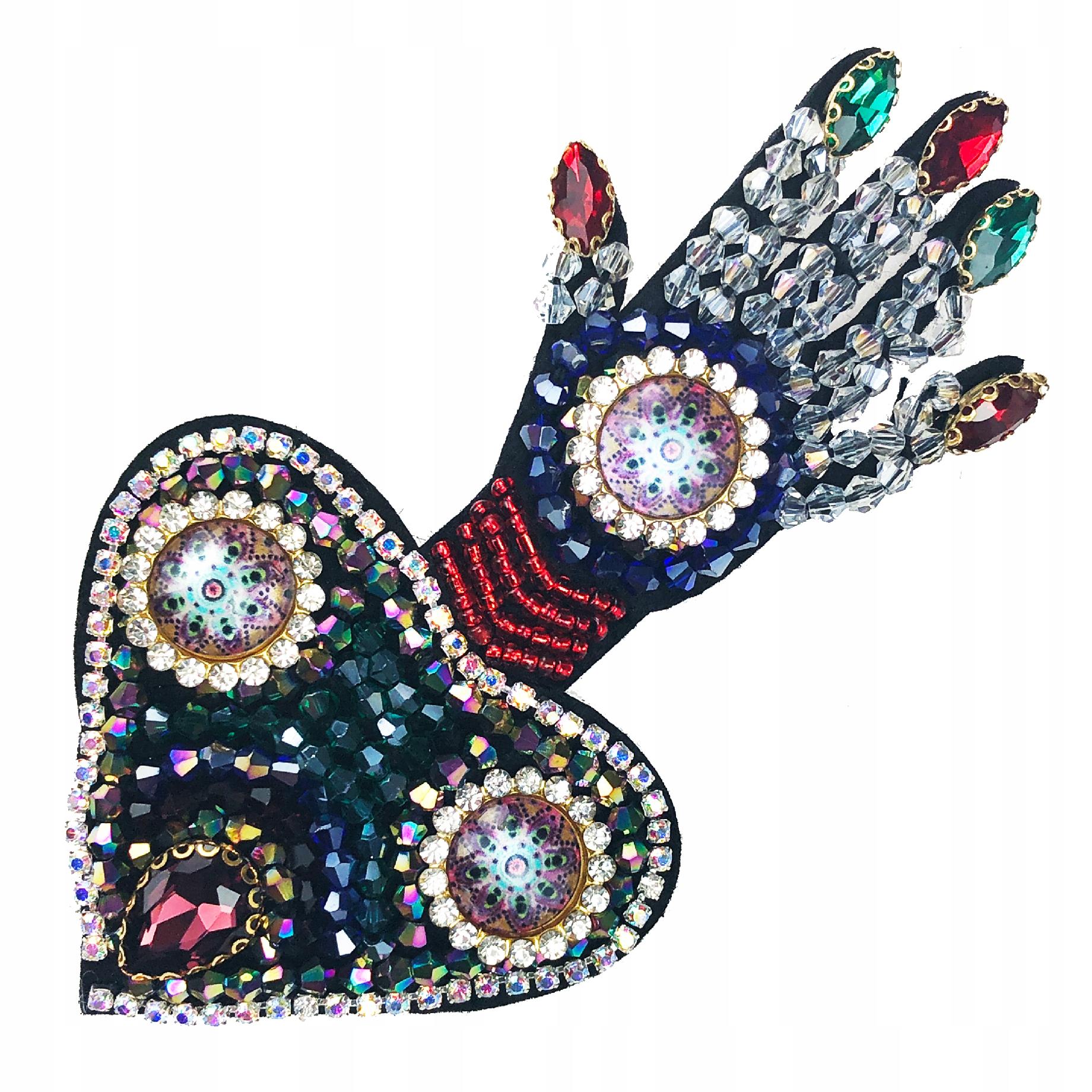 Naszywka cyrkoniowa Serce Ręka Cyrkonie Koraliki