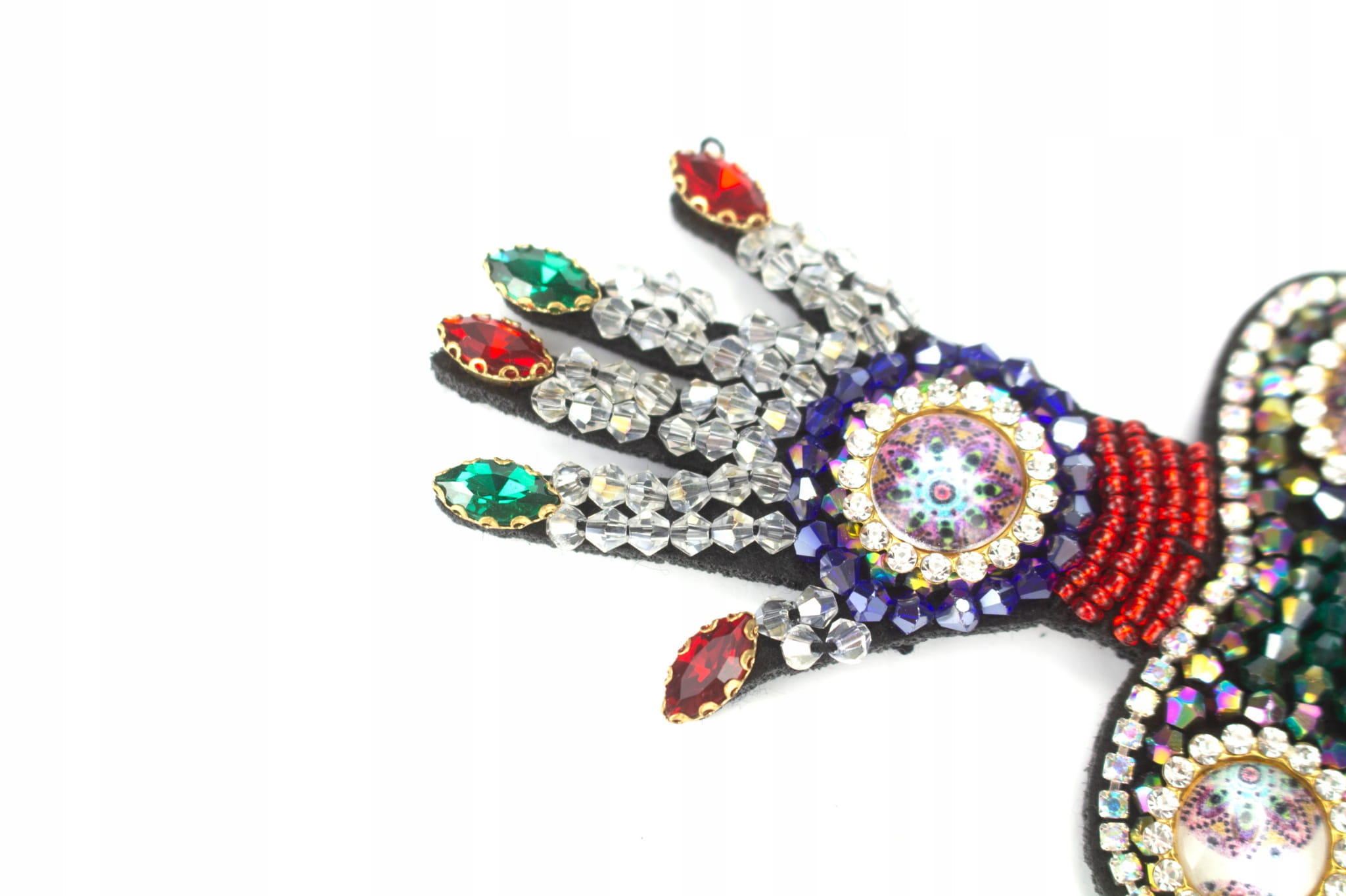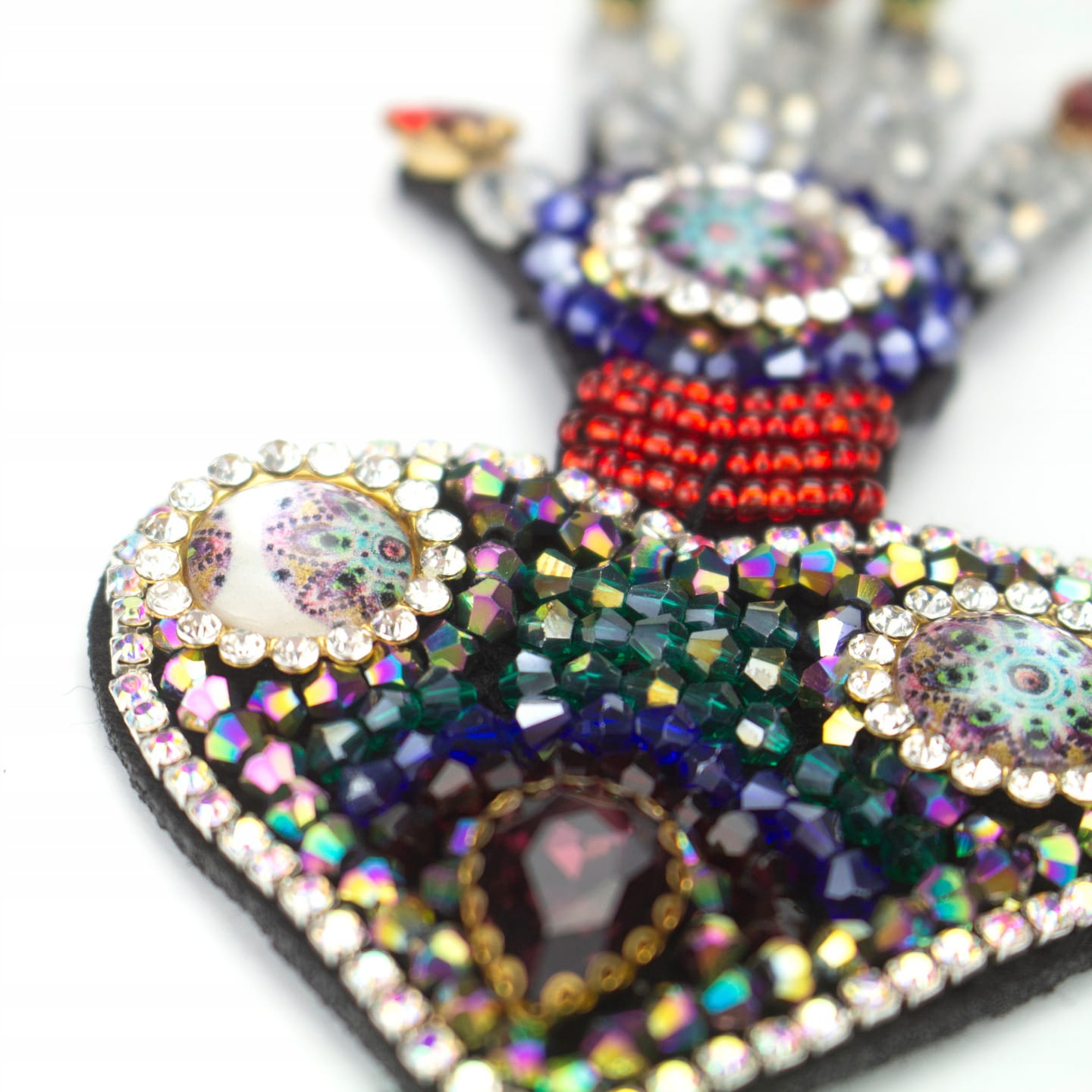 Precyzyjny obrys i przymocowanie cyrkonii i koralików do filcu.