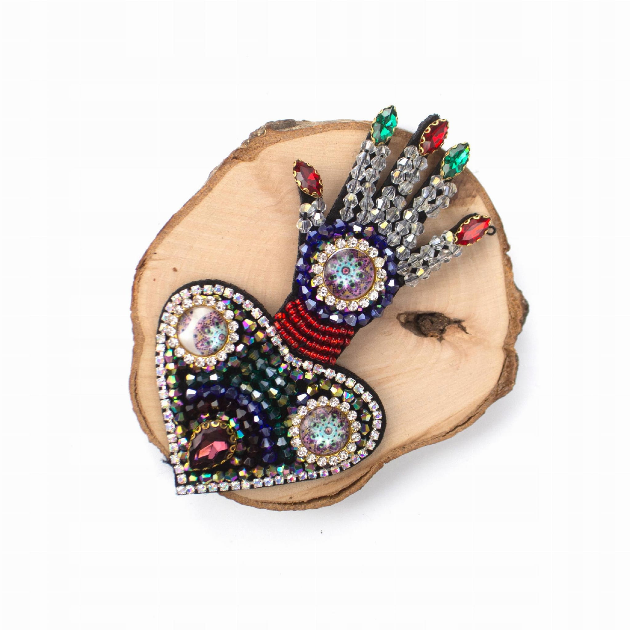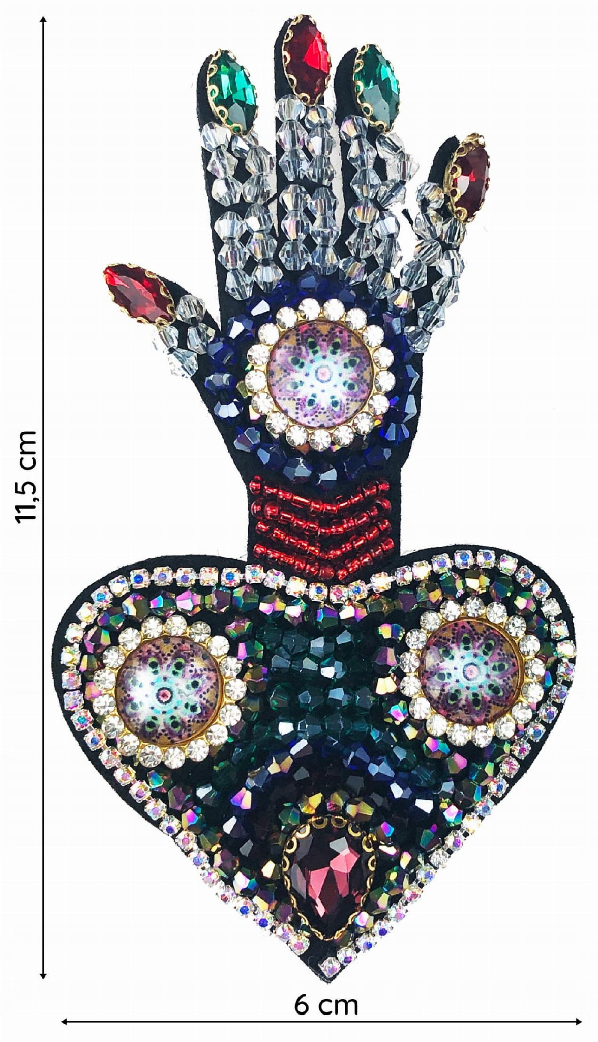 Naszywka cyrkoniowa Ręka Fatimy z sercem