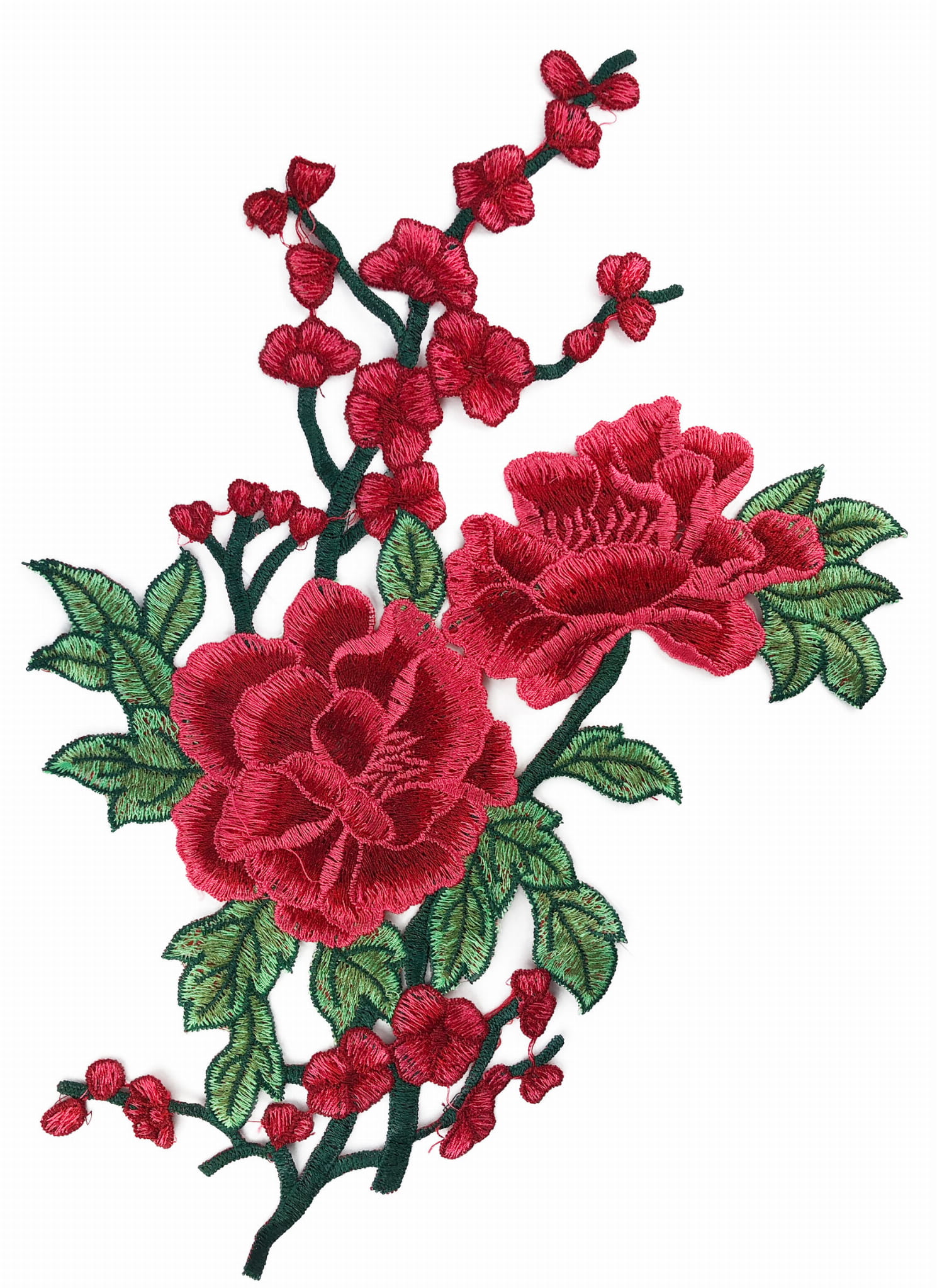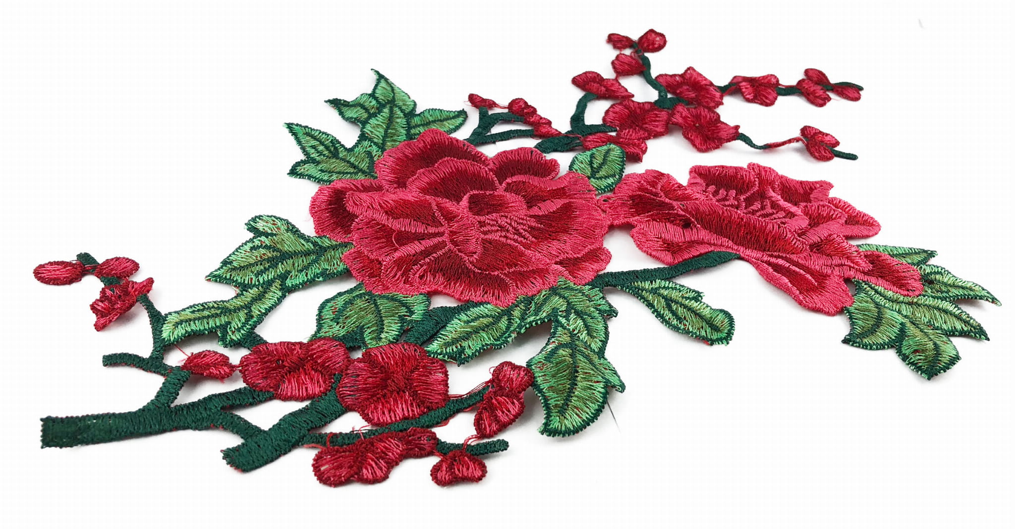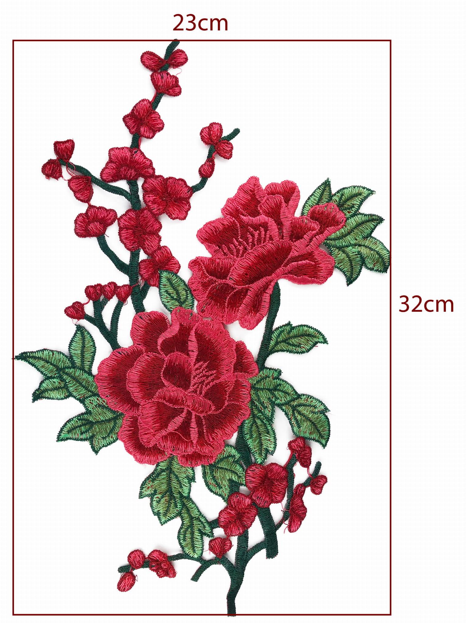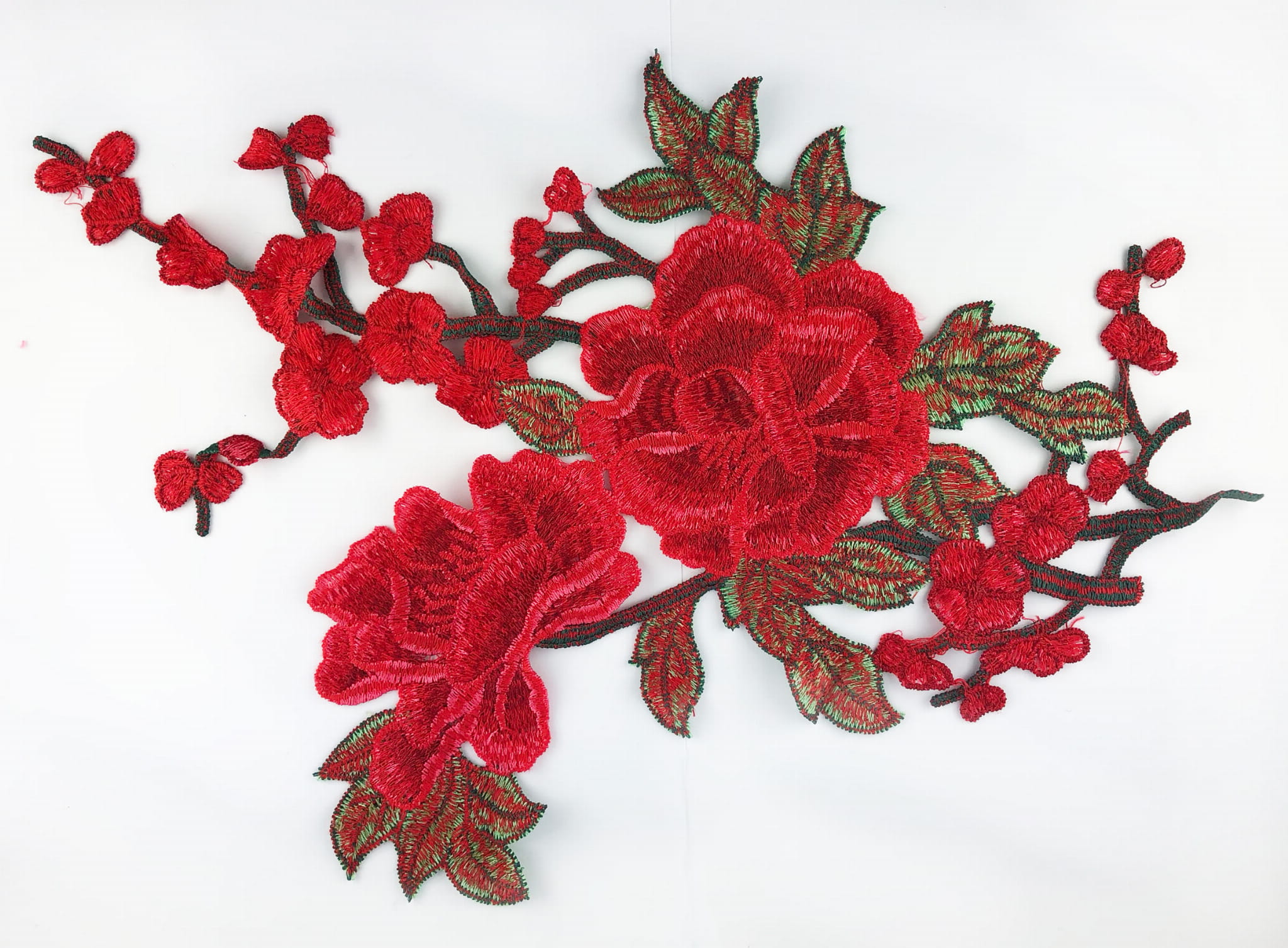 Naszywka czerwona róża haftowana aplikacja kwiat - 32cm