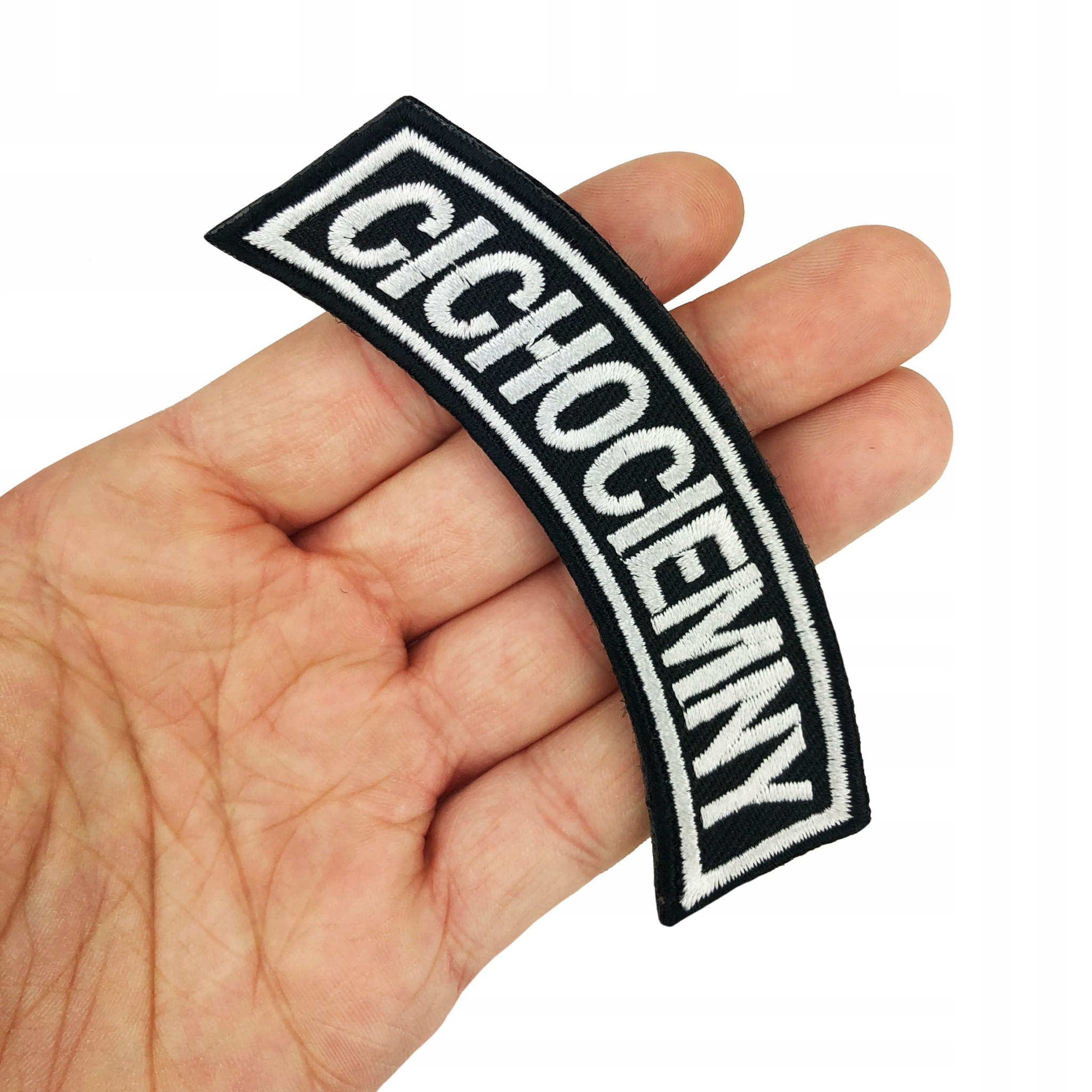 Plakietka z haftowanym napisem