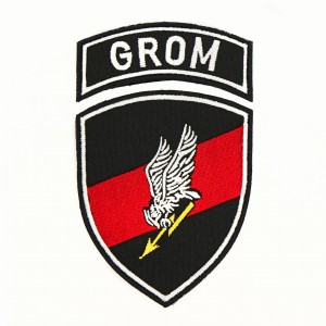 Naszywka jest bardzo starannie wykonana. Na ujęciu przedstawione są równe linie wzoru.