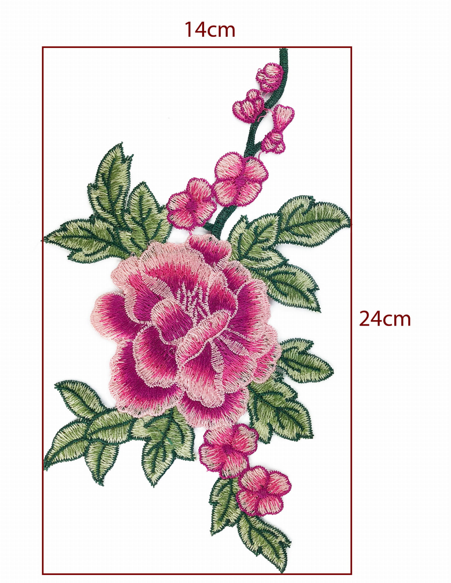 Naszywka różowa róża haft aplikacja KWIAT - 24cm