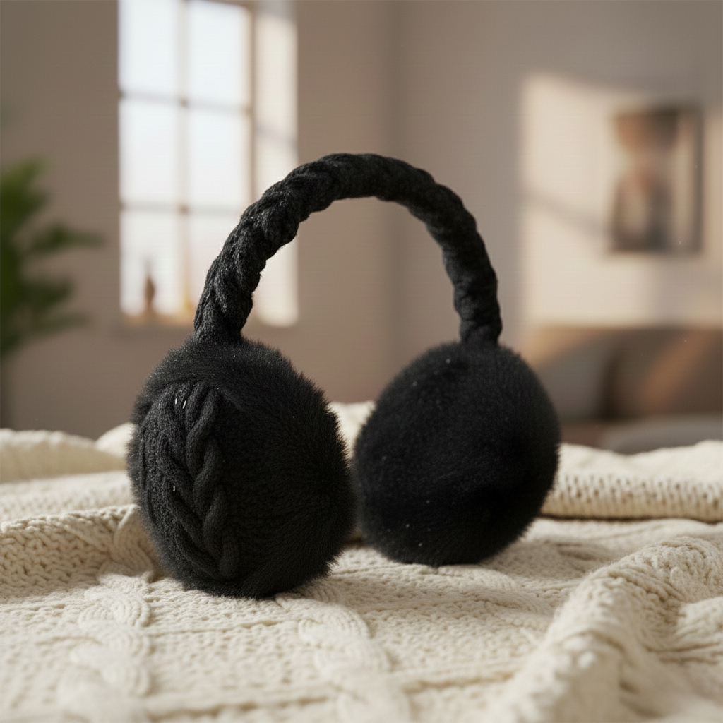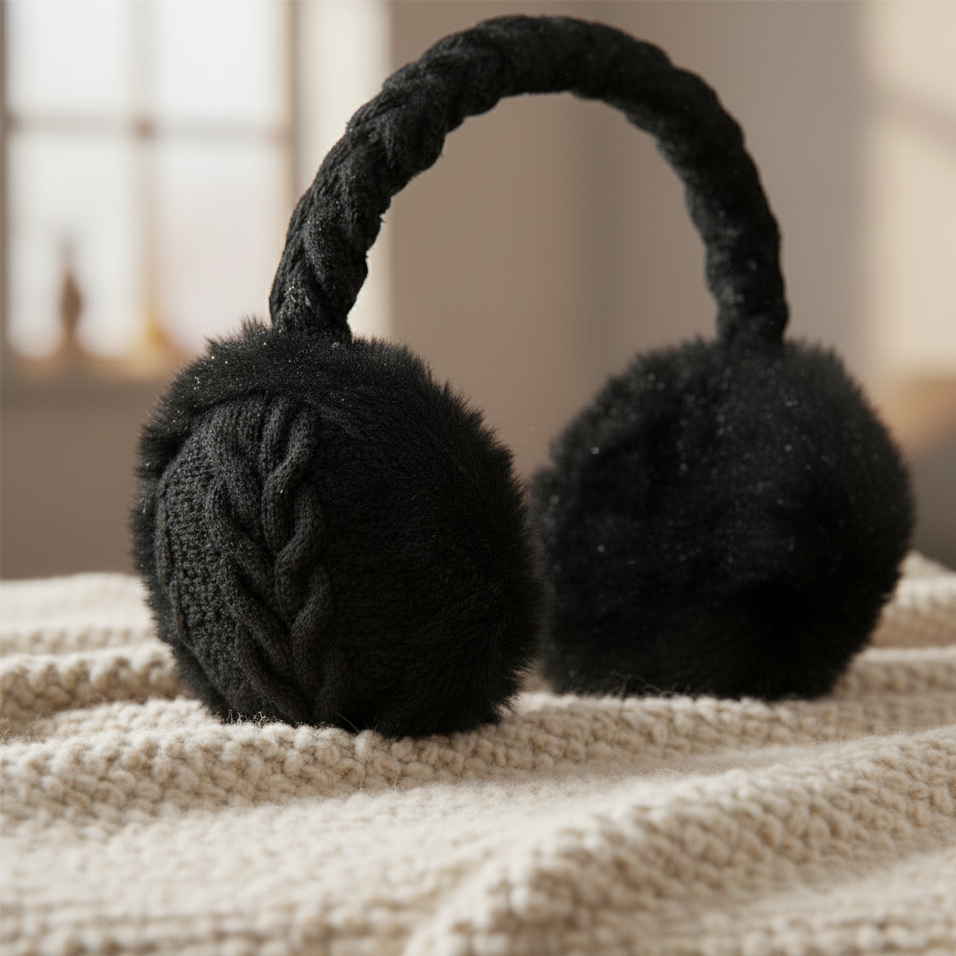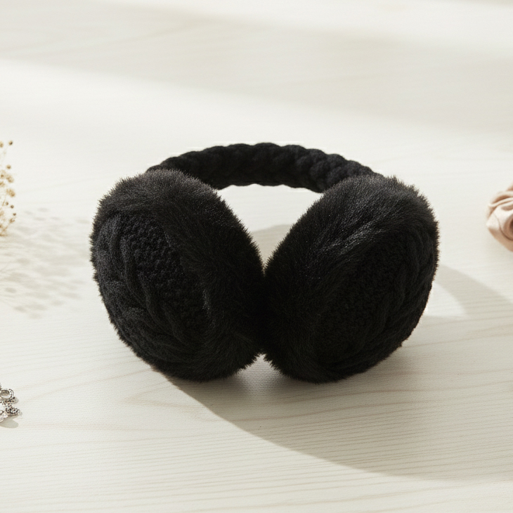 Stylowe i ciepłe nauszniki zimowe z plecionym pałąkiem i futerkowymi osłonami na uszy – idealne na chłodne dni.