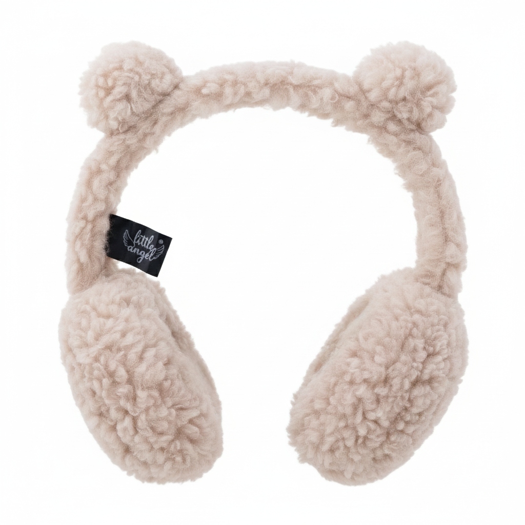 Nauszniki zimowe młodzieżowe z uszkami miś Teddy Beżowe ciepłe miękkie