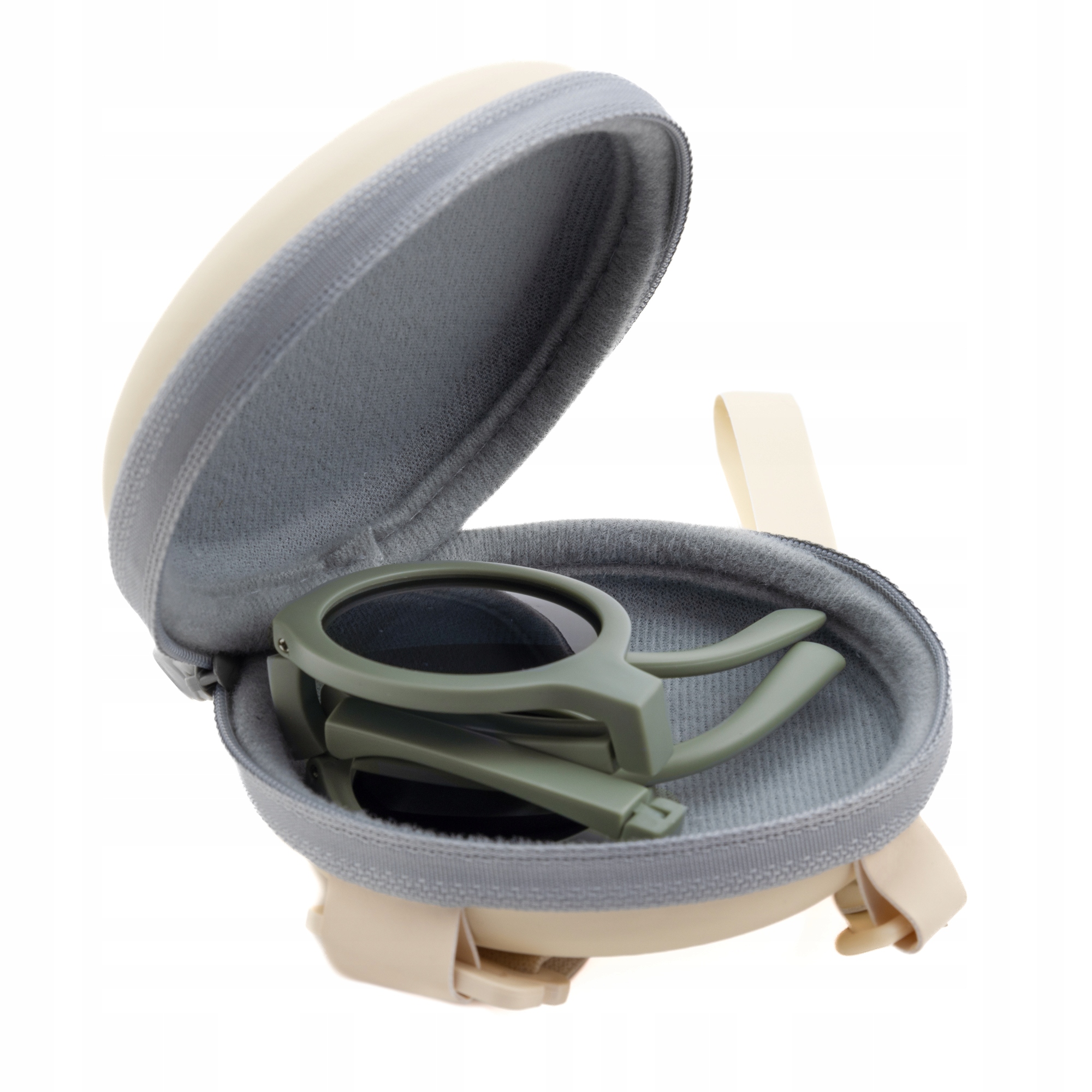 Etui znajduje się w zestawie z okularami, jest małe i posiada dwa uchwyty do trzymania. Można je założyć na nadgarstek jak bransoletkę, dzięki czemu na pewno się nie zgubi.