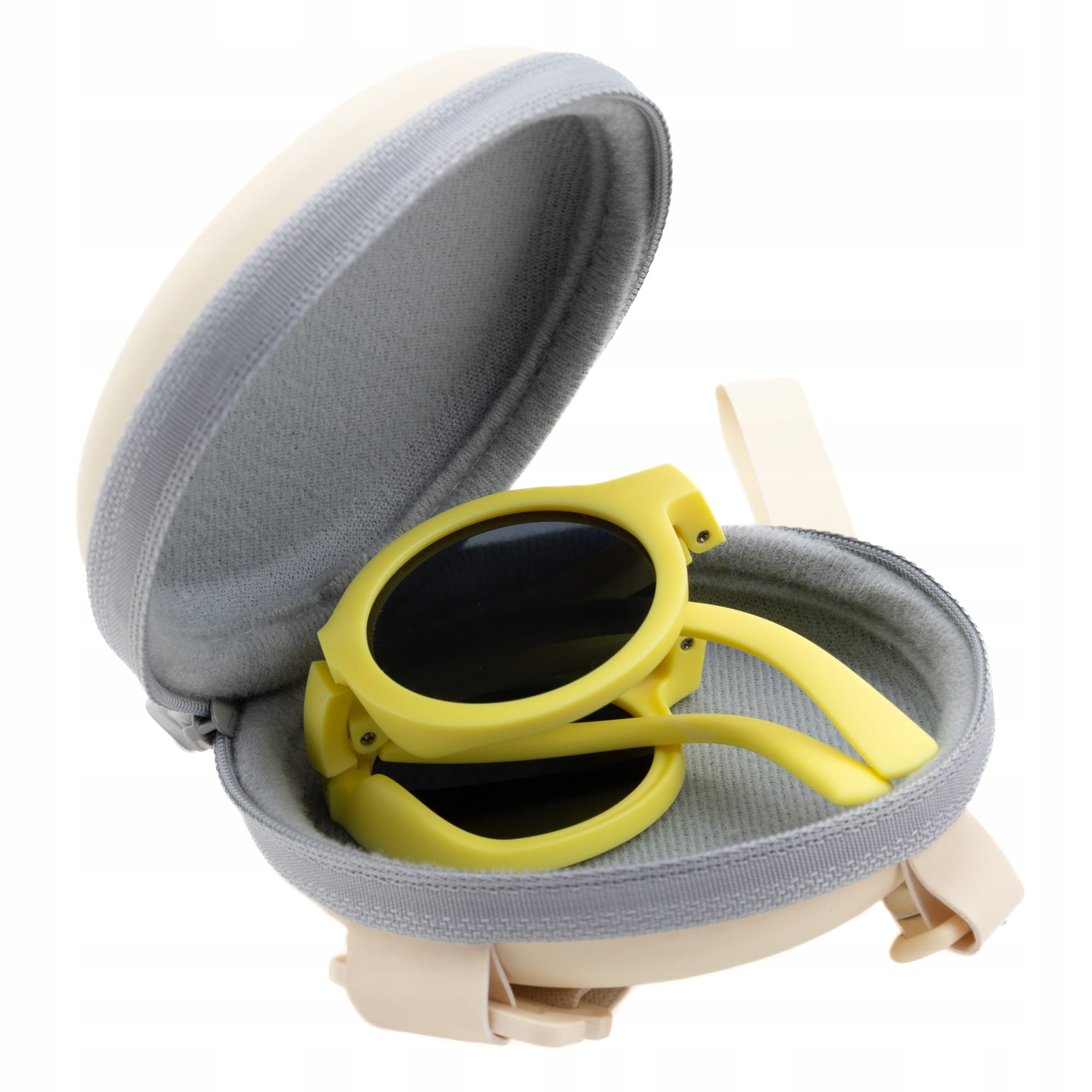 Etui znajduje się w zestawie z okularami, jest małe i posiada dwa uchwyty do trzymania. Można je założyć na nadgarstek jak bransoletkę, dzięki czemu na pewno się nie zgubi.