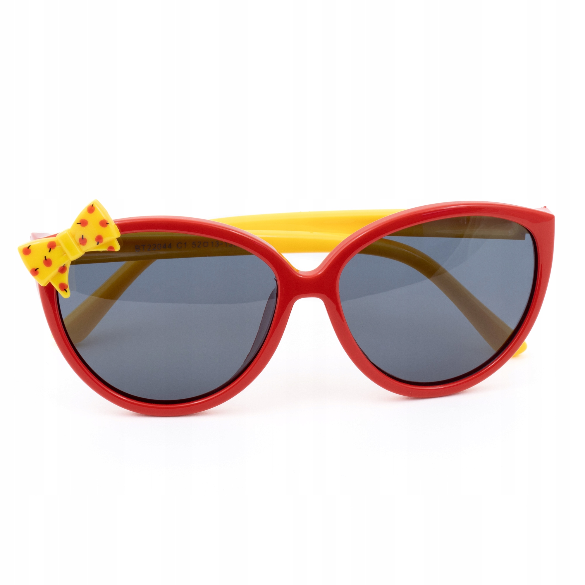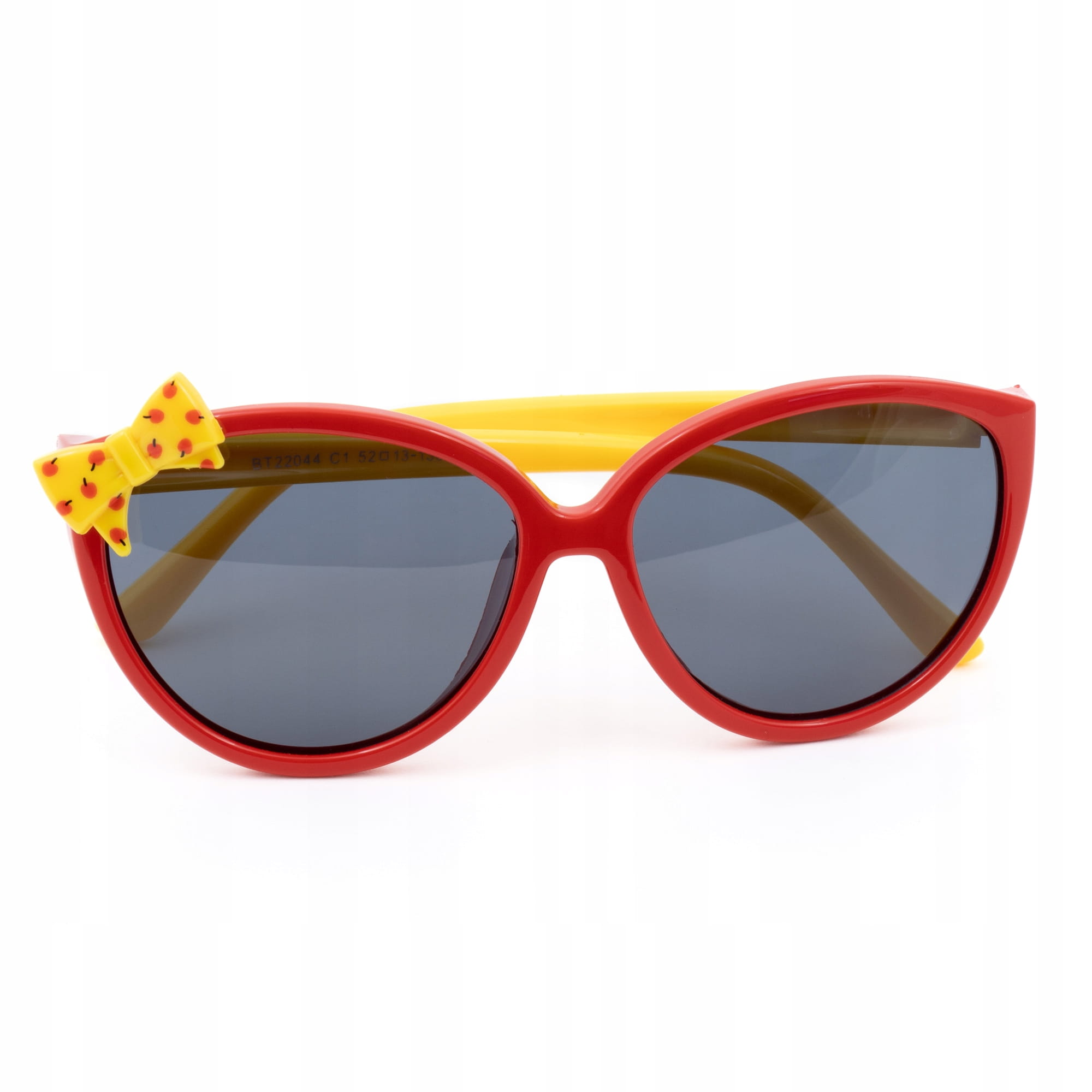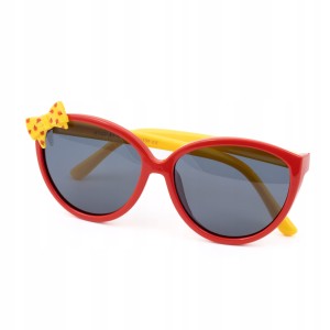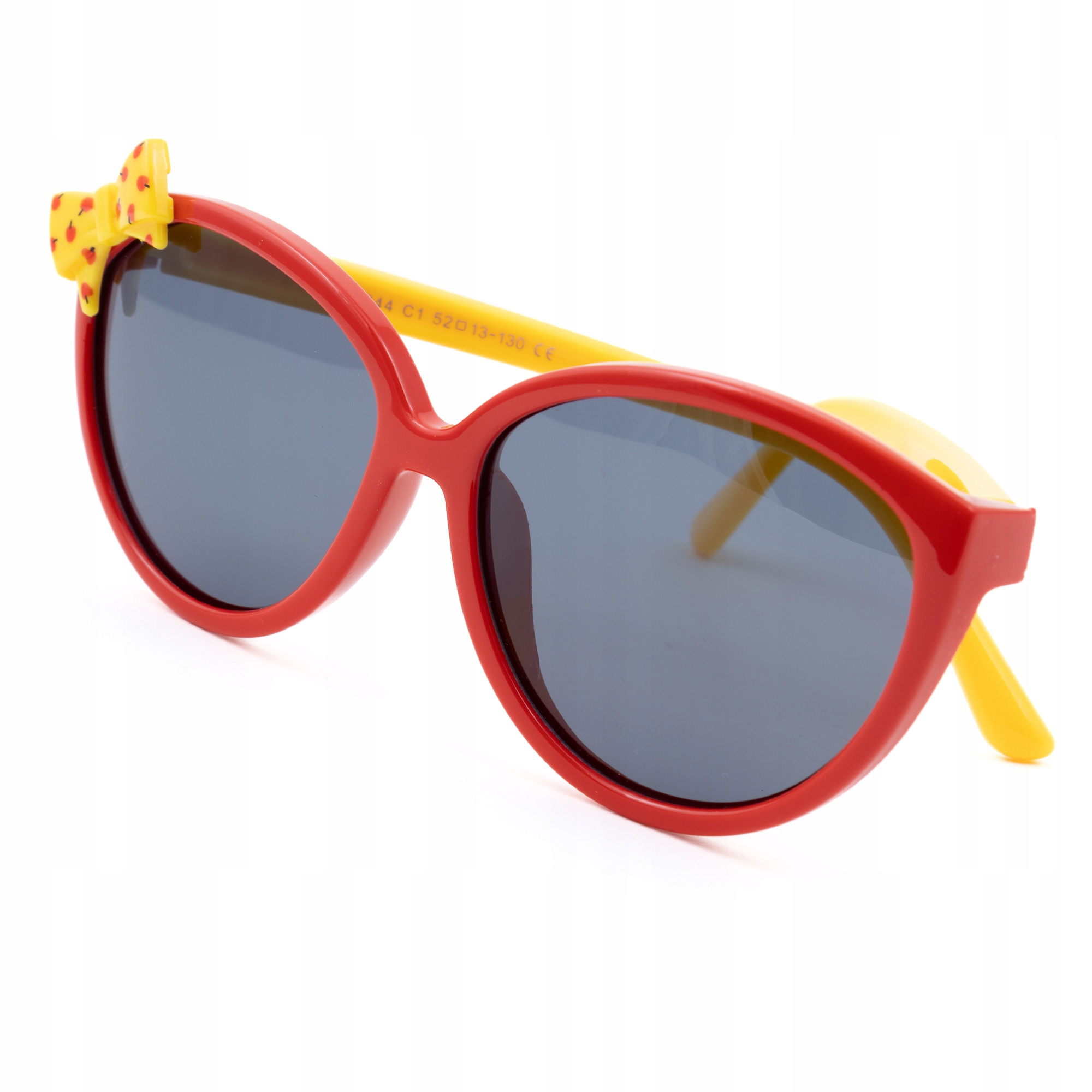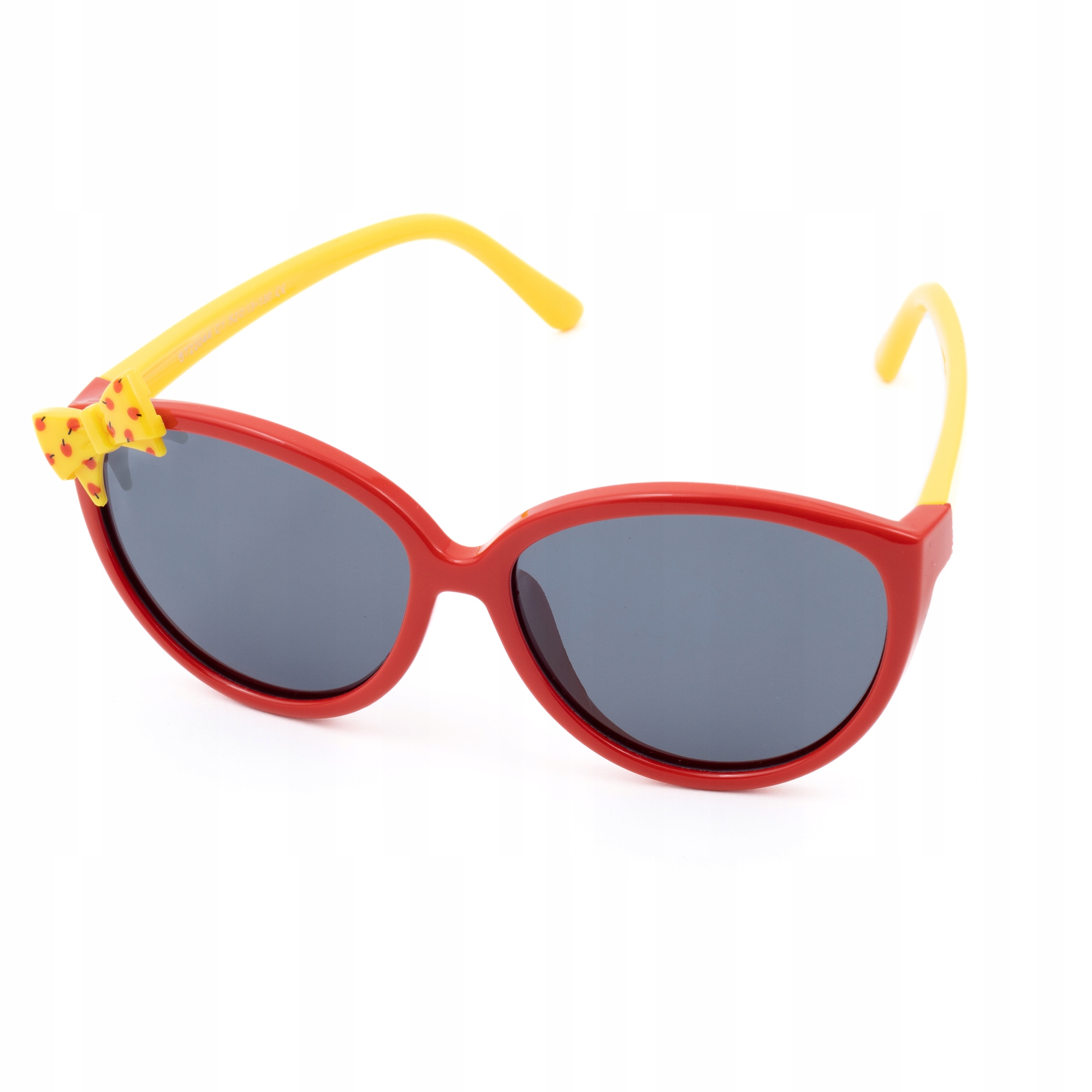 OKULARY przeciwsłoneczne dziewczęce UV400 czerwono żółte z kokardką