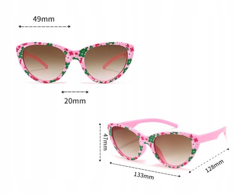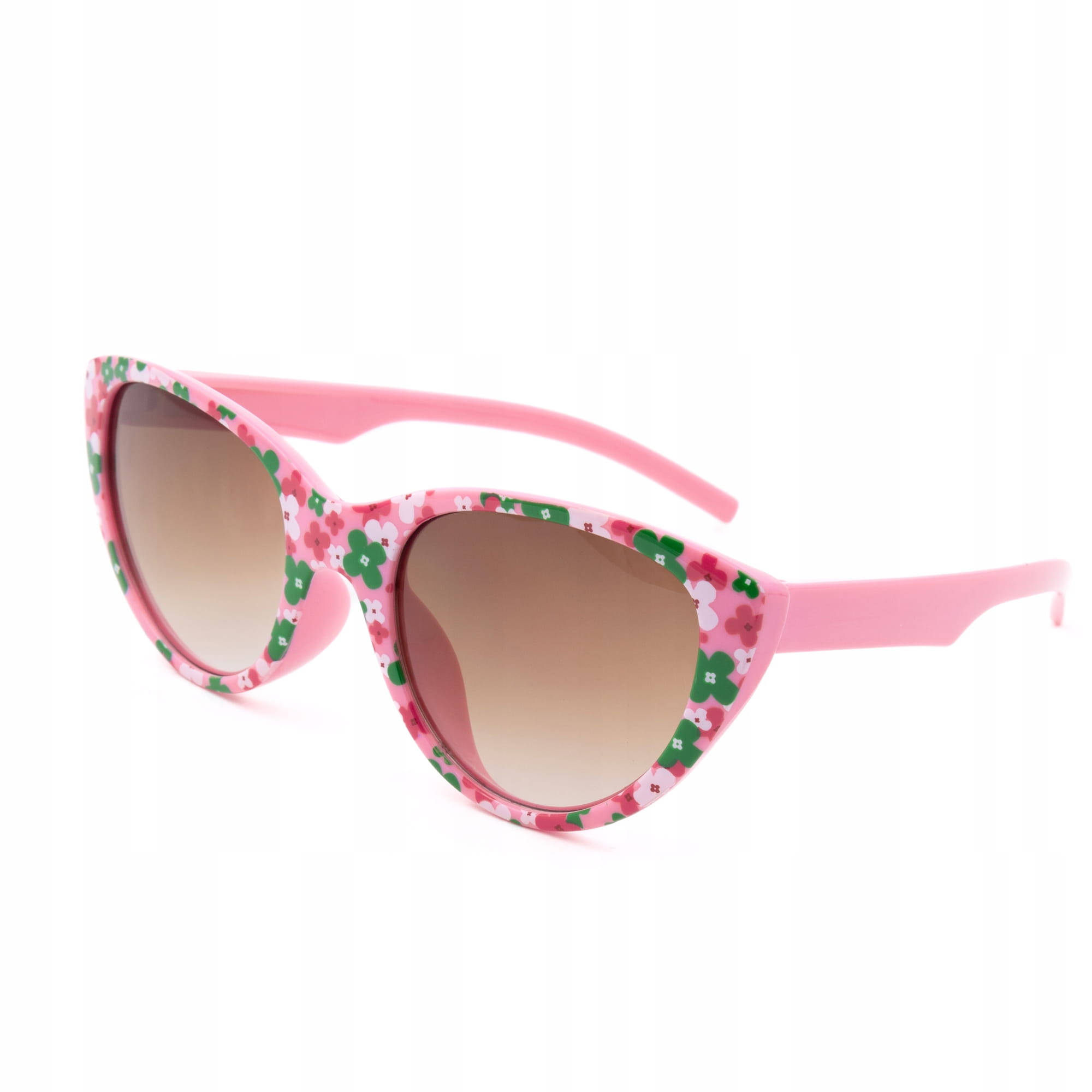 OKULARY przeciwsłoneczne dziewczęce UV400 różowe w kwiatki