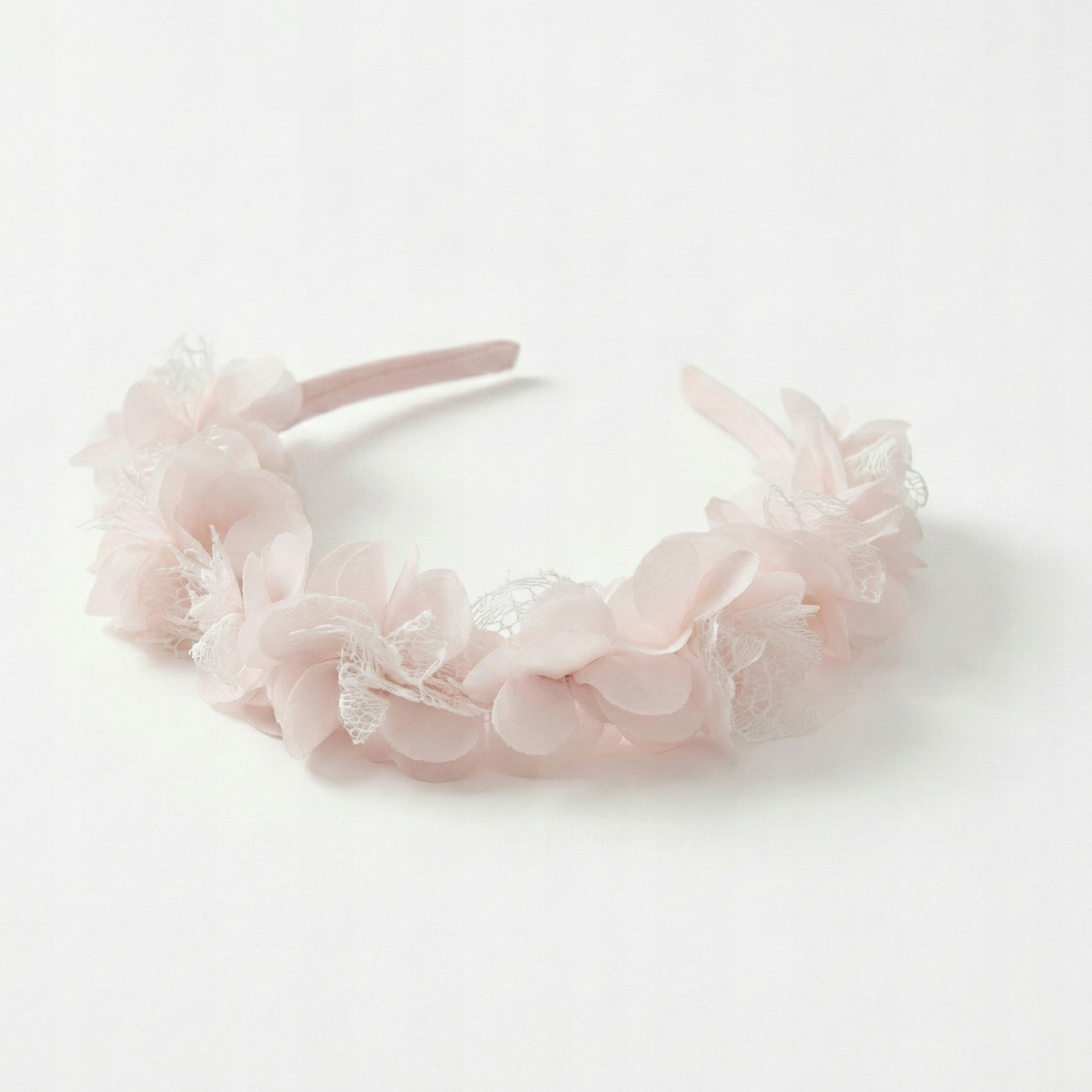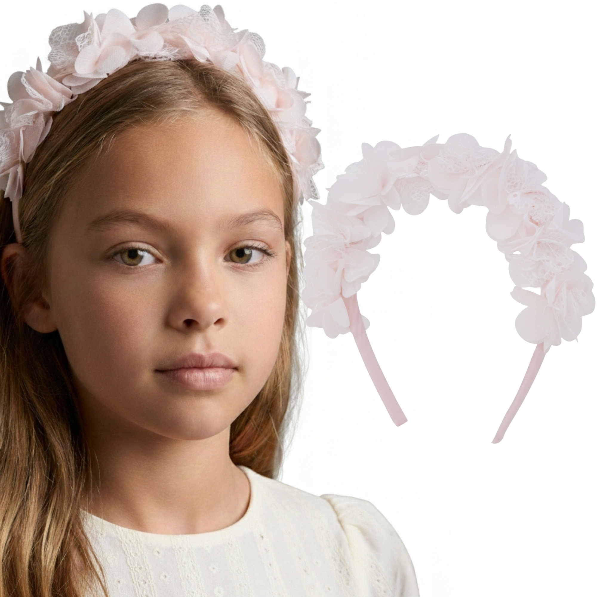 Opaska Wianek Pudrowy Róż Kwiatowa Opaska dla Dziewczynki Wizytowa