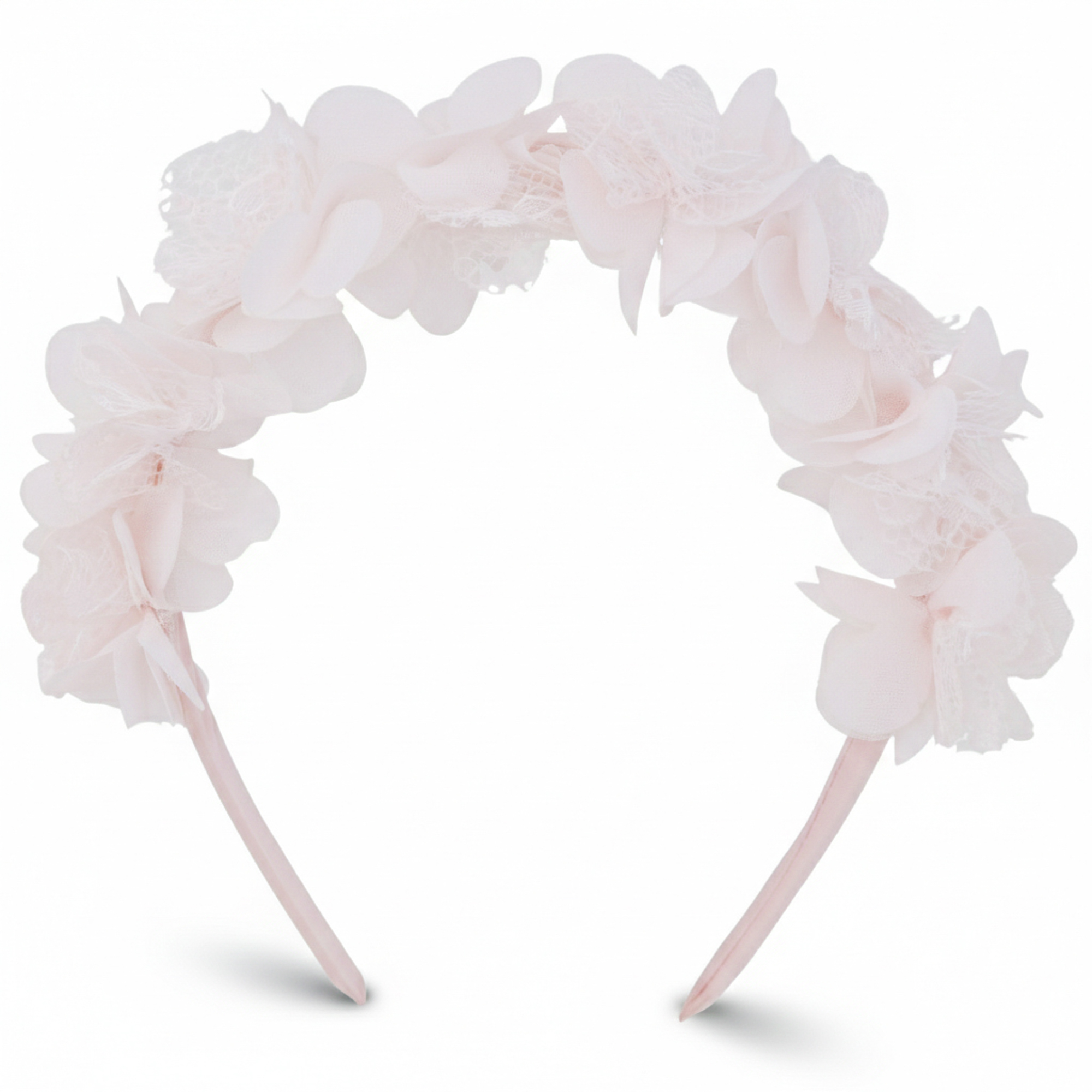 Subtelna opaska w formie romantycznego wianka w odcieniu delikatnego pudrowego różu