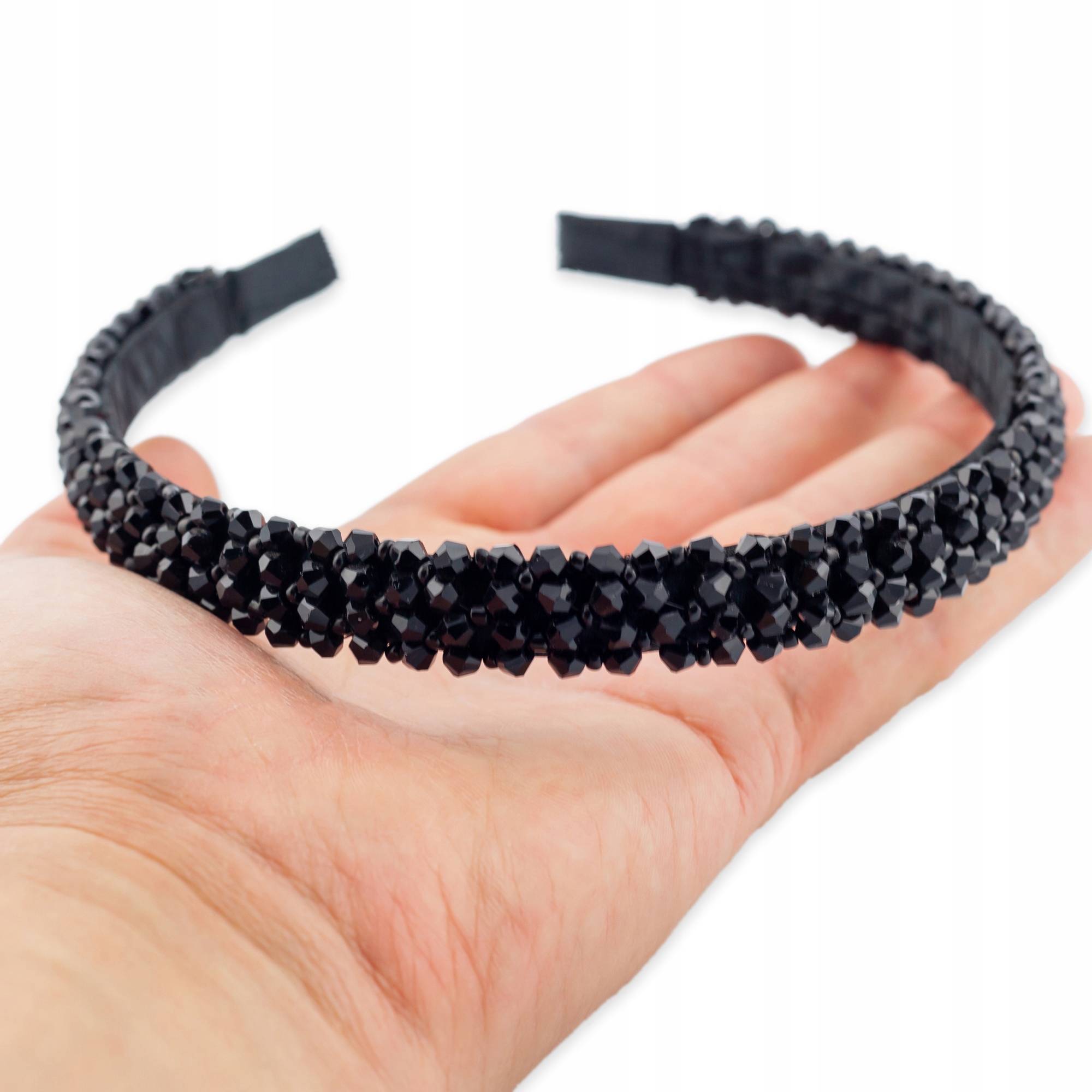 Piękna opaska do włosów, zdobiona licznymi czarnymi cyrkoniami