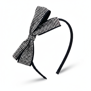 Opaska do włosów czarna kokarda z kryształkami elegancka