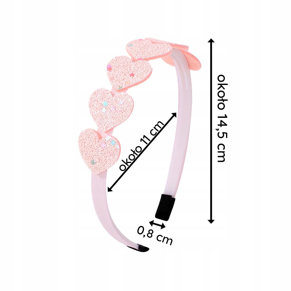 Piękna opaska z sześcioma sercami, zdobionymi brokatem i gwiazdkami