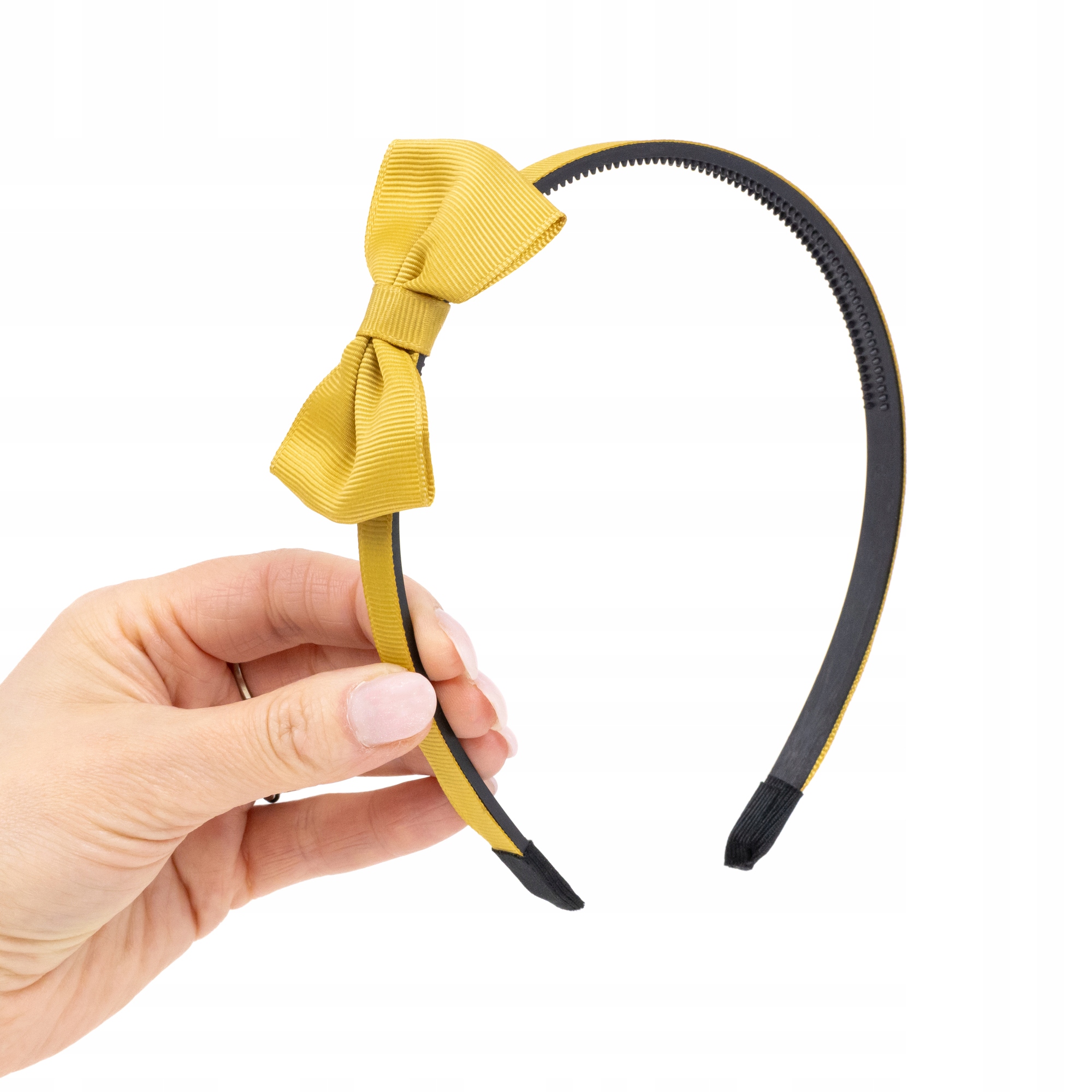 Opaska do włosów dla dziewczynki z kokardą musztardowa