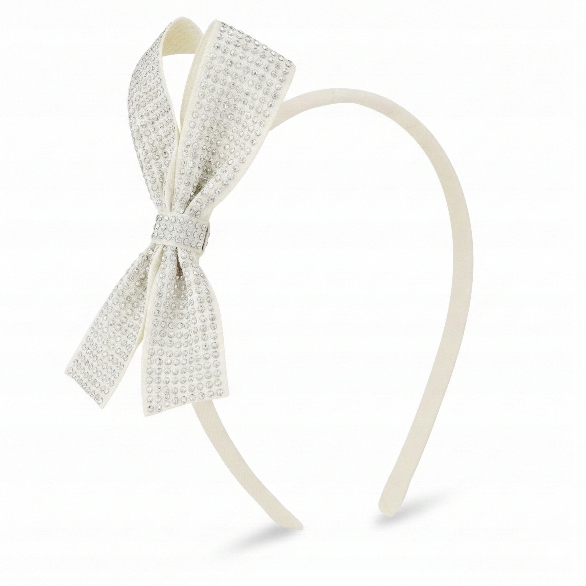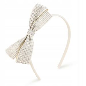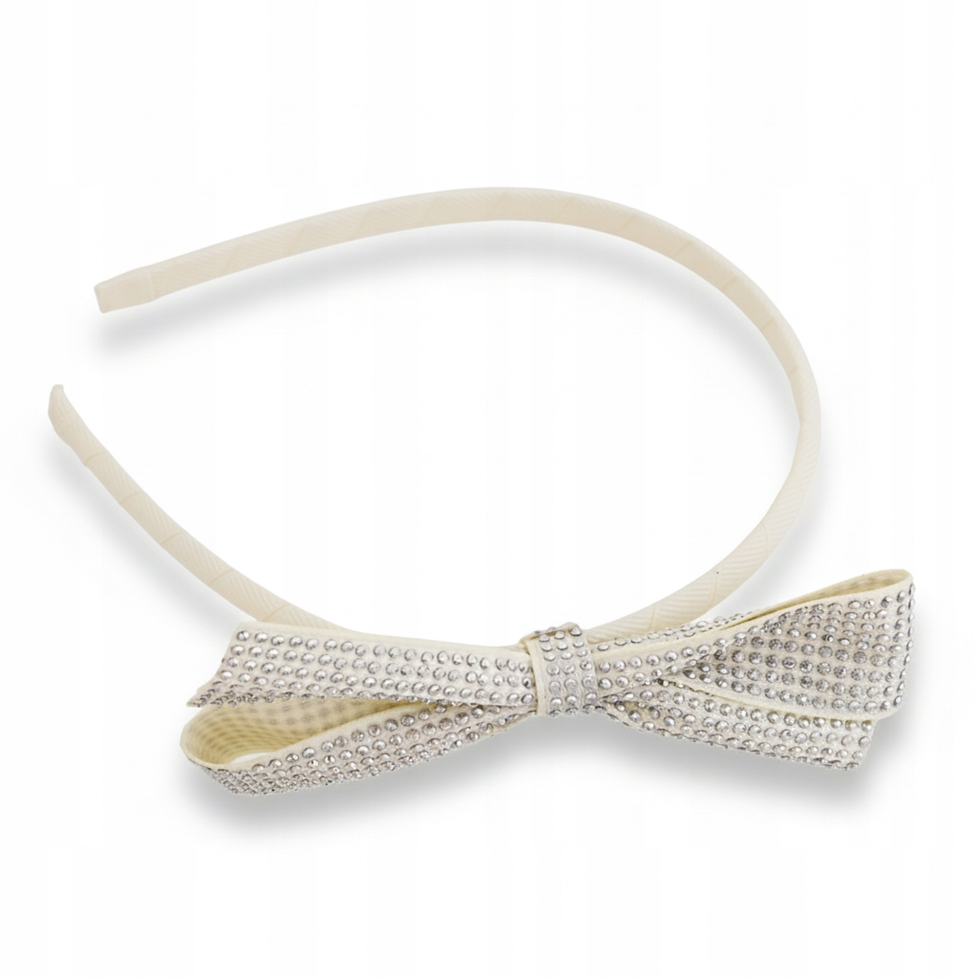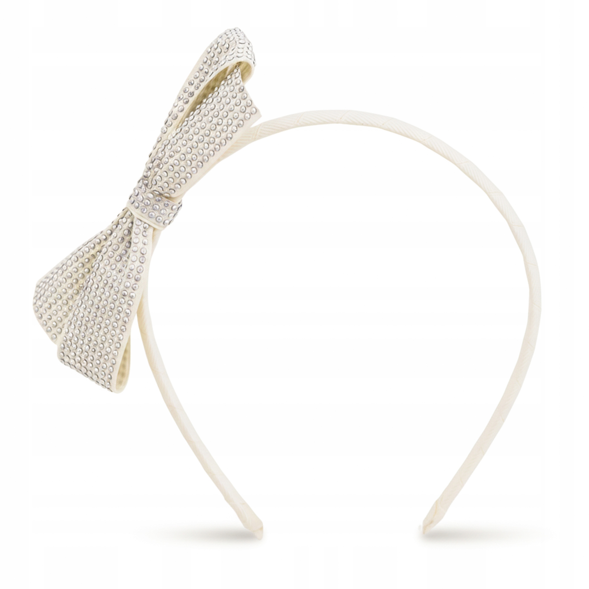 Opaska do włosów z kokardą i kryształkami elegancka kolor ecru